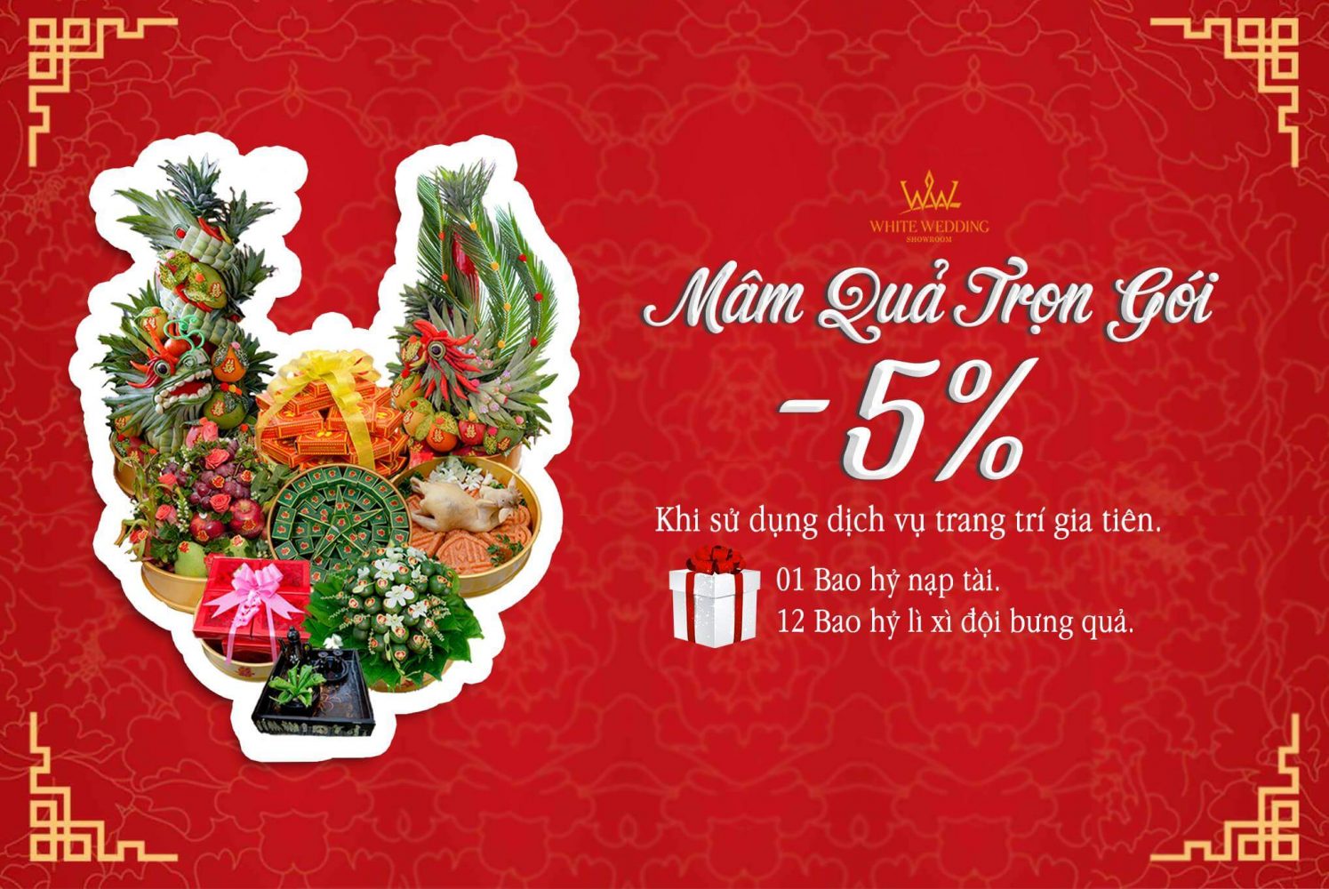 23 Th3 TIN KHUYẾN MÃI KHUYẾN MÃI MÂM QUẢ TRỌN GÓI THÁNG 04/2019 Tháng 3 27, 2019 By hi hi 0 comments GIẢM NGAY 5% khi sử dụng dịch vụ TRANG TRÍ GIA TIÊN Tặng ngay phần quà hấp dẫn: - 01 Bao hỷ nạp tài - 12 Bao lì xì đội bưng quả. ... Continue reading