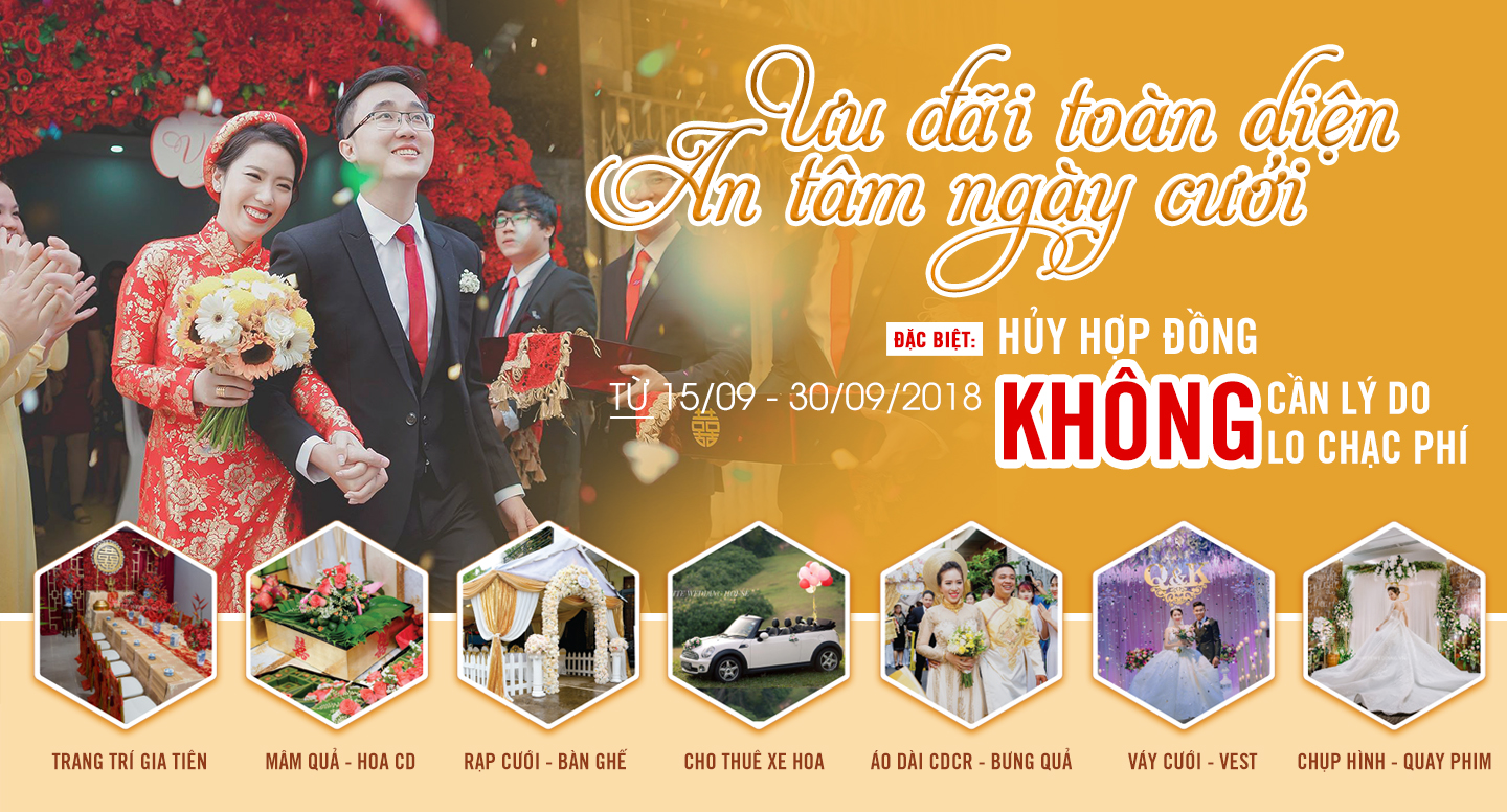 15 Th5 TIN KHUYẾN MÃI ƯU ĐÃI CỰC “NÓNG BỎNG” TRỌN GÓI TRANG TRÍ NHÀ NGÀY CƯỚI THÁNG 07/2017 Tháng 2 13, 2019 By hi hi ƯU ĐÃI CỰC “NÓNG BỎNG” TRỌN GÓI TRANG TRÍ NHÀ NGÀY CƯỚI Còn chần chờ gì nữa các cô gái xinh đẹp, nhanh tay sở hữu ngay gói TRANG TRÍ... Continue reading