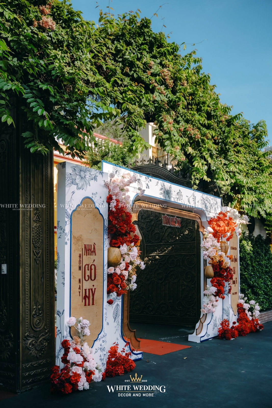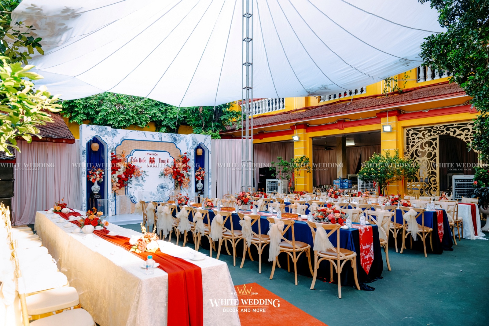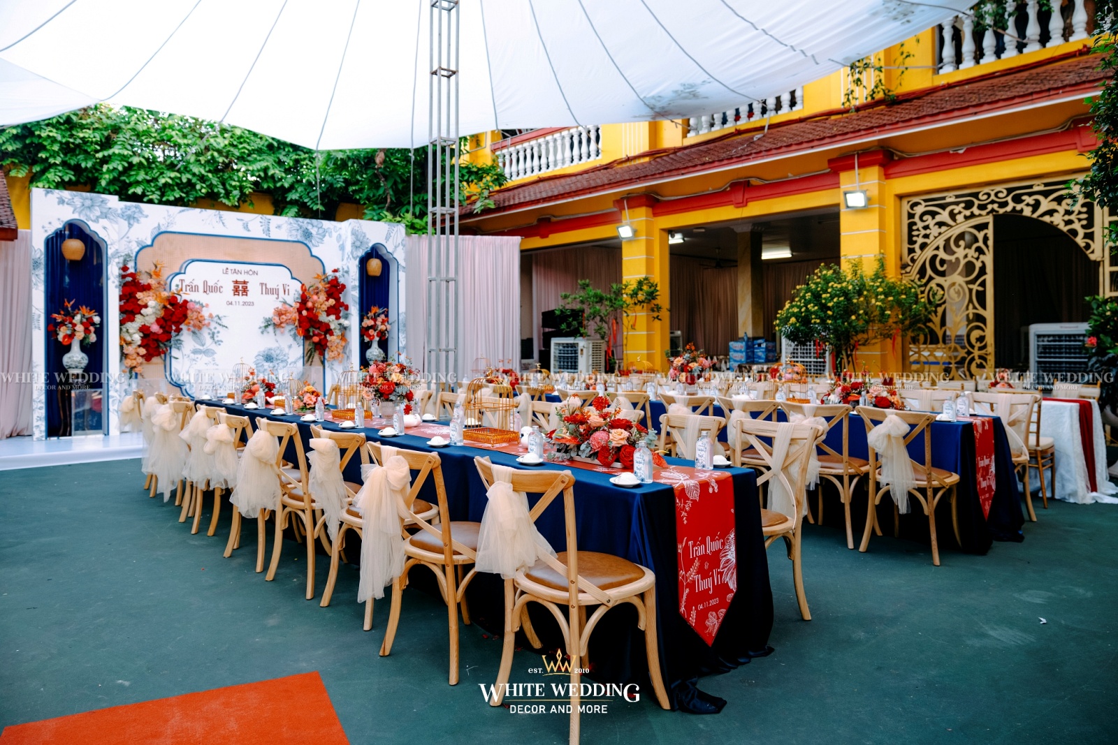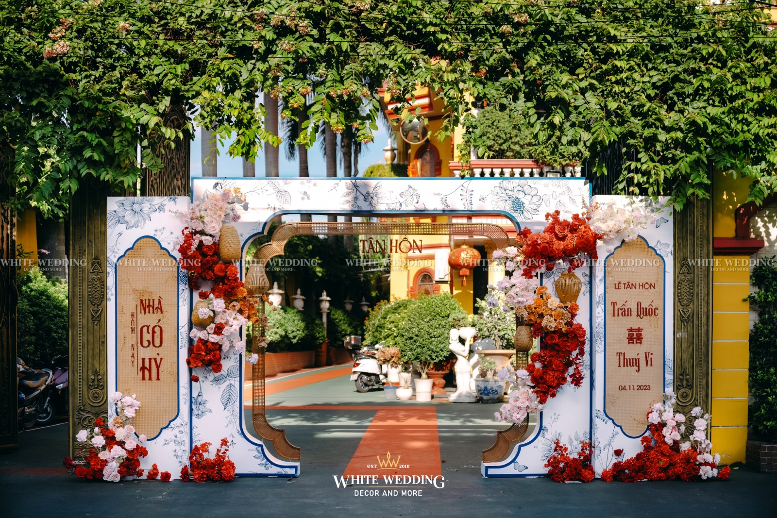 Lễ tân hôn được thiết kế trang trí theo phong cách cổ điển bắt mắt, sử dụng kết hợp Hoa Tươi & Hoạ Lụa cao cấp.