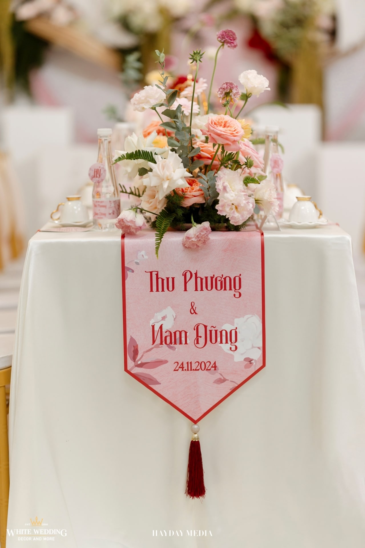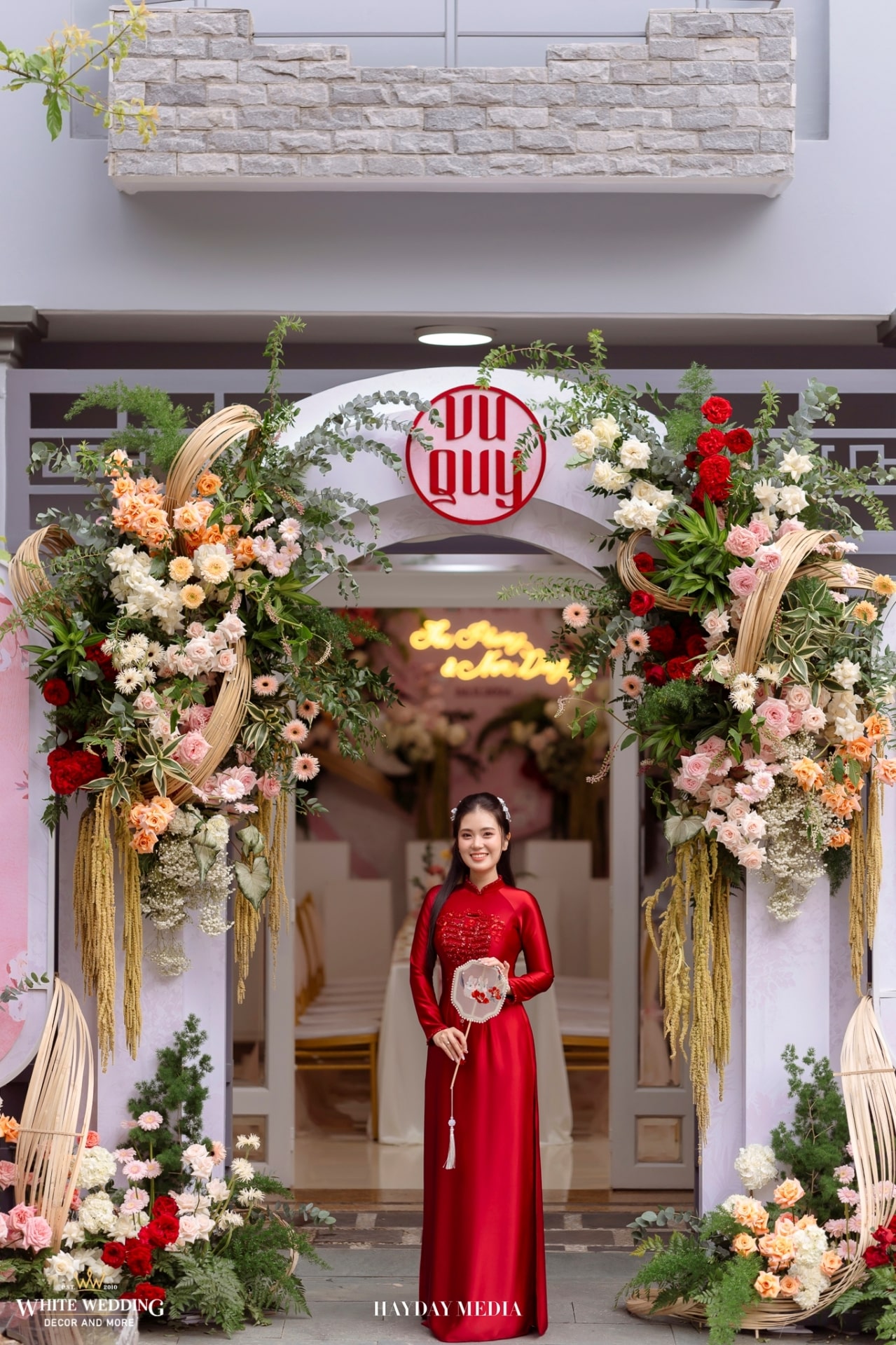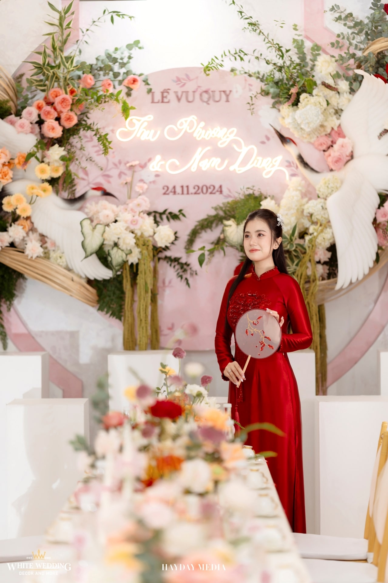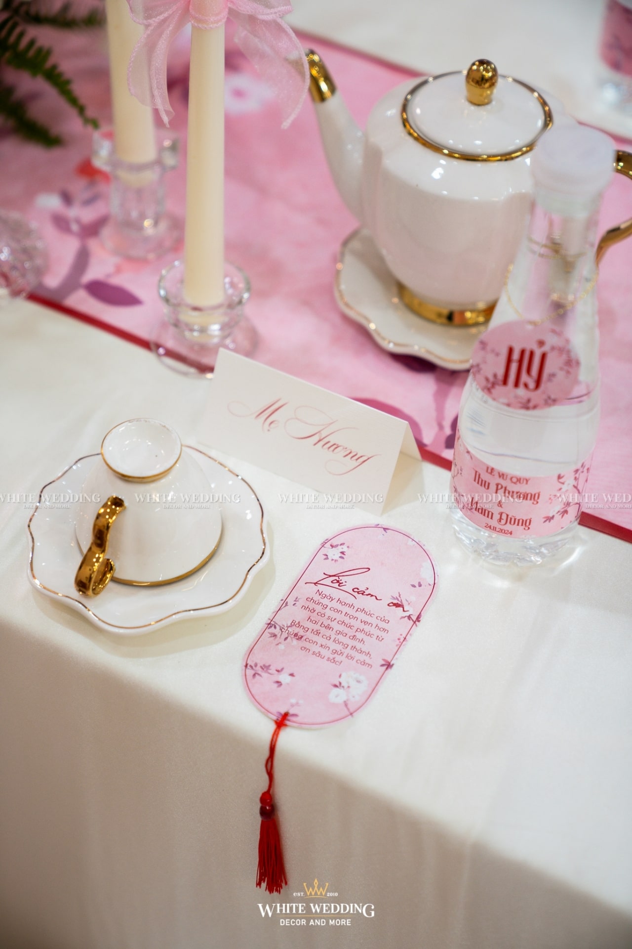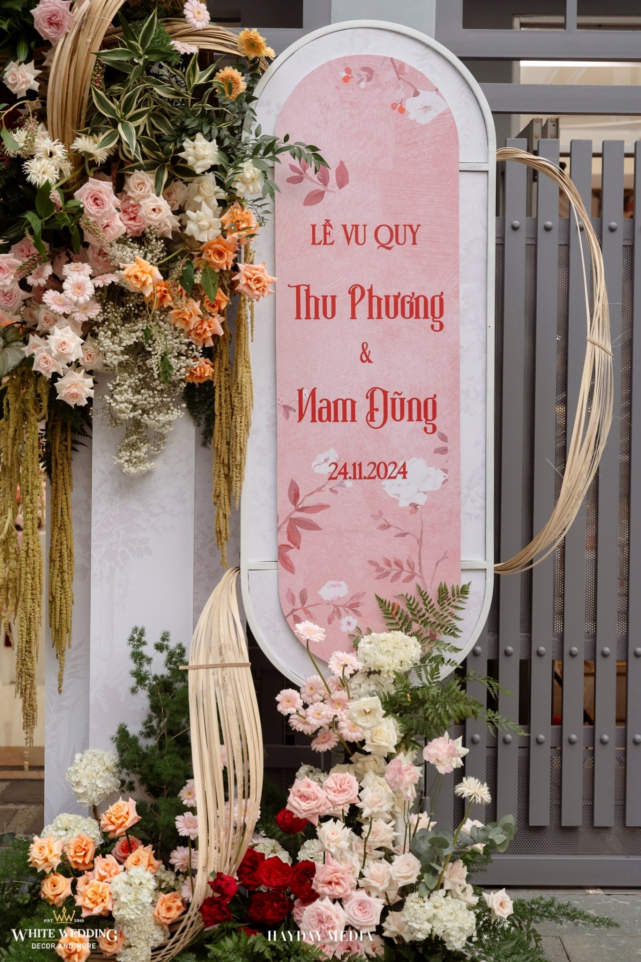 Từ cánh cổng ngập sắc hồng tươi tắn, đến không gian bàn tiệc ấm cúng, tất cả hòa quyện trong một bản tình ca mang tên hạnh phúc.
