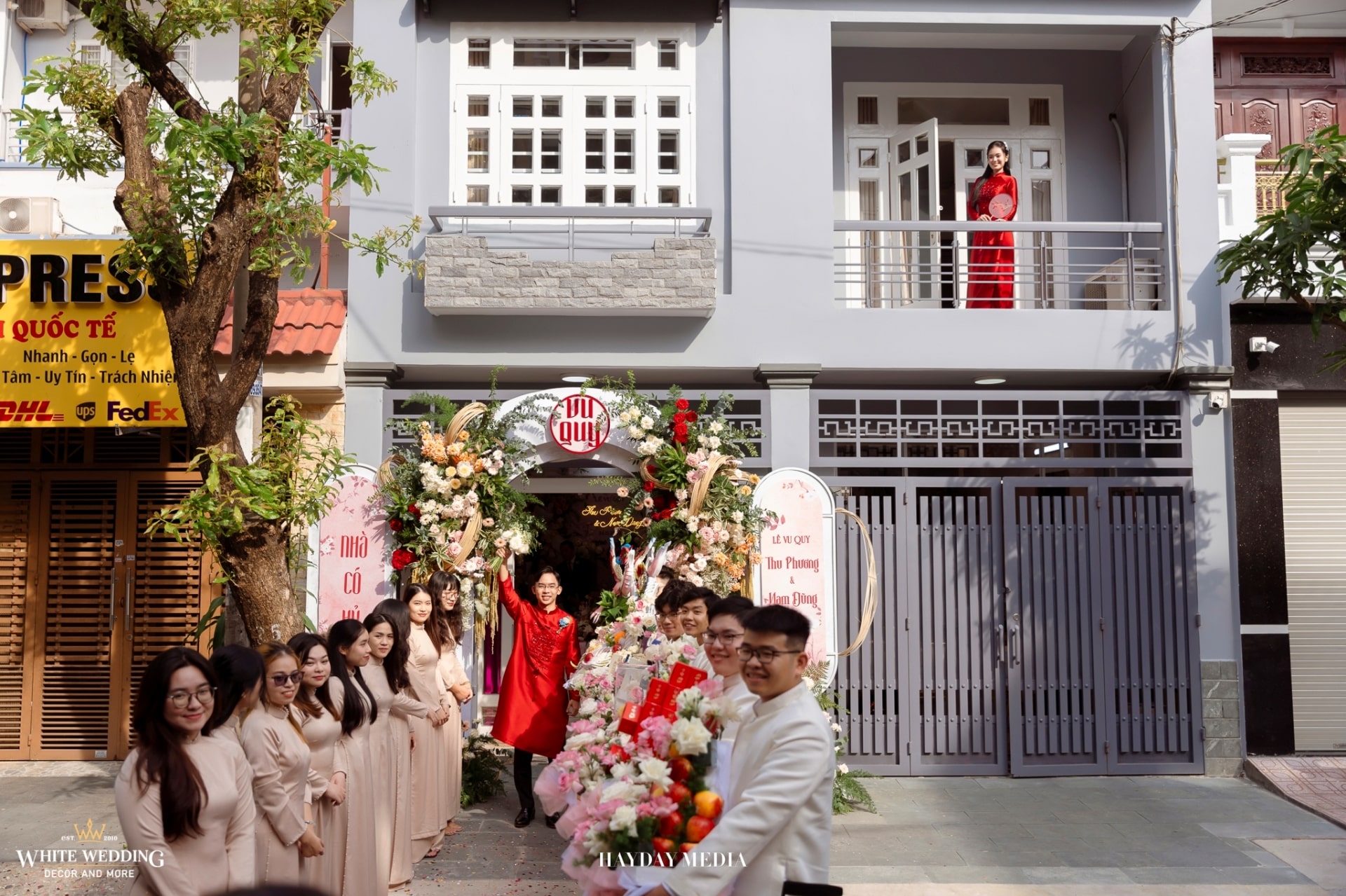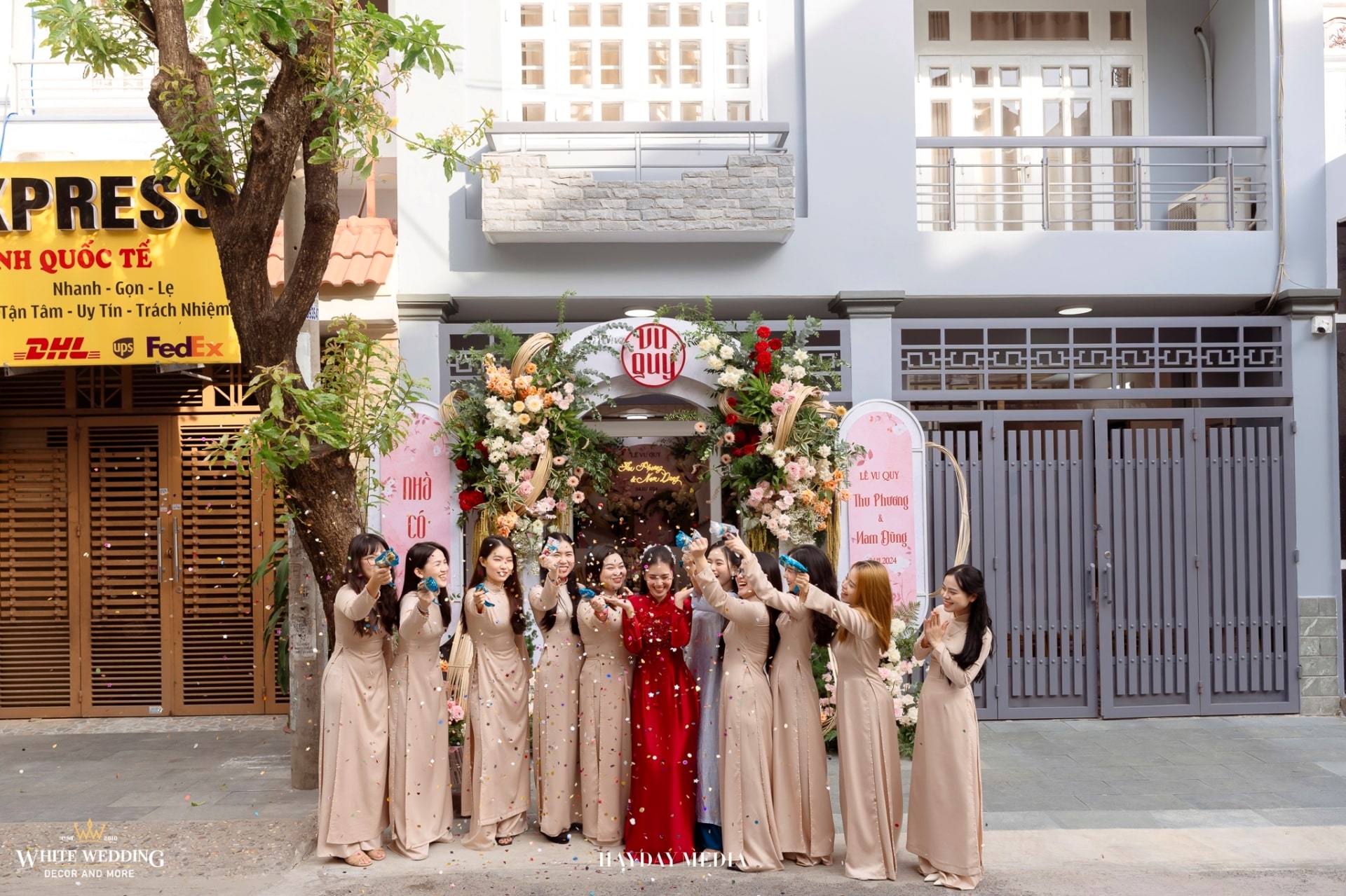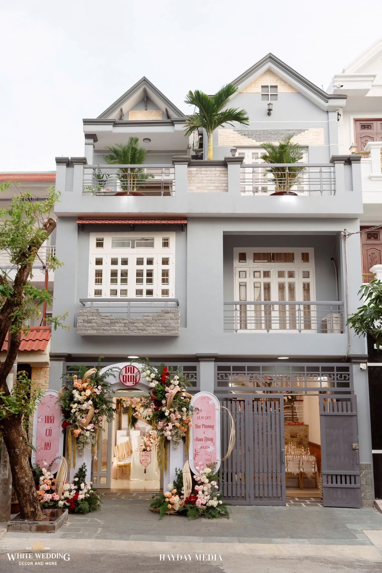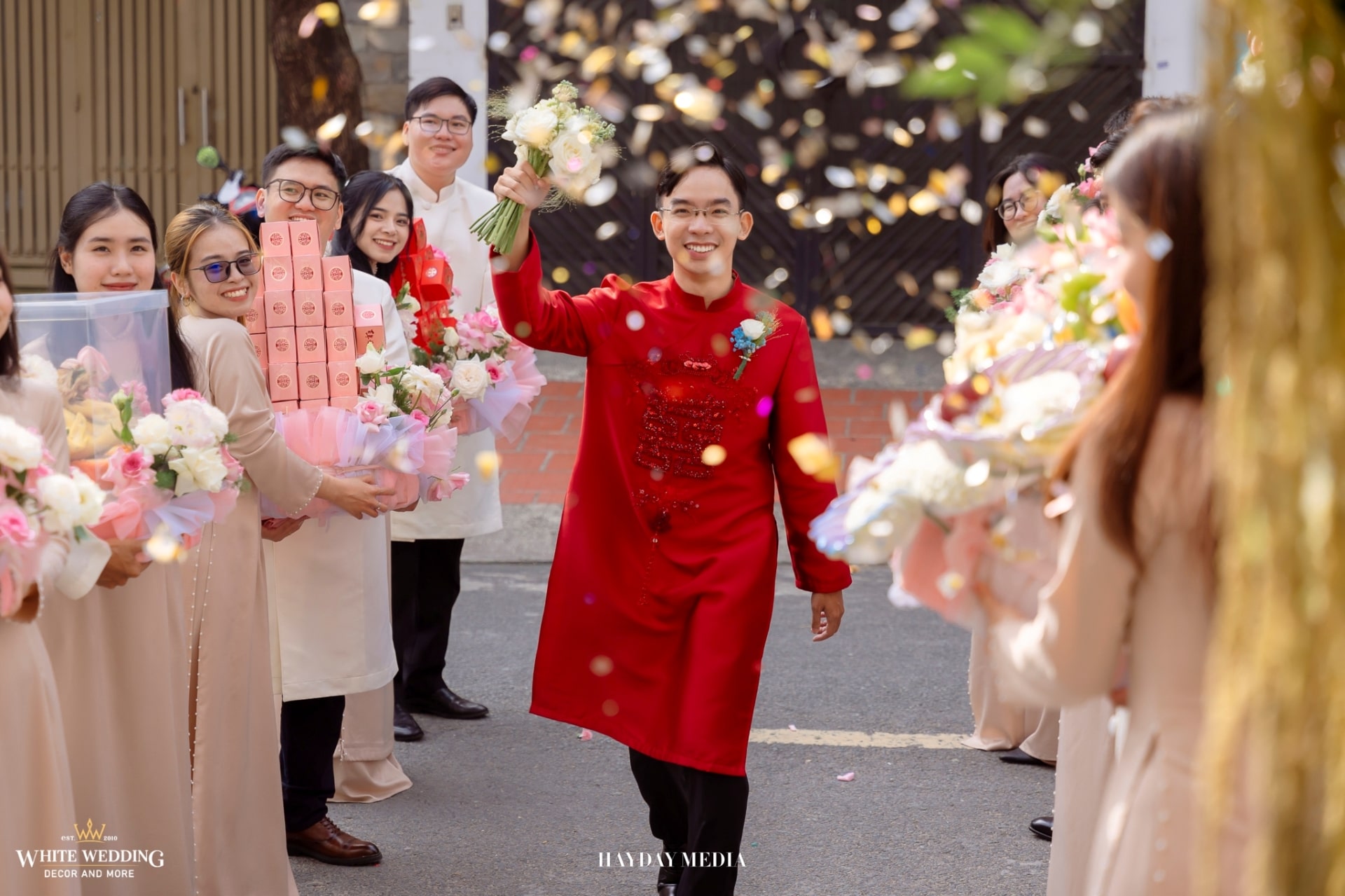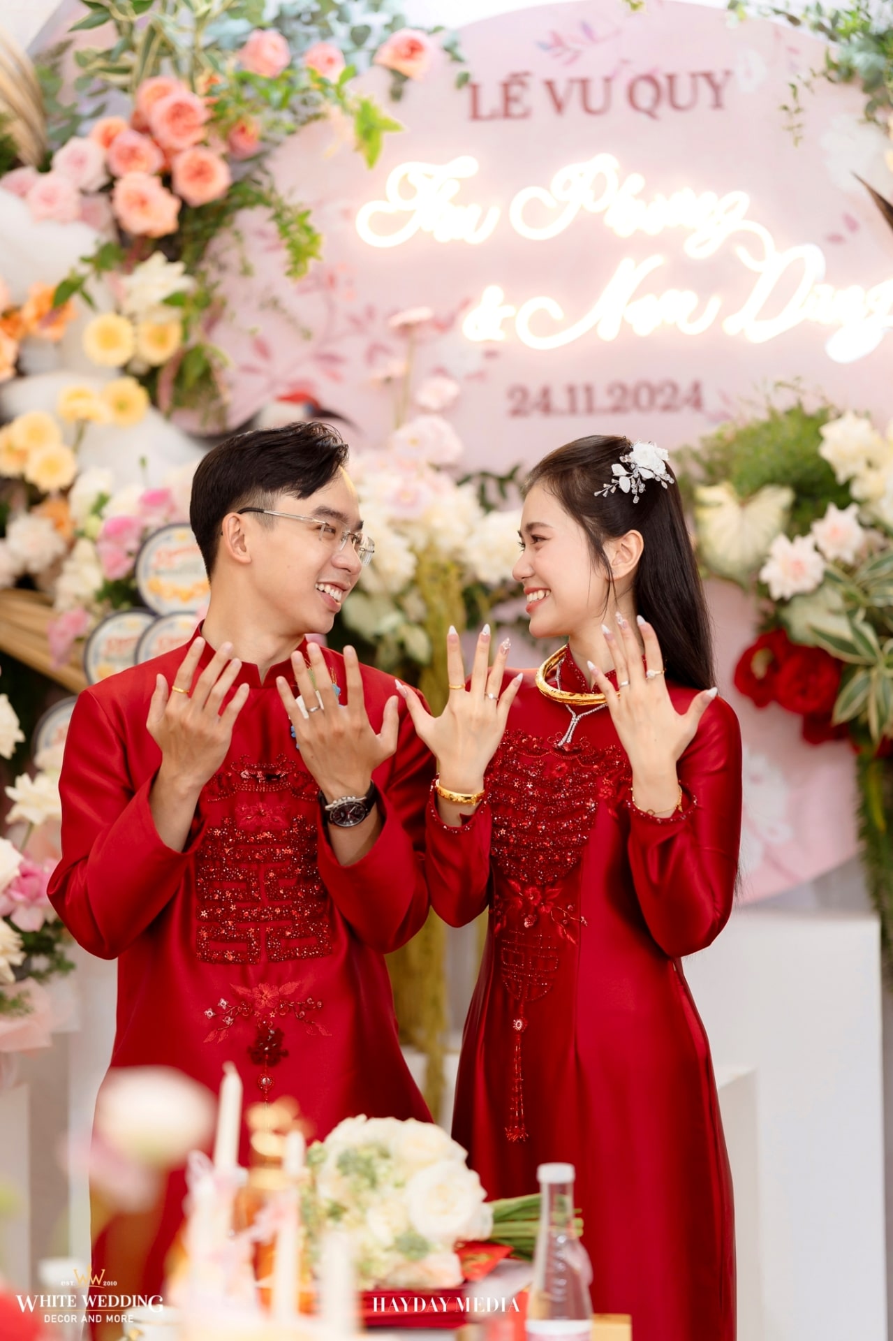Từ cánh cổng ngập sắc hồng tươi tắn, đến không gian bàn tiệc ấm cúng, tất cả hòa quyện trong một bản tình ca mang tên hạnh phúc.