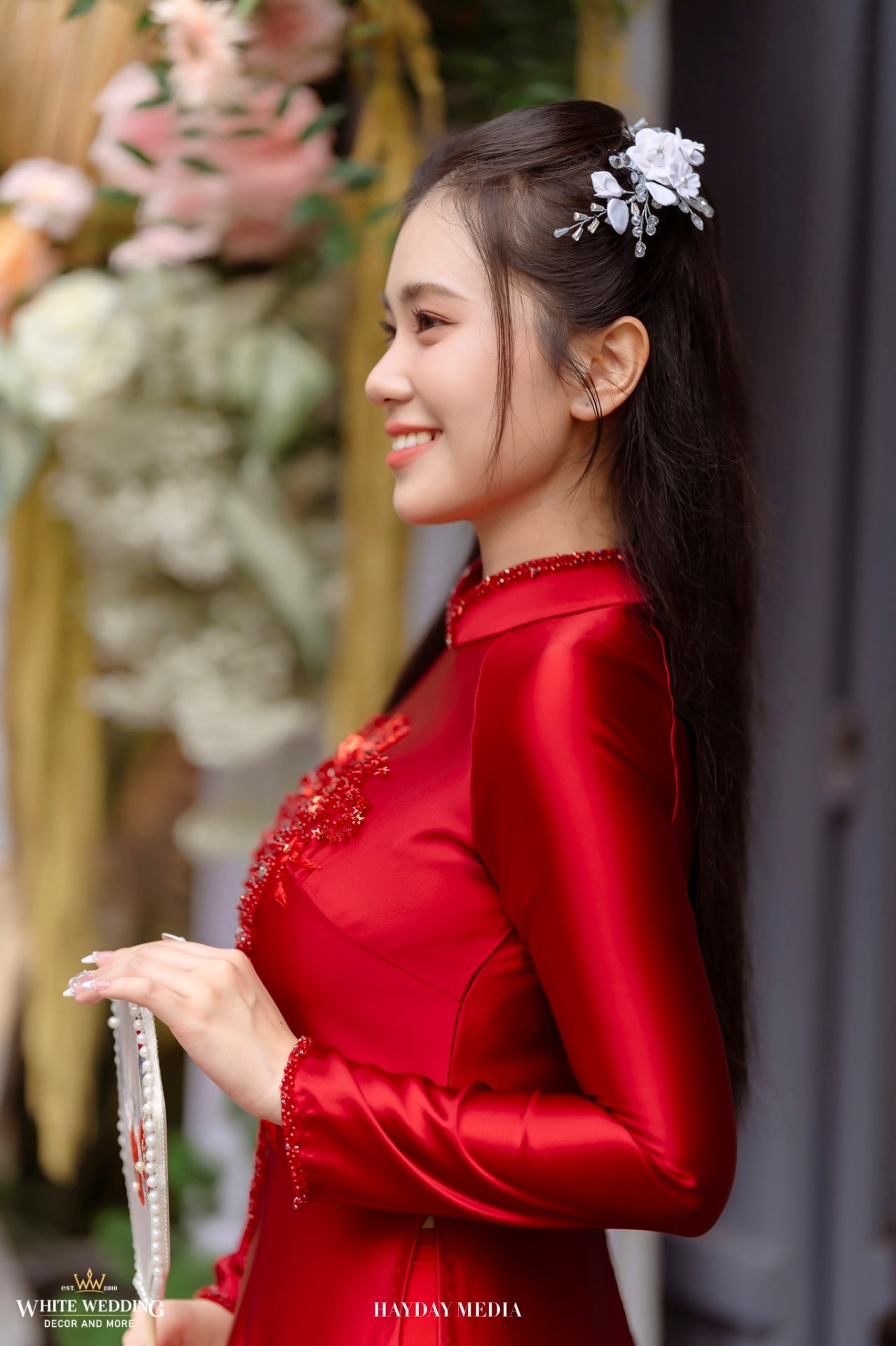 Tựa như dáng đứng e ấp của người con gái trong ngày vu quy, mỗi bông hoa là một thanh âm dịu dàng, thêu dệt nên bức tranh yêu thương của Phương & Dũng.