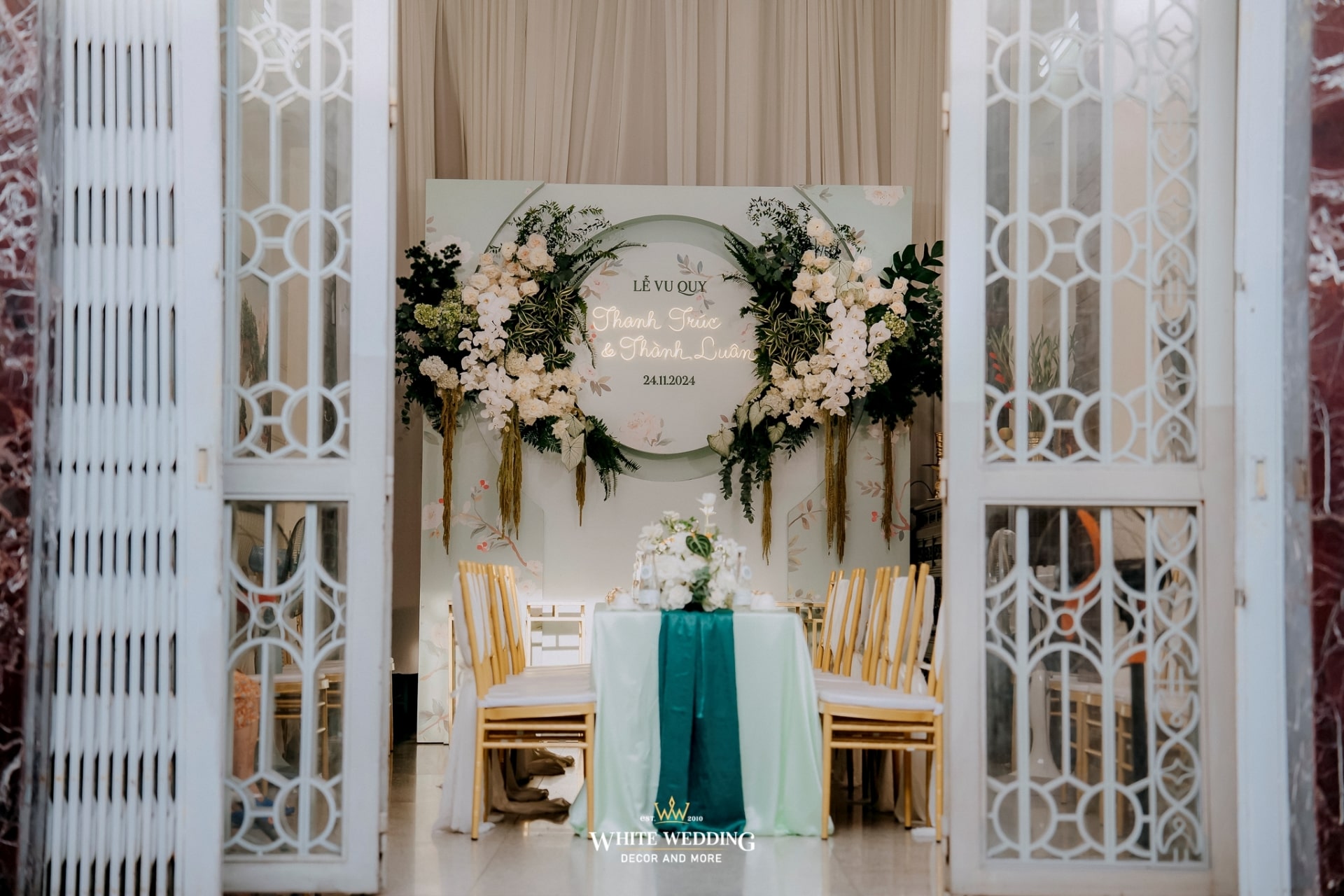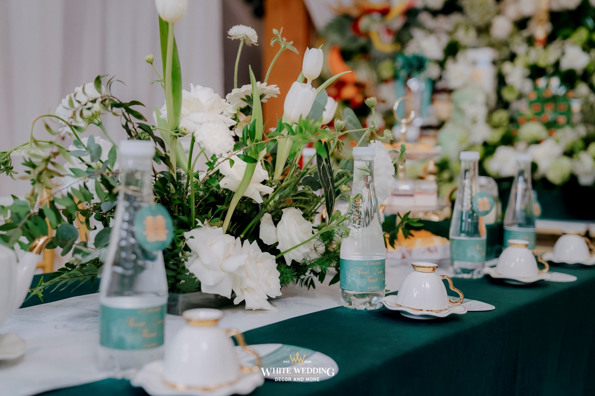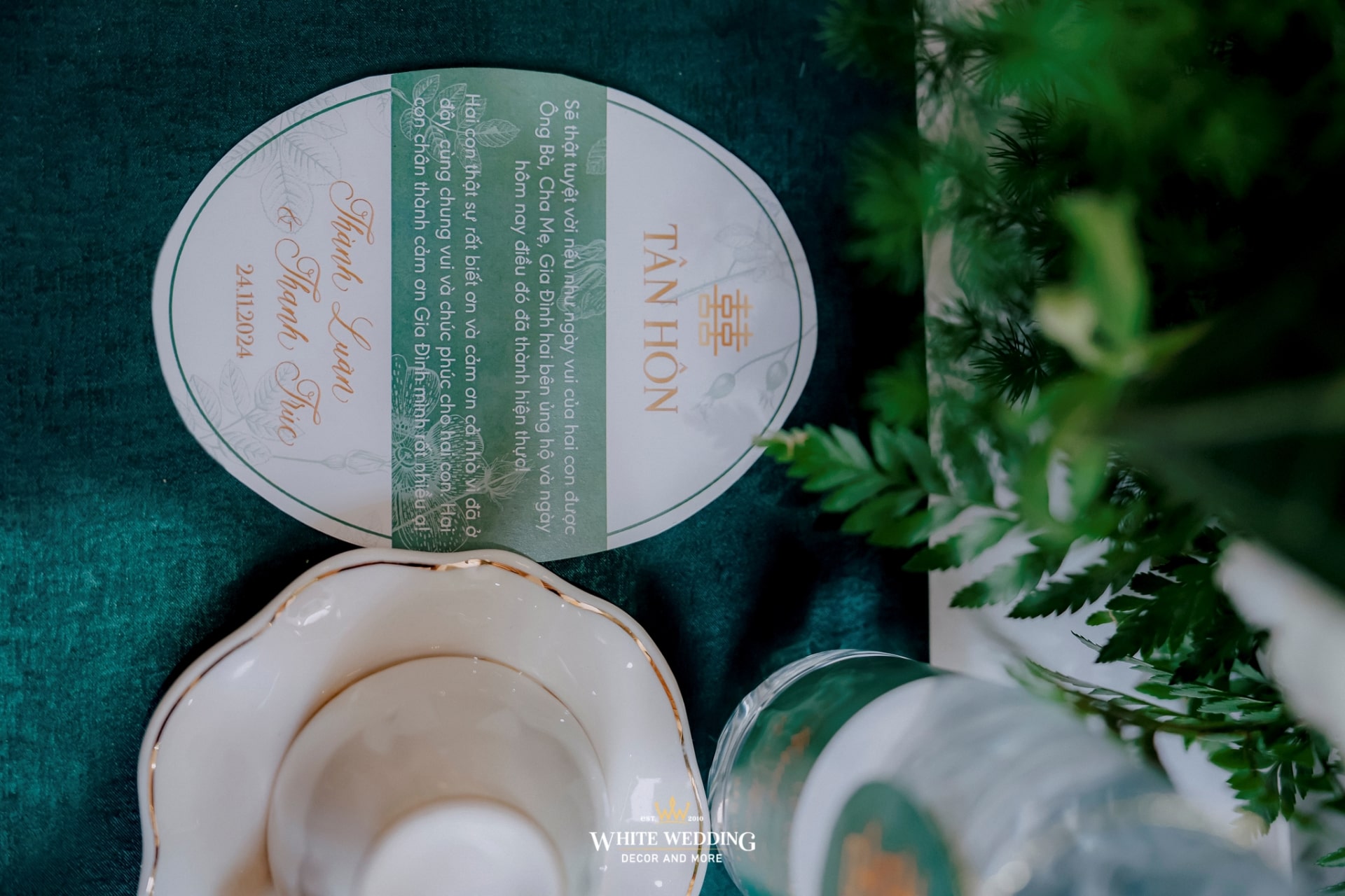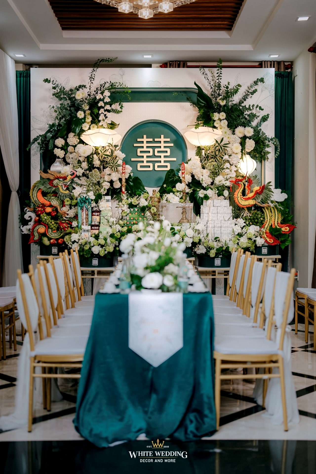 Lấy cảm hứng từ sắc ngọc lục bảo – màu của sự an yên, vững bền và may mắn, buổi lễ ăn hỏi của Trúc & Luân được bao phủ bởi nét đẹp thanh nhã và thuần khiết.