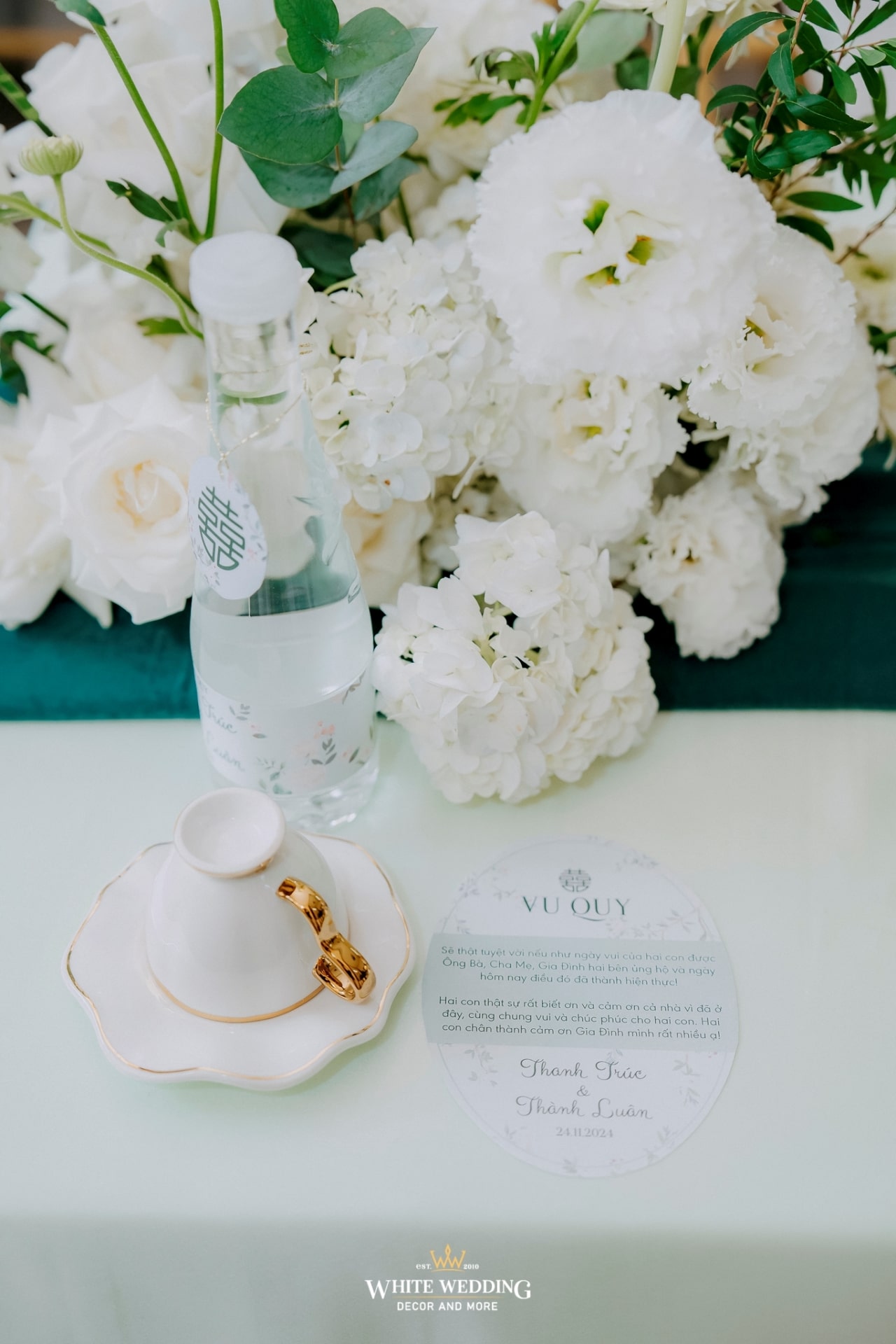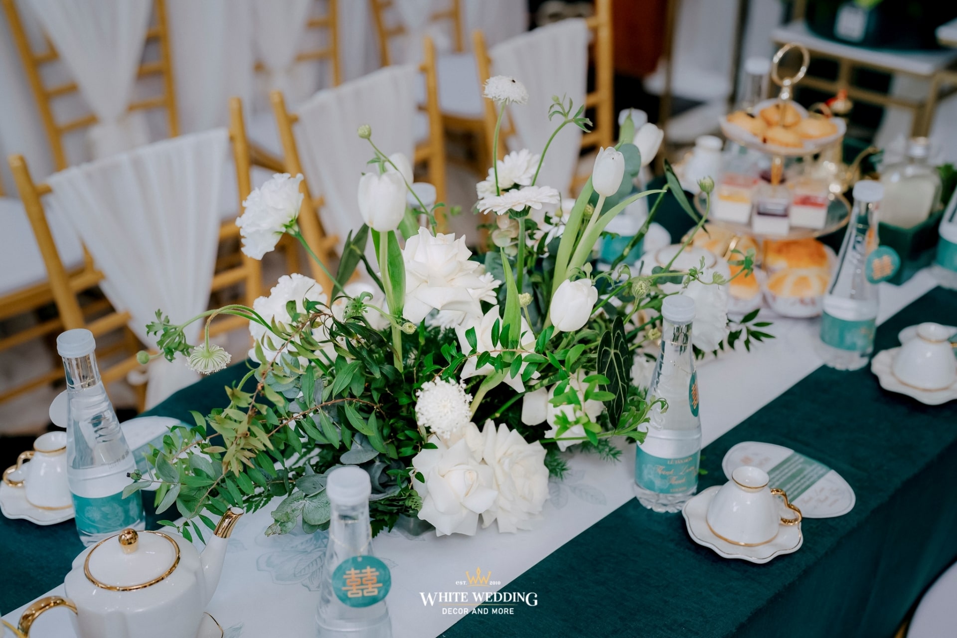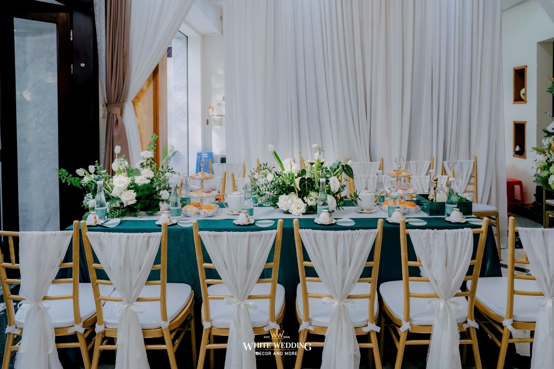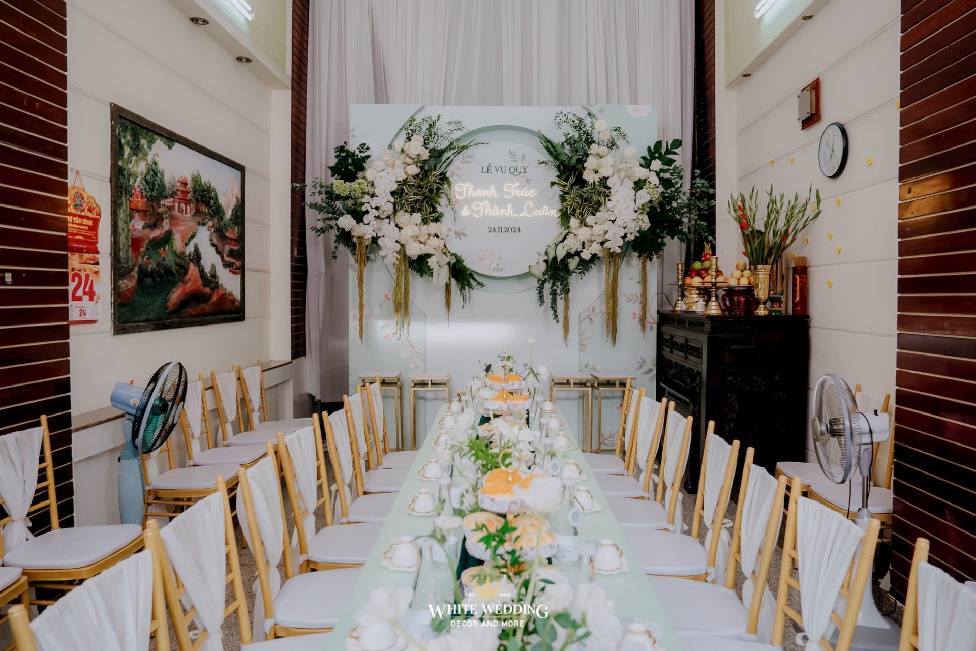 Lấy cảm hứng từ sắc ngọc lục bảo – màu của sự an yên, vững bền và may mắn, buổi lễ ăn hỏi của Trúc & Luân được bao phủ bởi nét đẹp thanh nhã và thuần khiết.