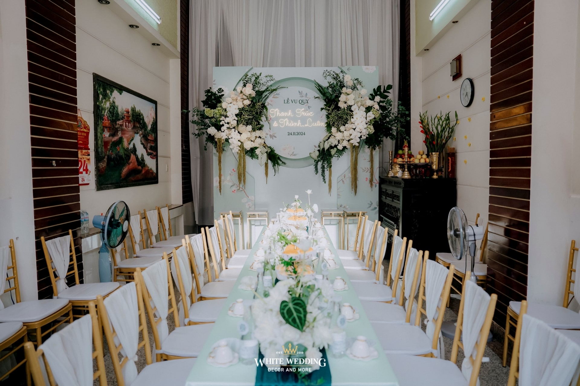 Màu xanh ấy không chỉ hiện diện trong từng chi tiết trang trí, mà còn là biểu tượng cho tình yêu bền chặt, cho sự gắn kết vẹn nguyên theo năm tháng.