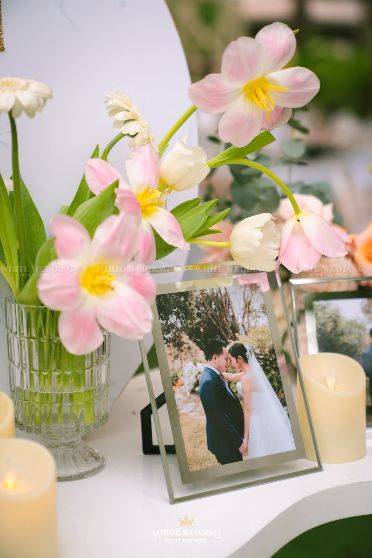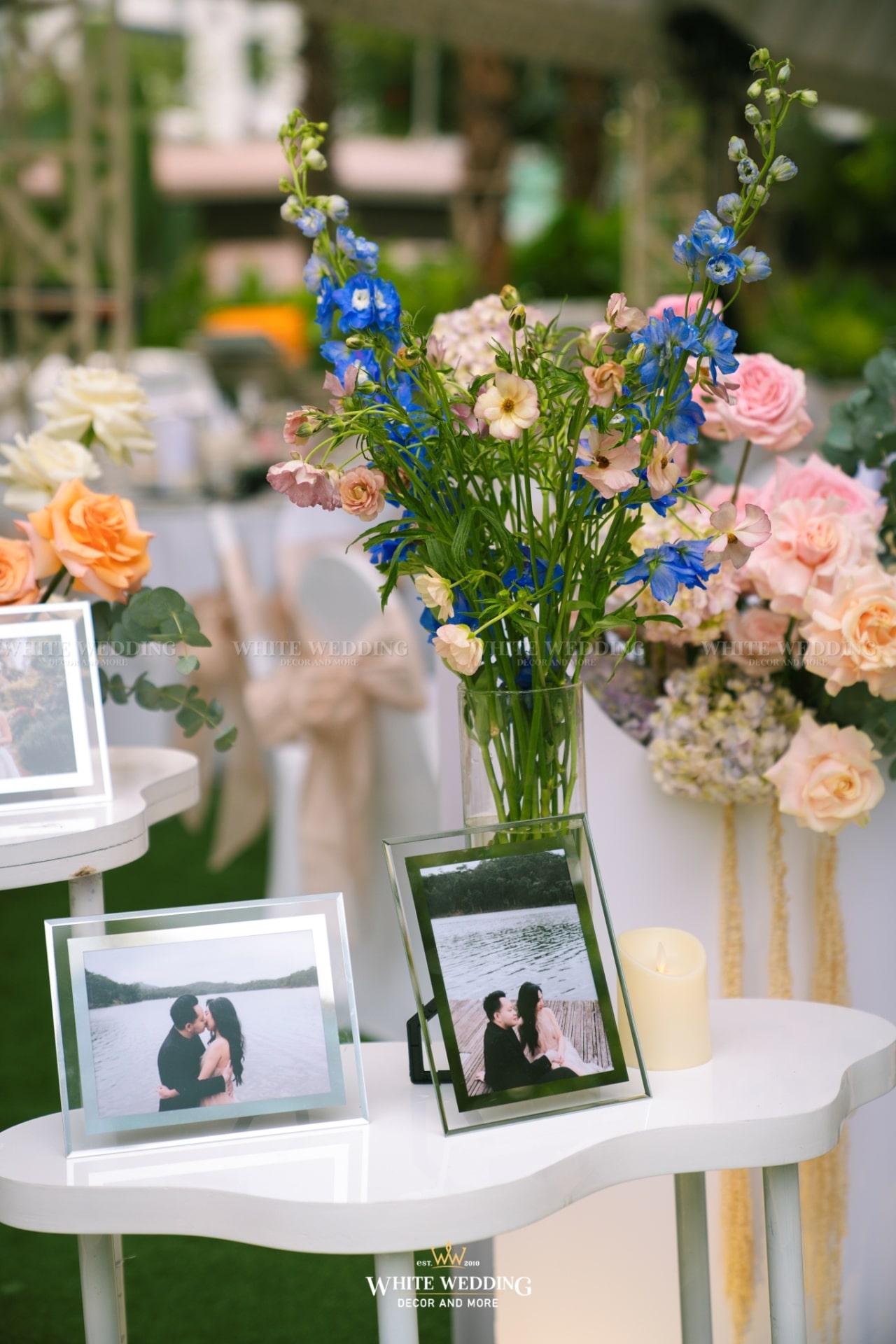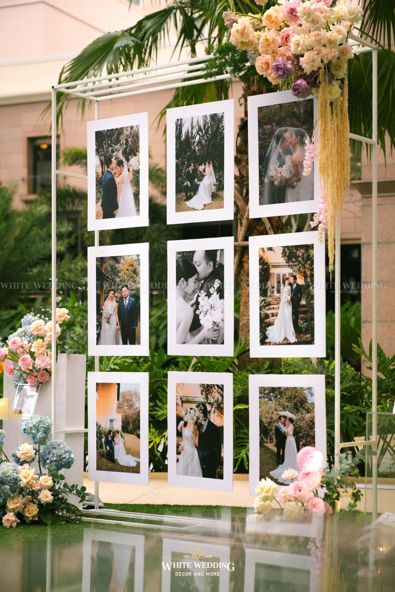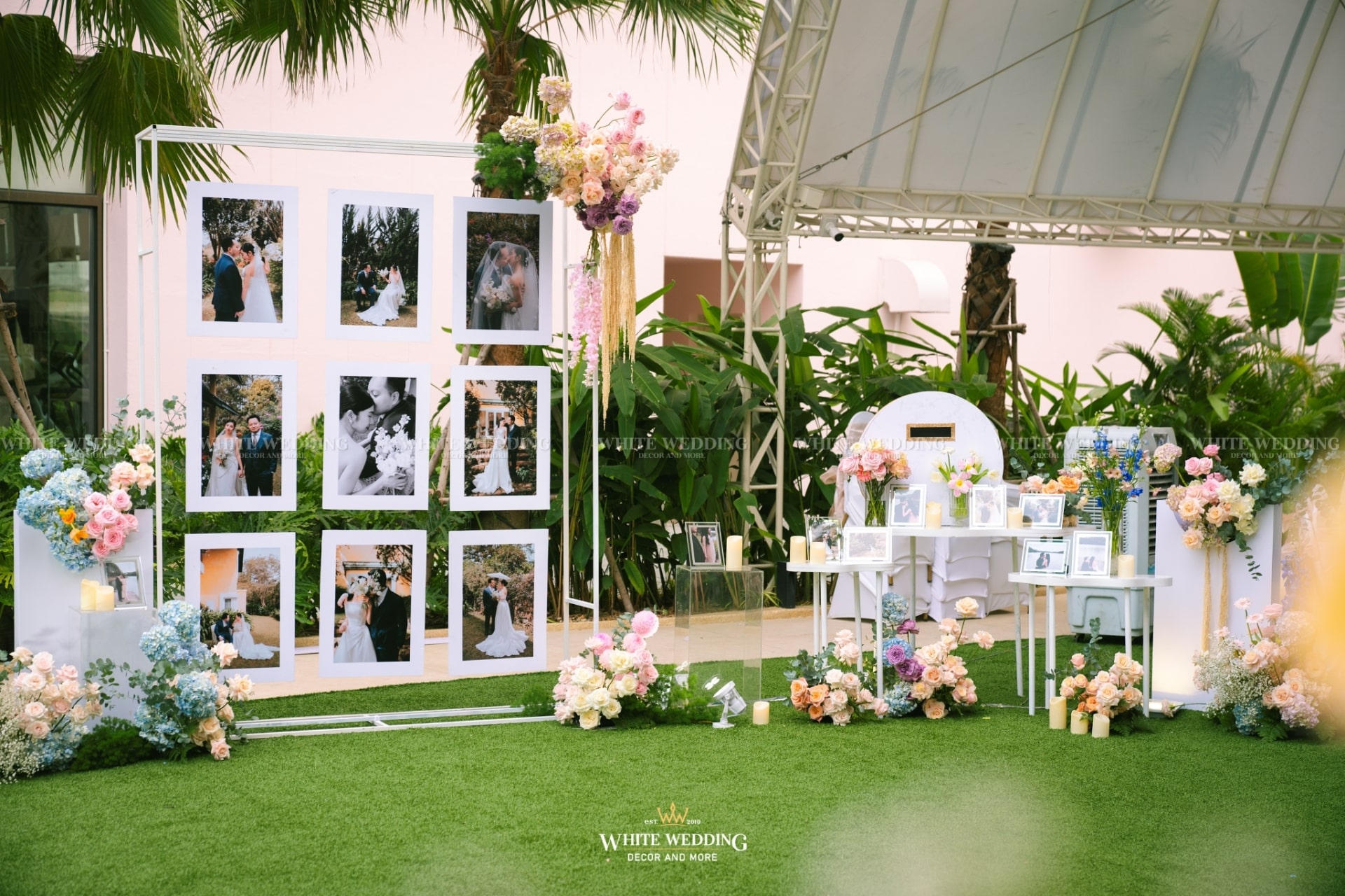Dreamscape đưa khách mời bước vào một khu vườn mộng mơ ngập tràn hoa tươi và ánh sáng dịu dàng. Những khung tranh trắng xen kẽ ảnh cưới lưu giữ kỷ niệm ngọt ngào như mơ. Mọi chi tiết đều gợi cảm giác đầy thi vị như trong một giấc mộng đẹp.