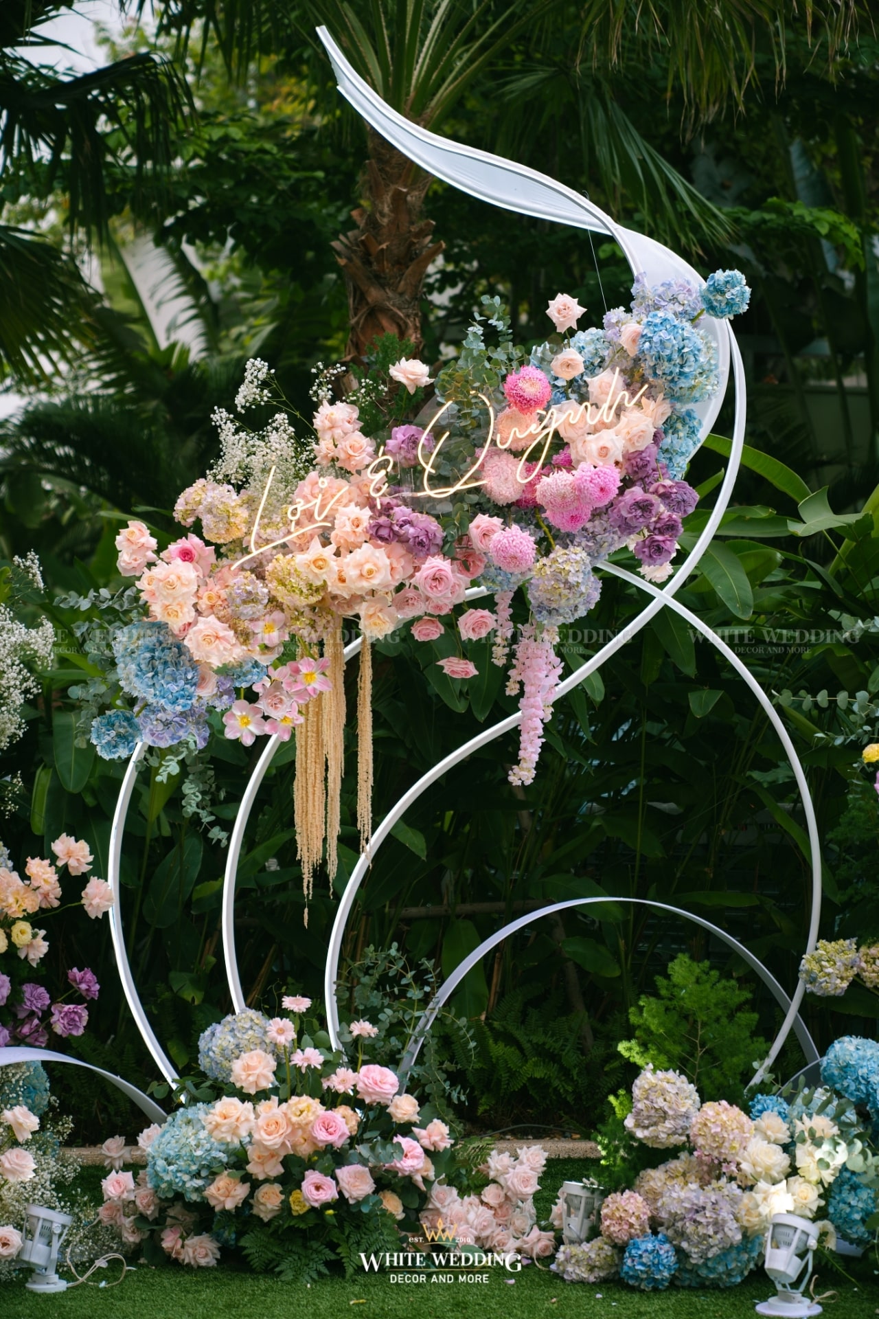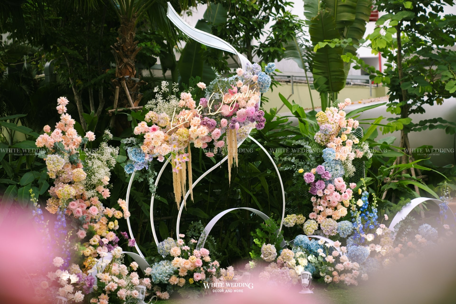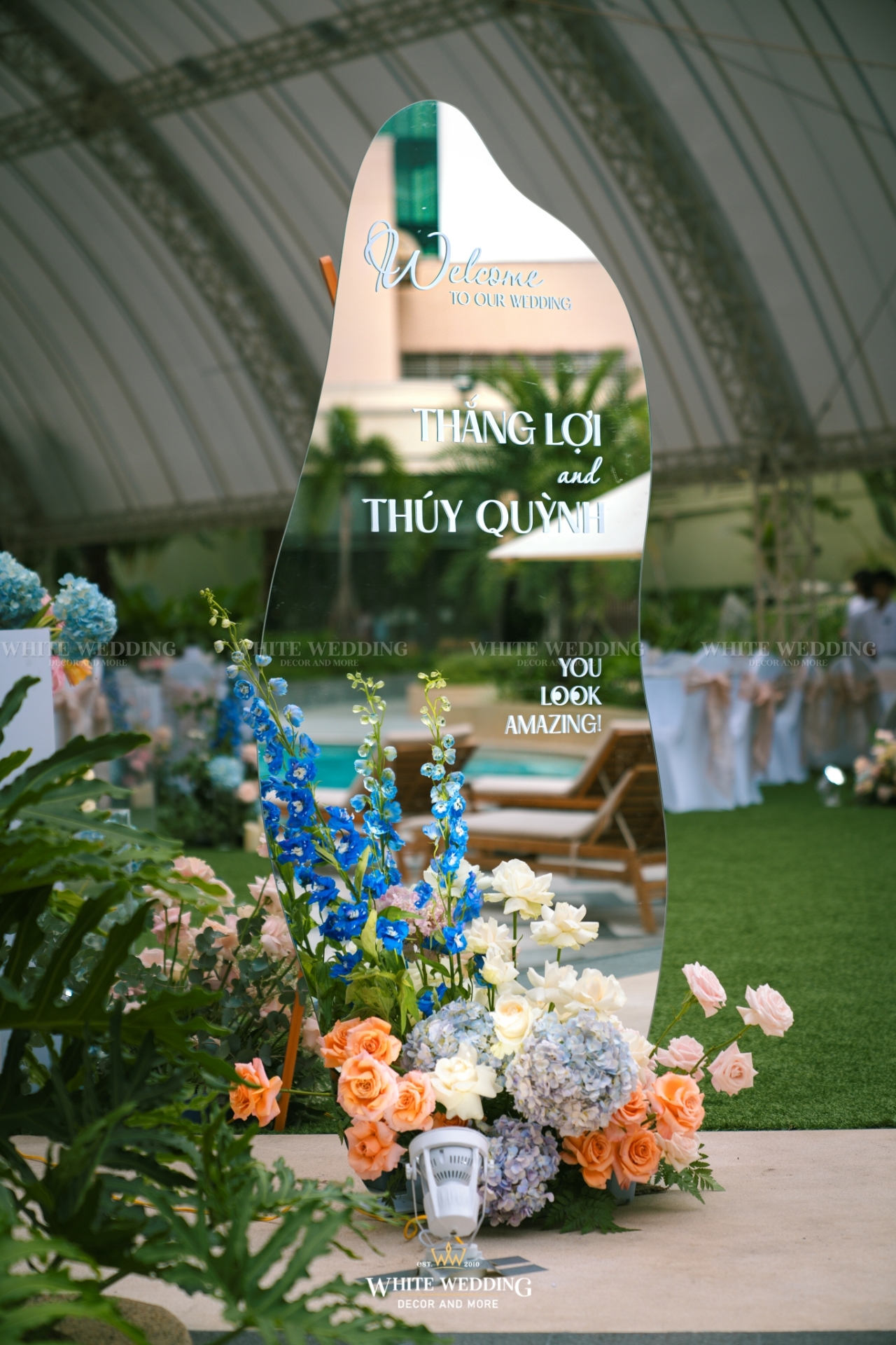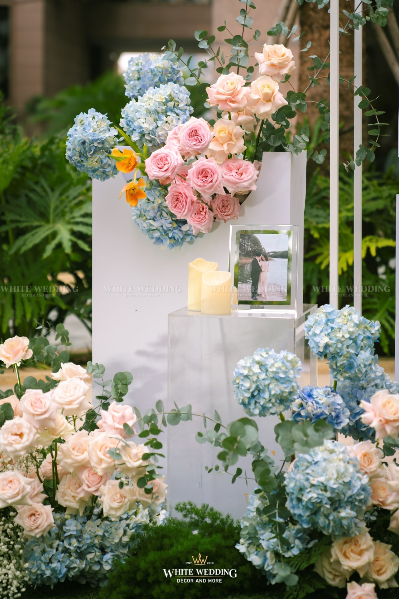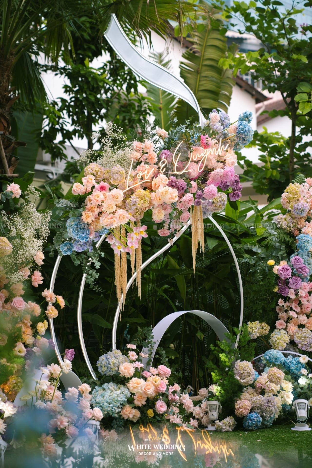 Dreamscape đưa khách mời bước vào một khu vườn mộng mơ ngập tràn hoa tươi và ánh sáng dịu dàng. Những khung tranh trắng xen kẽ ảnh cưới lưu giữ kỷ niệm ngọt ngào như mơ. Mọi chi tiết đều gợi cảm giác đầy thi vị như trong một giấc mộng đẹp.