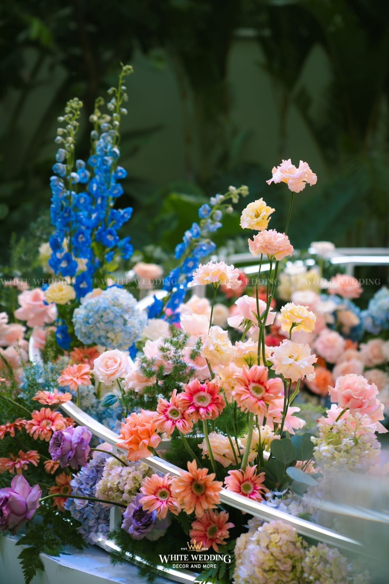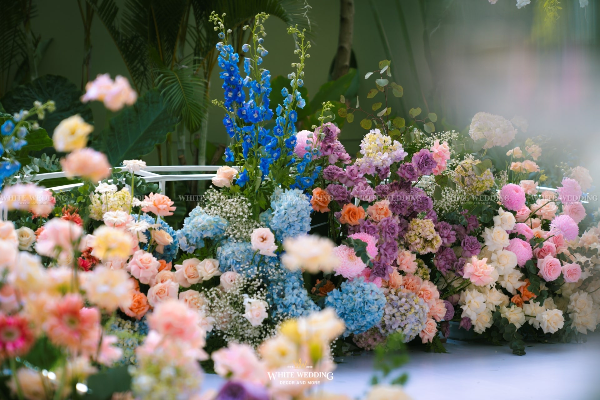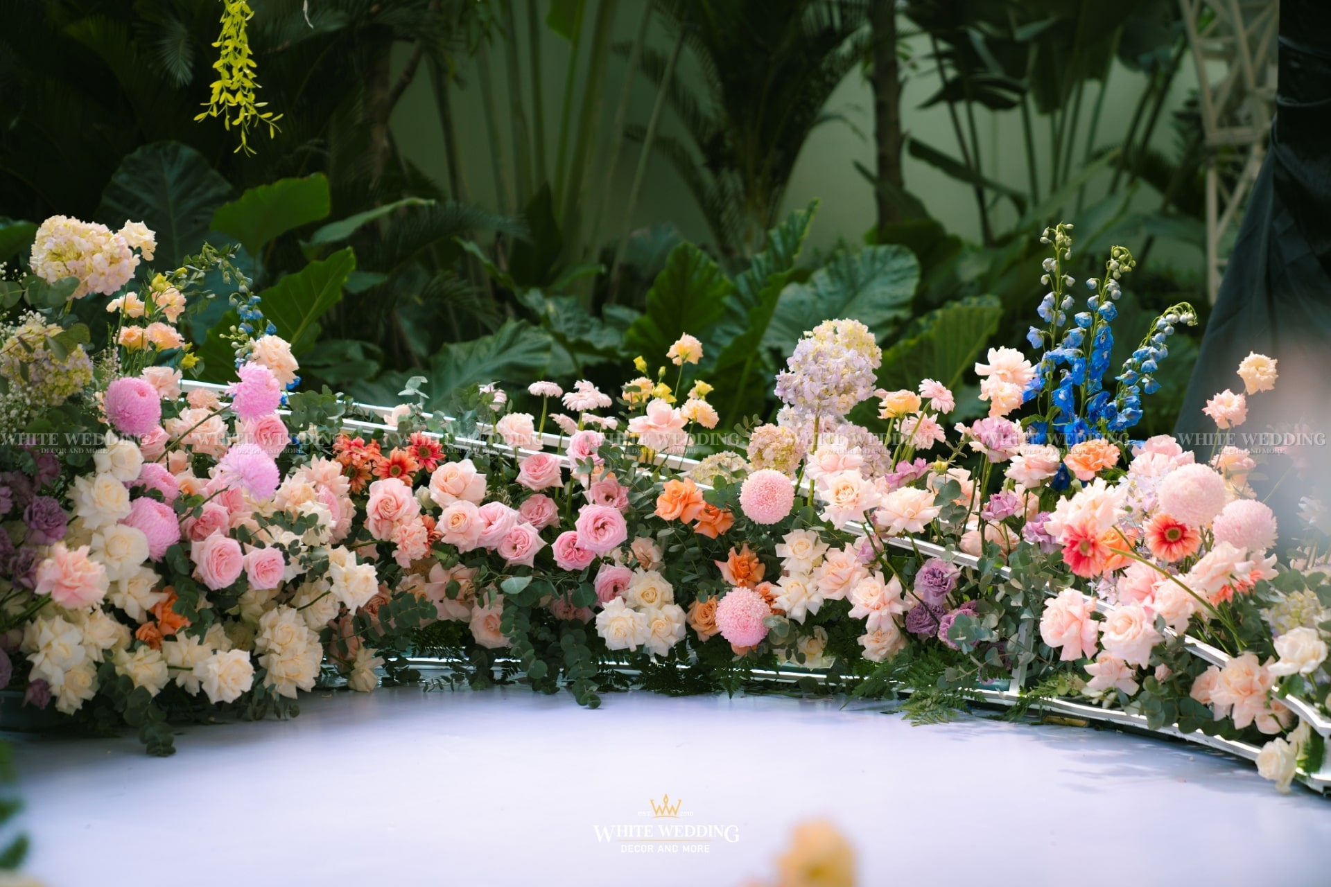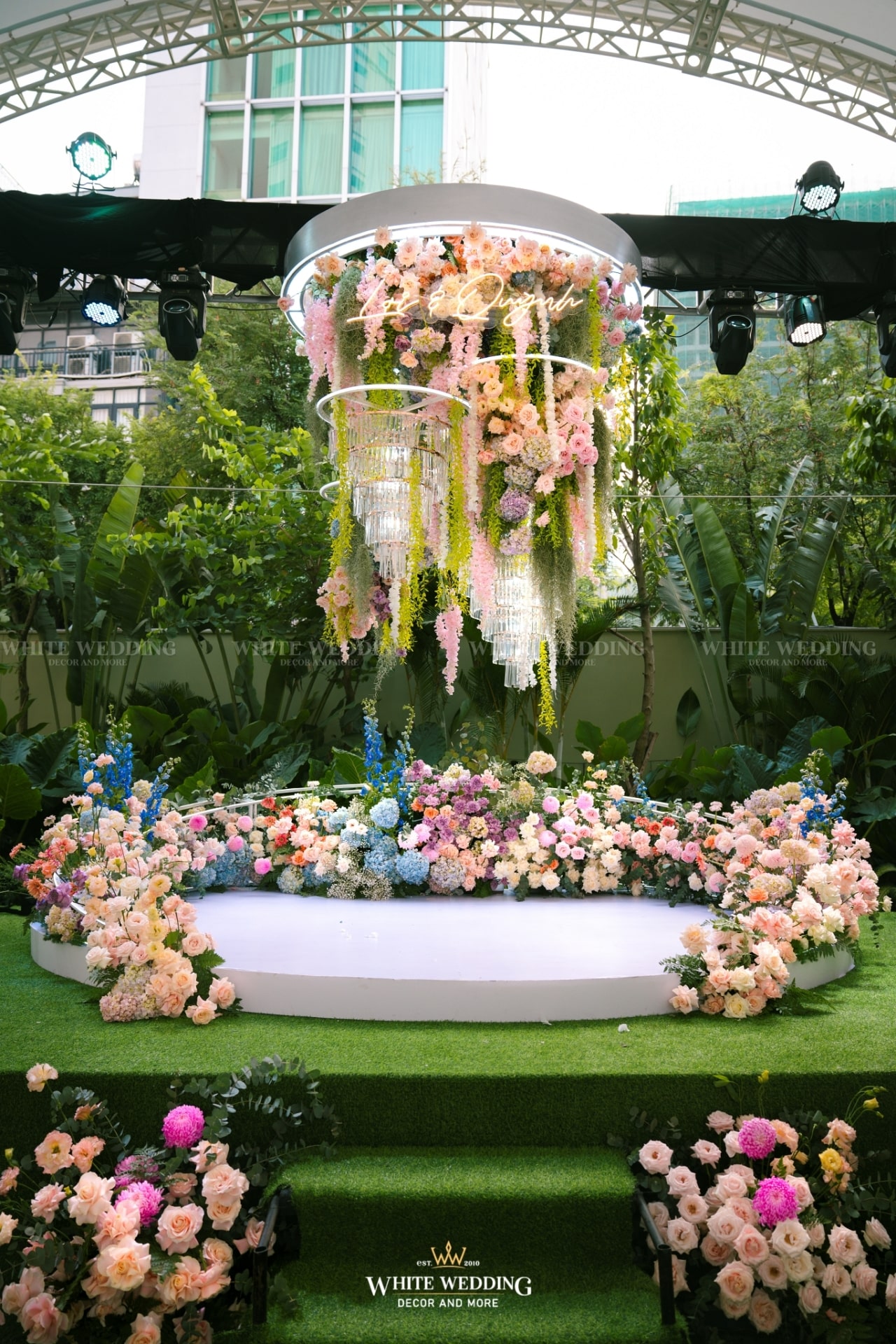 Dreamscape đưa khách mời bước vào một khu vườn mộng mơ ngập tràn hoa tươi và ánh sáng dịu dàng. Những khung tranh trắng xen kẽ ảnh cưới lưu giữ kỷ niệm ngọt ngào như mơ. Mọi chi tiết đều gợi cảm giác đầy thi vị như trong một giấc mộng đẹp.