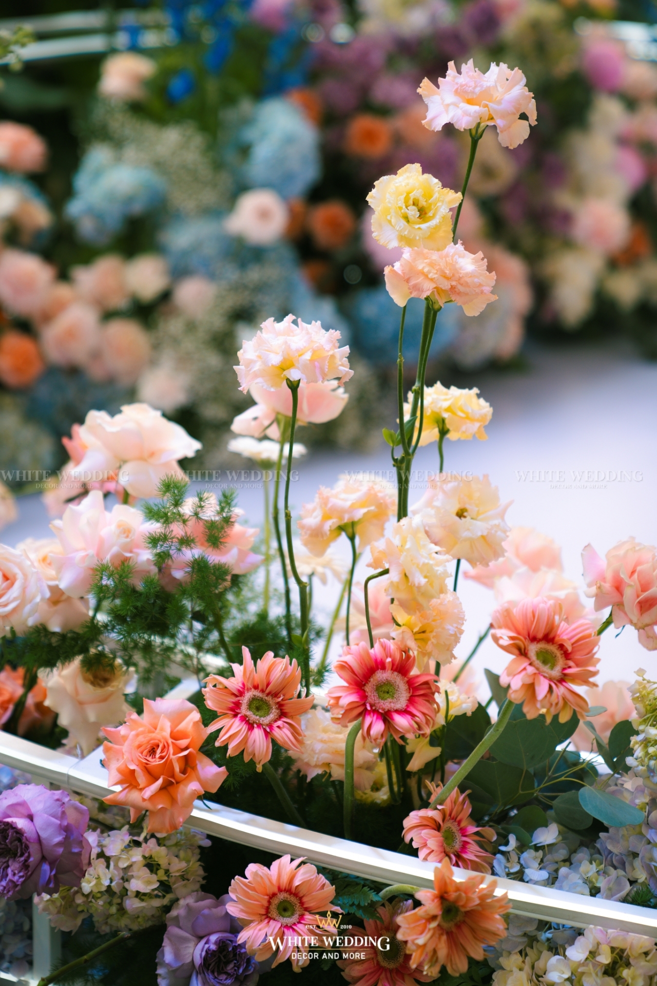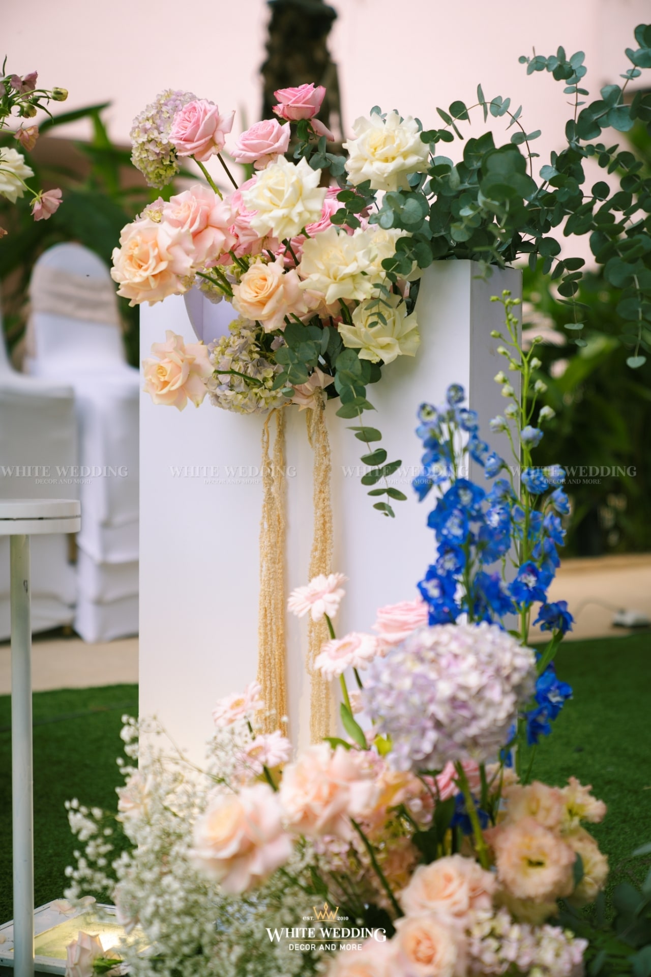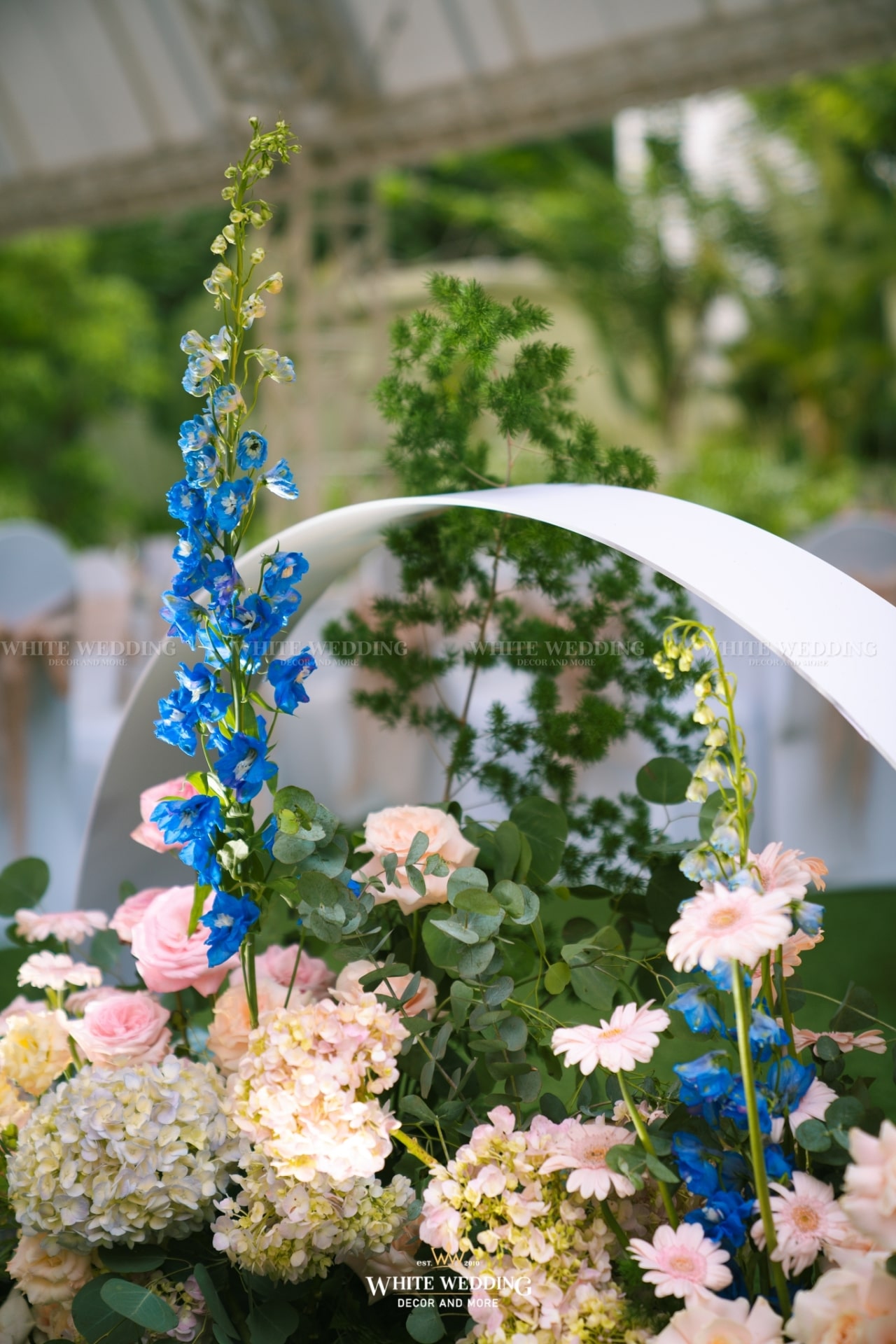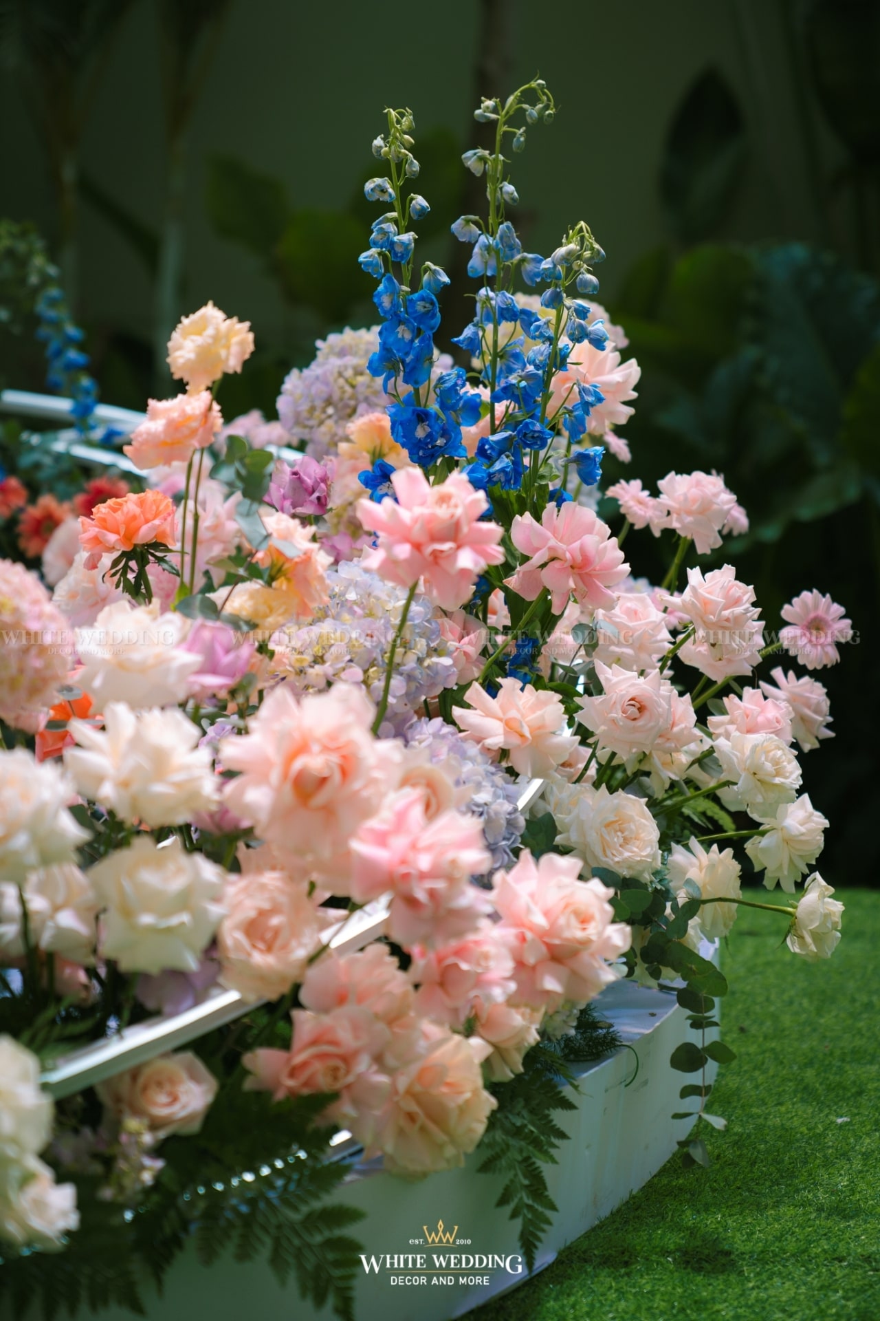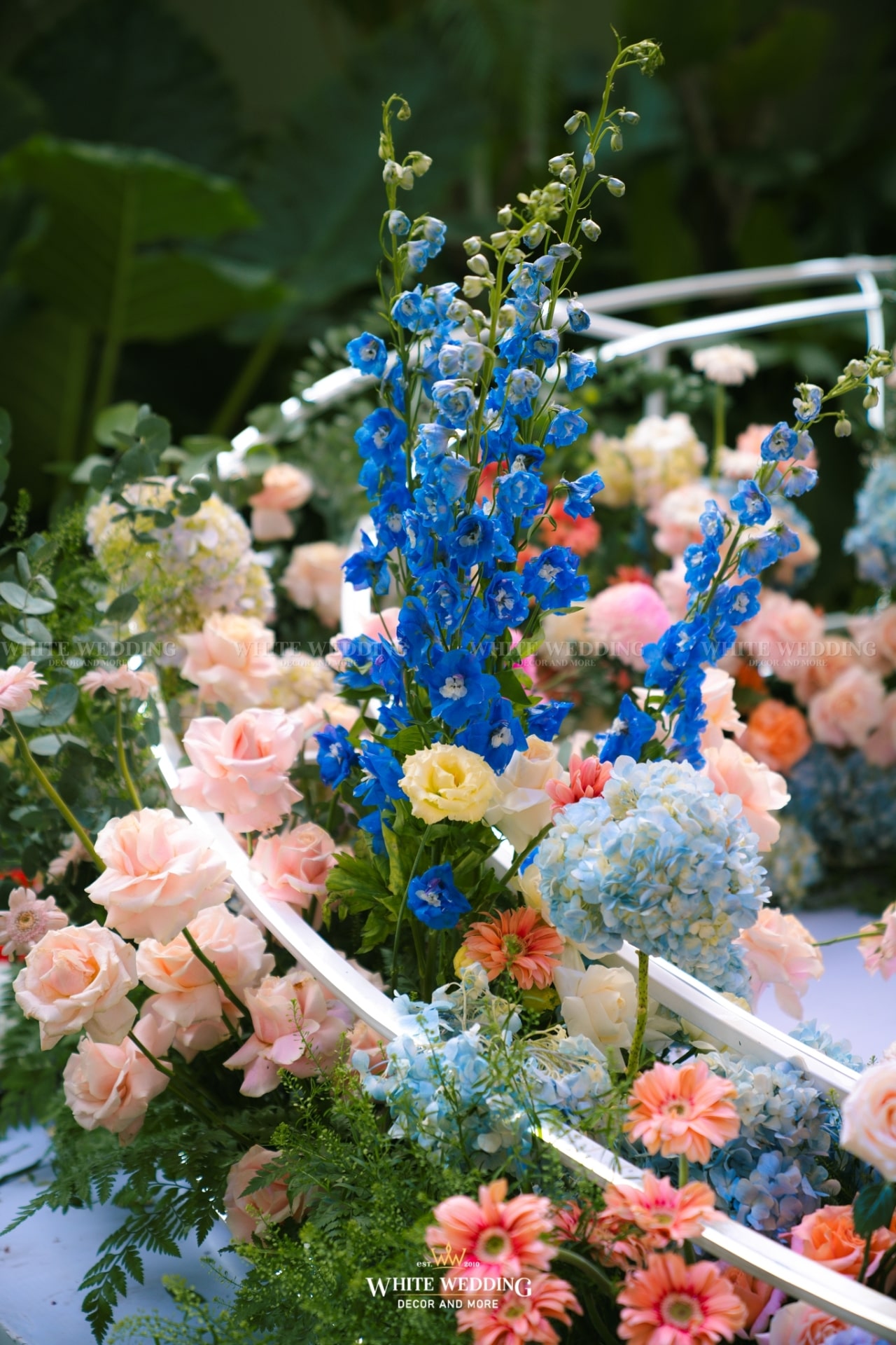 Dreamscape đưa khách mời bước vào một khu vườn mộng mơ ngập tràn hoa tươi và ánh sáng dịu dàng. Những khung tranh trắng xen kẽ ảnh cưới lưu giữ kỷ niệm ngọt ngào như mơ. Mọi chi tiết đều gợi cảm giác đầy thi vị như trong một giấc mộng đẹp.