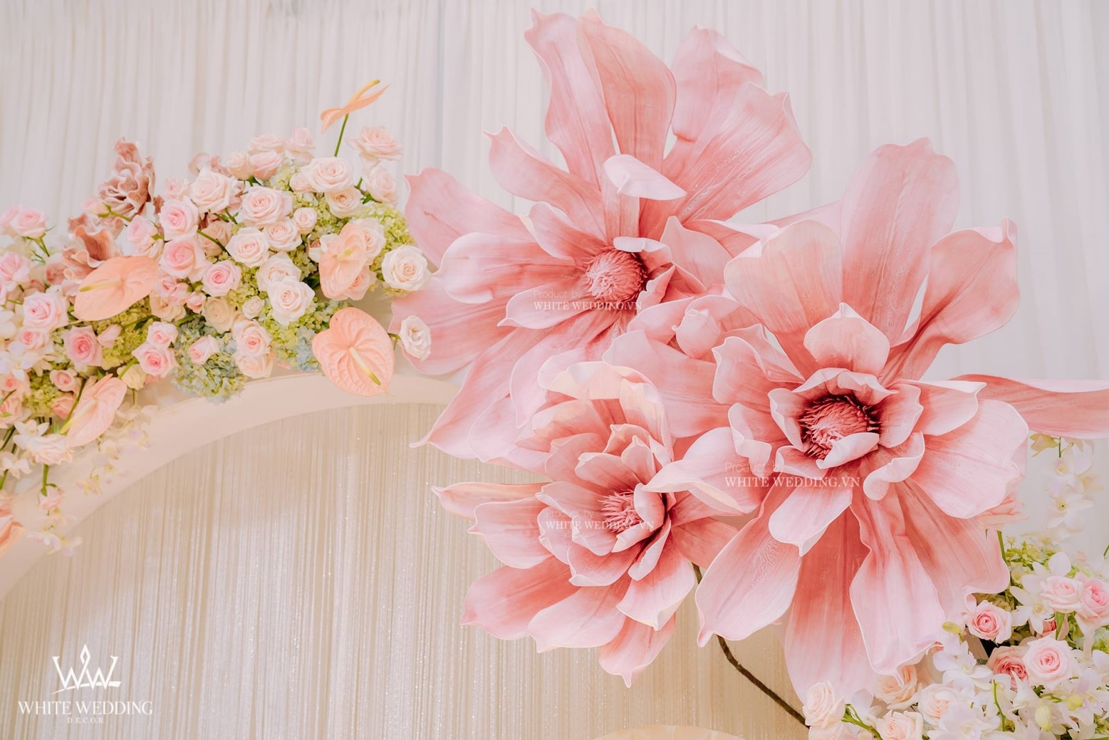 — 👉 Không chỉ là trang trí, White còn tư vấn tông màu sắc, chất liệu vật trang trí, phong cách nghệ thuật phù hợp với đám cưới của bạn.