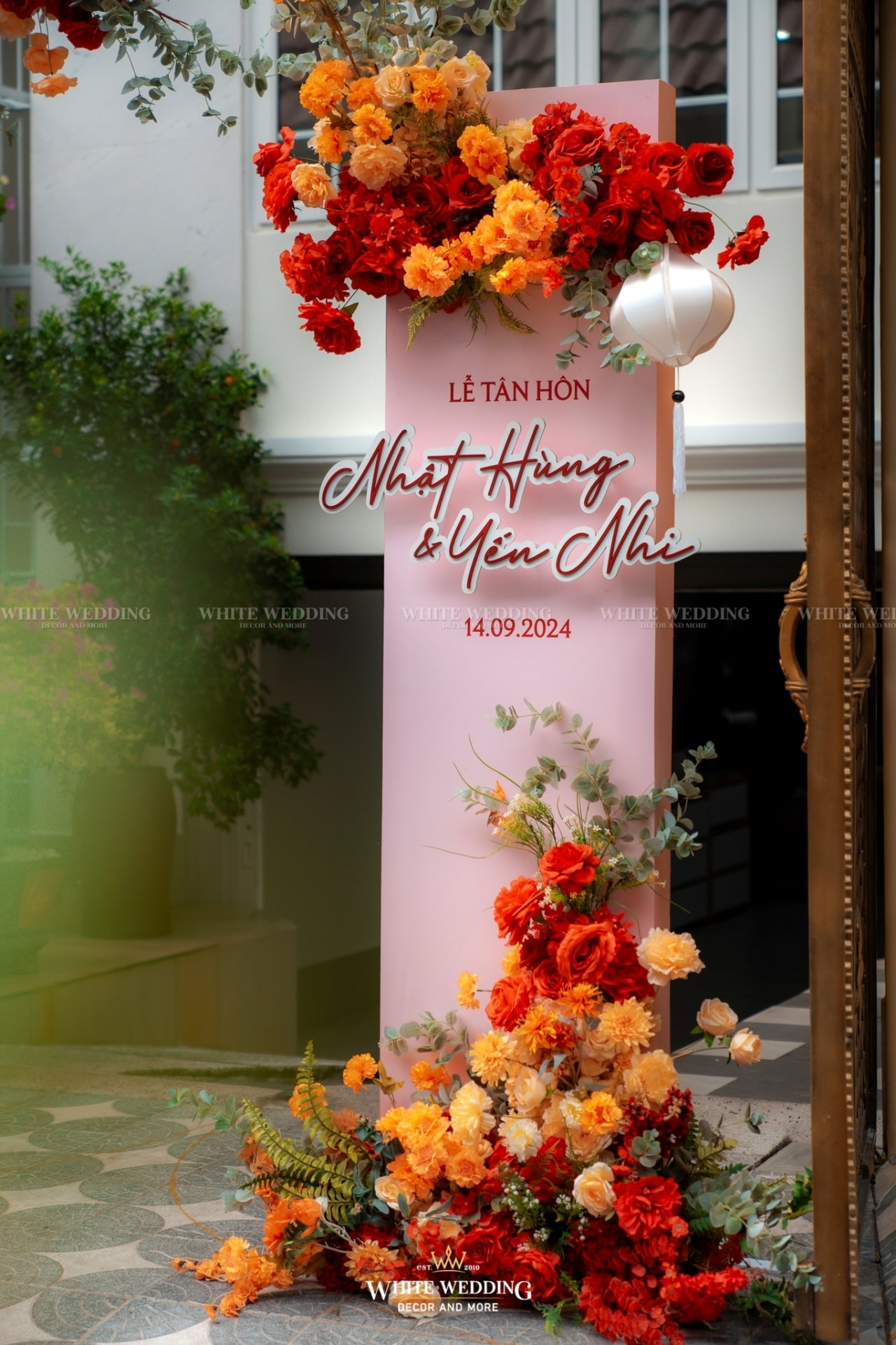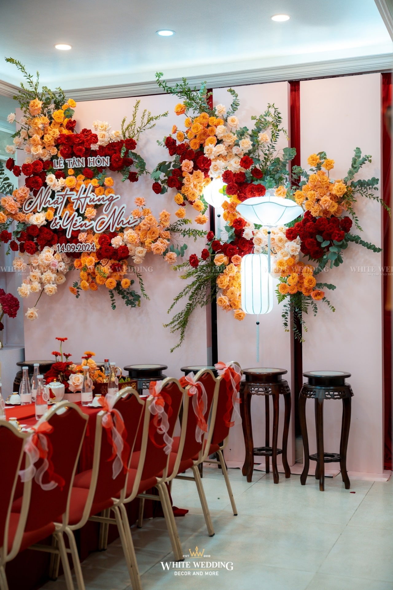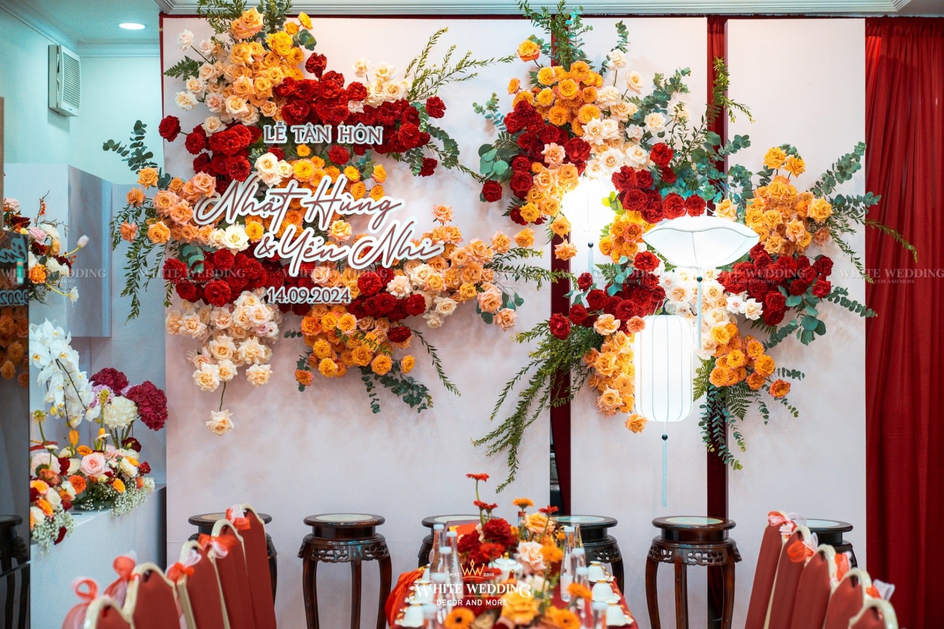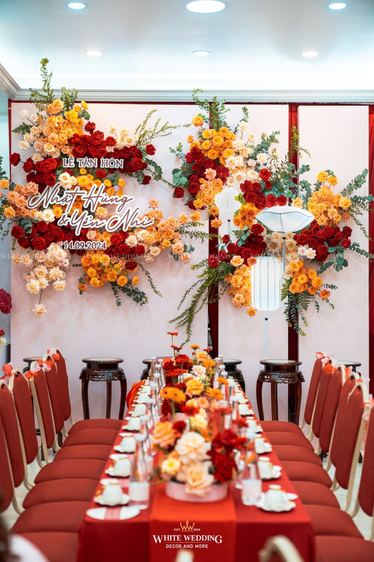 Fiery Rose – Nét rực rỡ của sắc đỏ, cam và hoa hồng nude, bùng nổ trong không gian lễ tân hôn của Nhật Hùng & Yến Nhi.