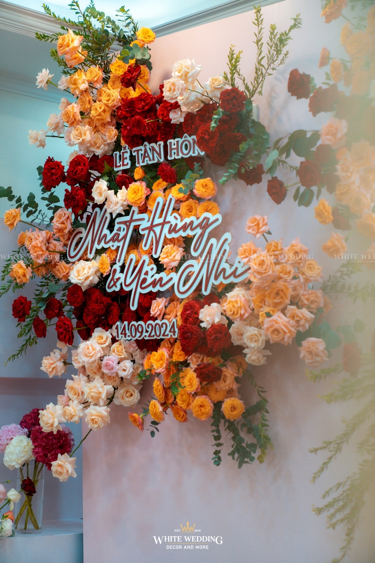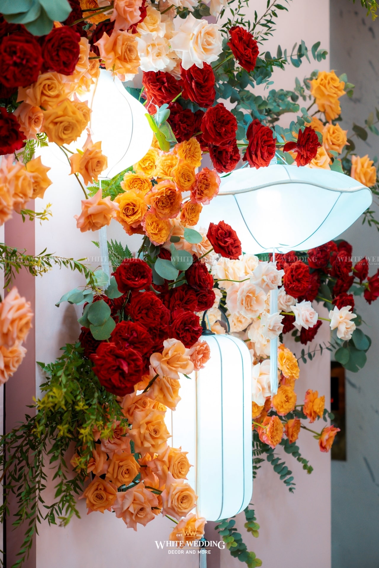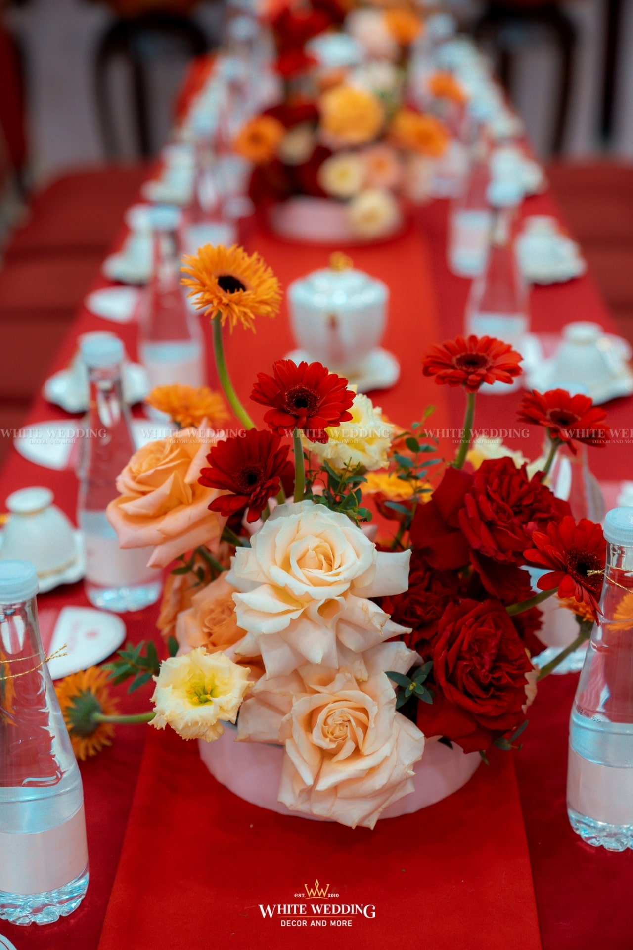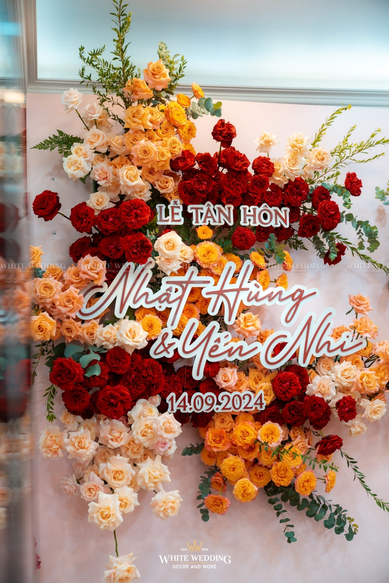 Fiery Rose – Nét rực rỡ của sắc đỏ, cam và hoa hồng nude, bùng nổ trong không gian lễ tân hôn của Nhật Hùng & Yến Nhi.