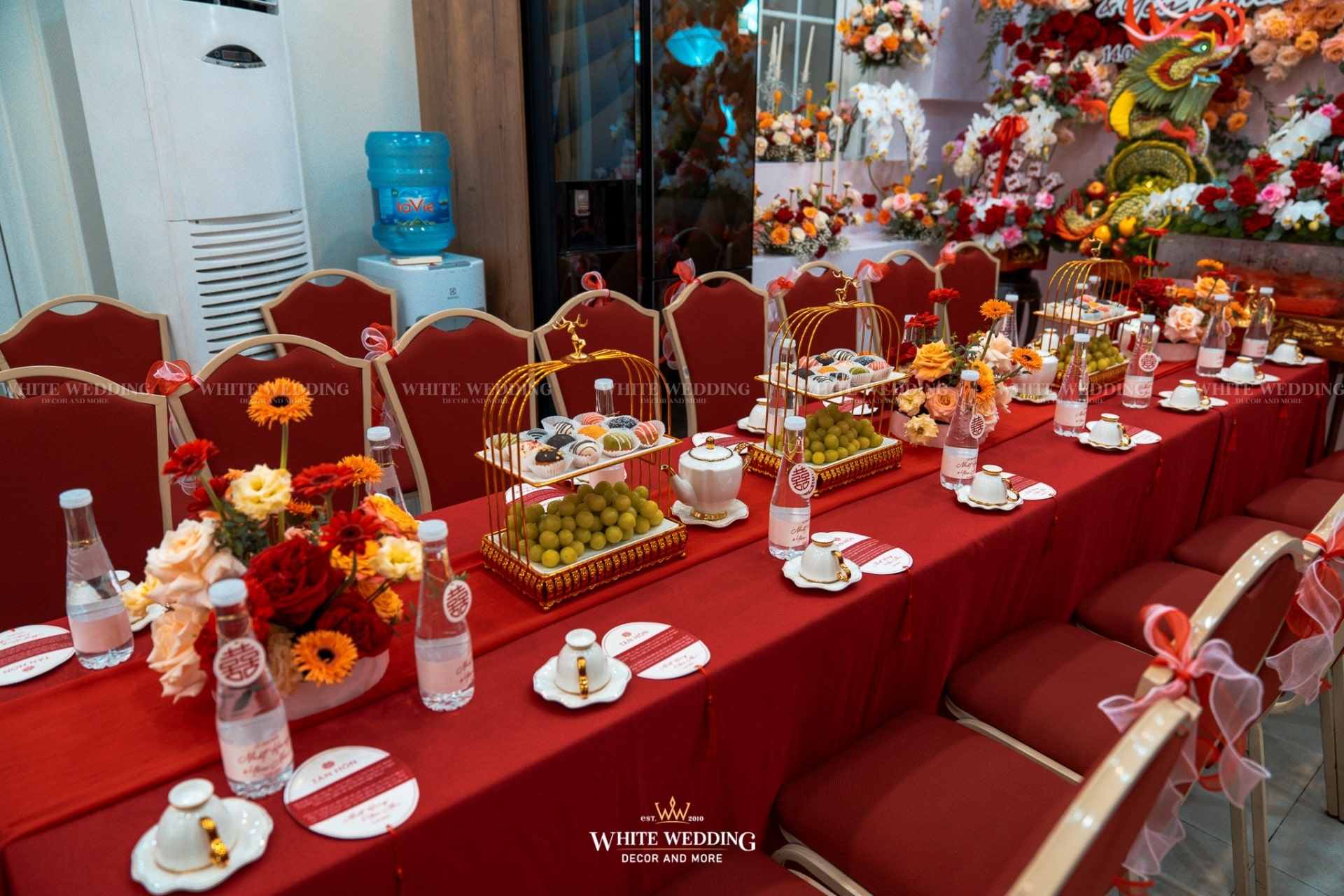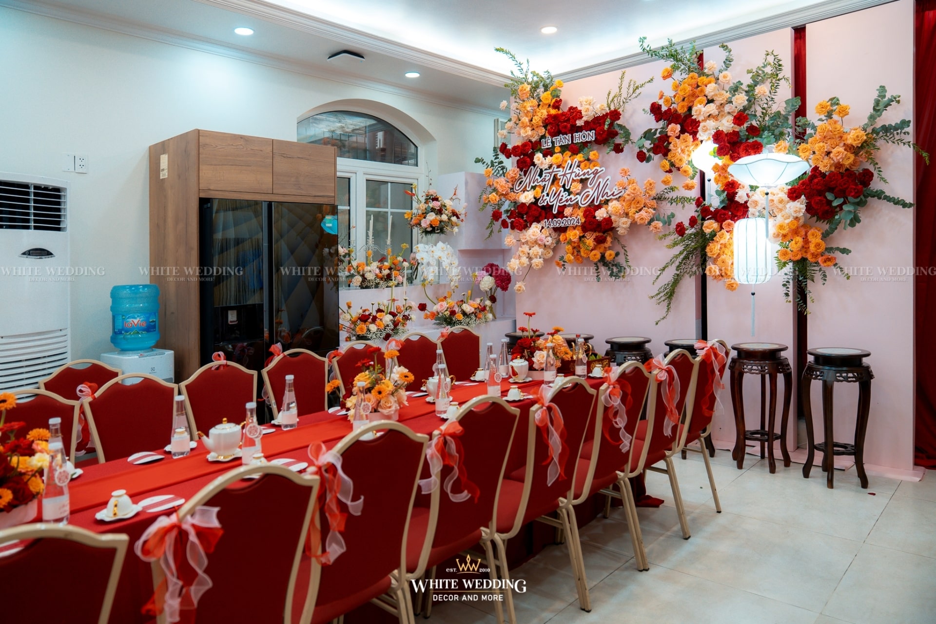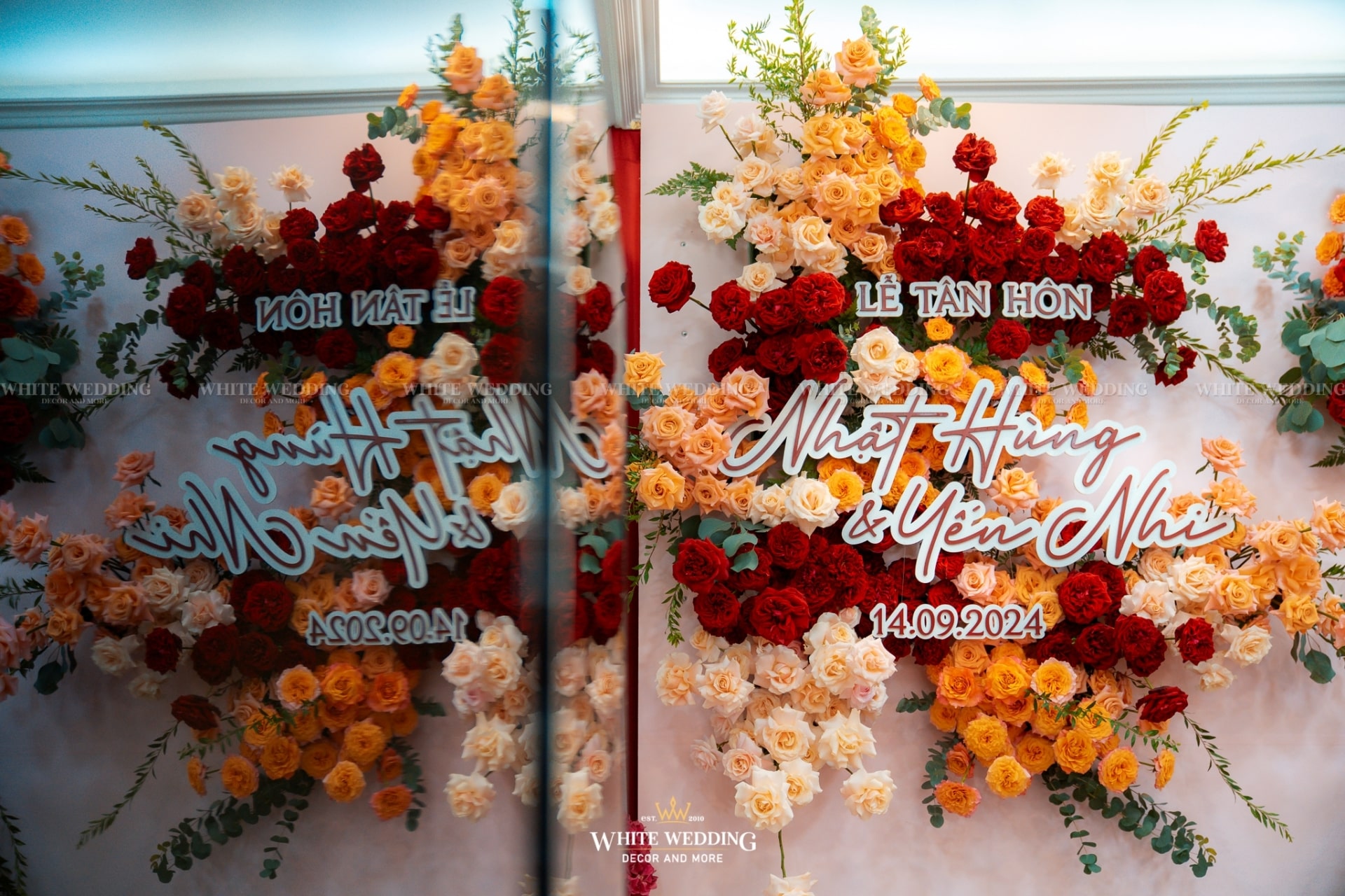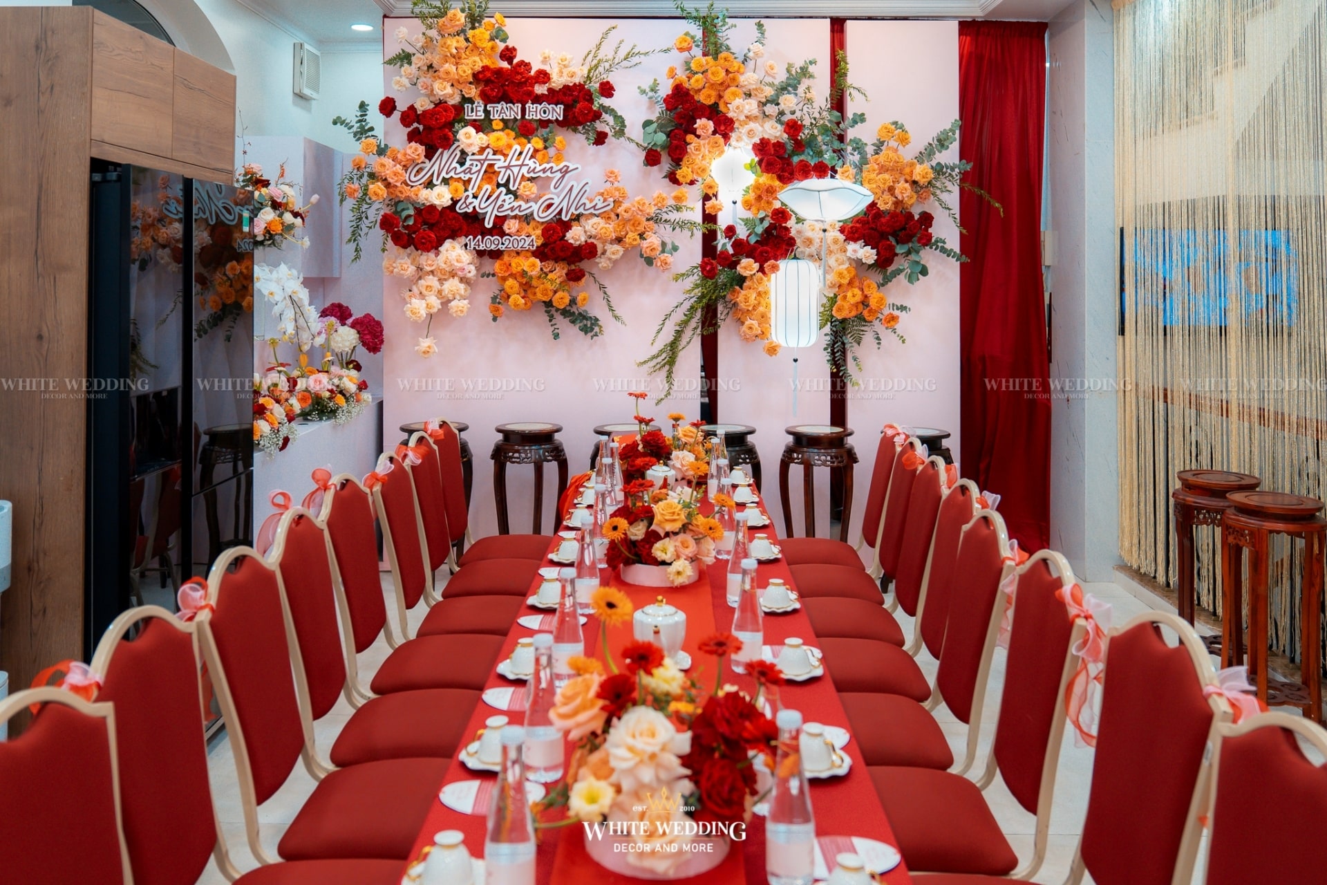 Fiery Rose – Nét rực rỡ của sắc đỏ, cam và hoa hồng nude, bùng nổ trong không gian lễ tân hôn của Nhật Hùng & Yến Nhi.