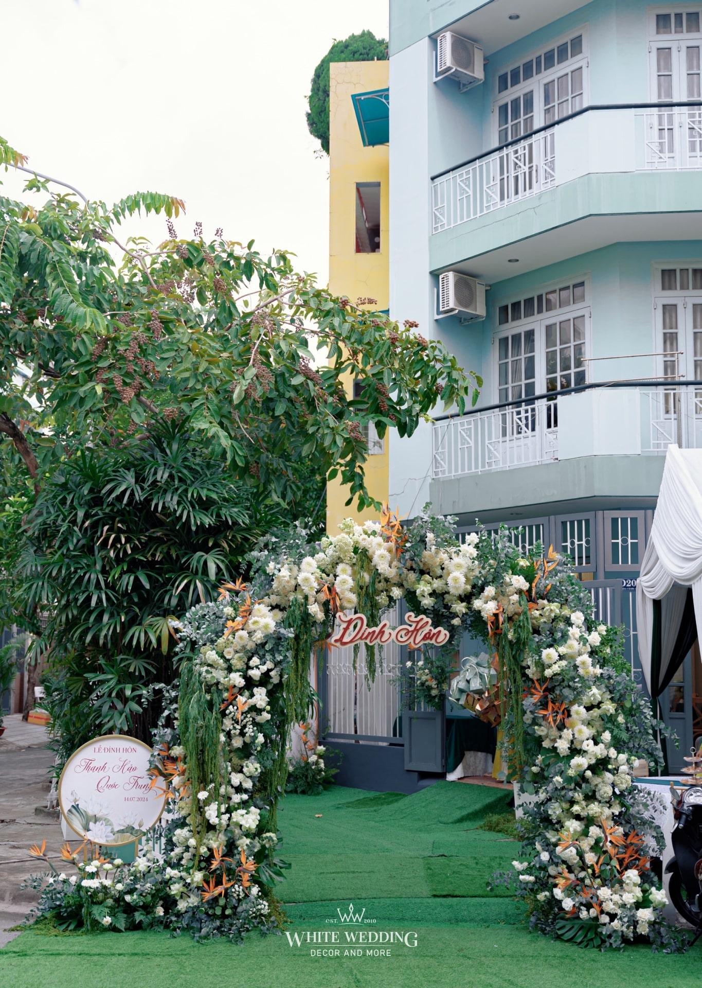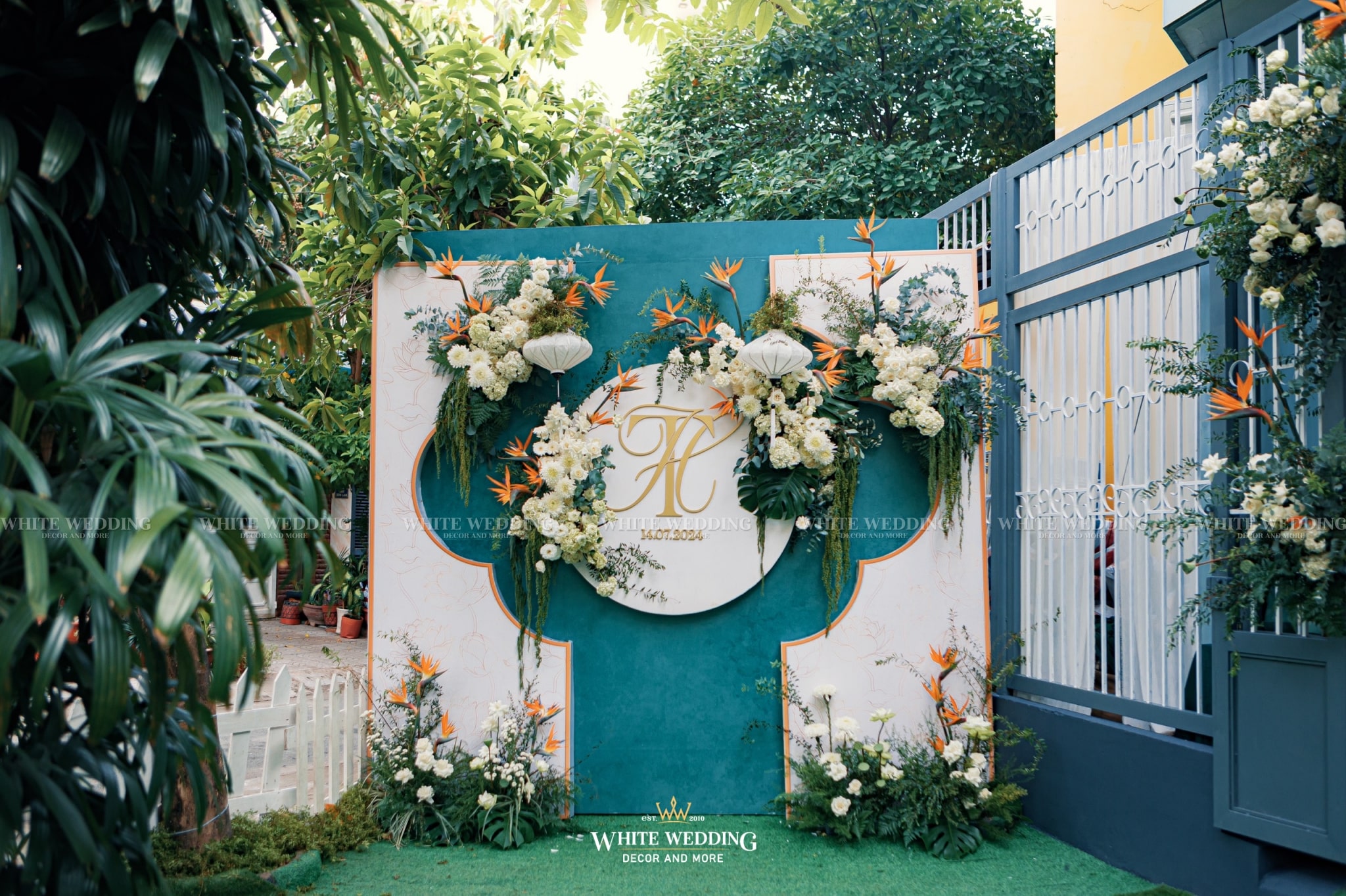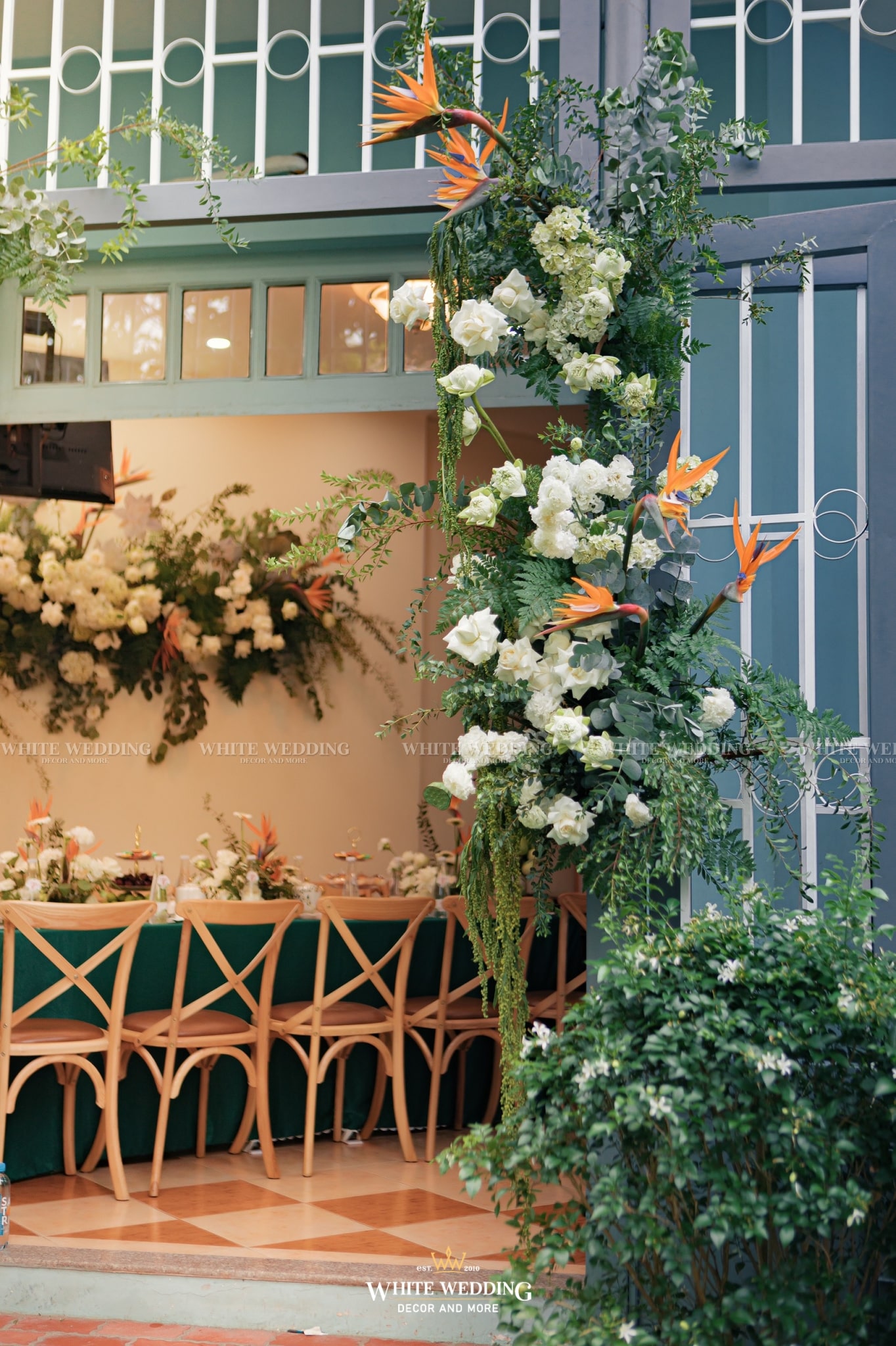 Concept trang trí của tiệc cưới lần này được thiết kế riêng biệt, lấy cảm hứng từ chính kiến trúc căn nhà của Hảo & Trung – nơi lưu giữ những yêu thương, và cũng là nơi đánh dấu bước khởi đầu cho hành trình mới.
