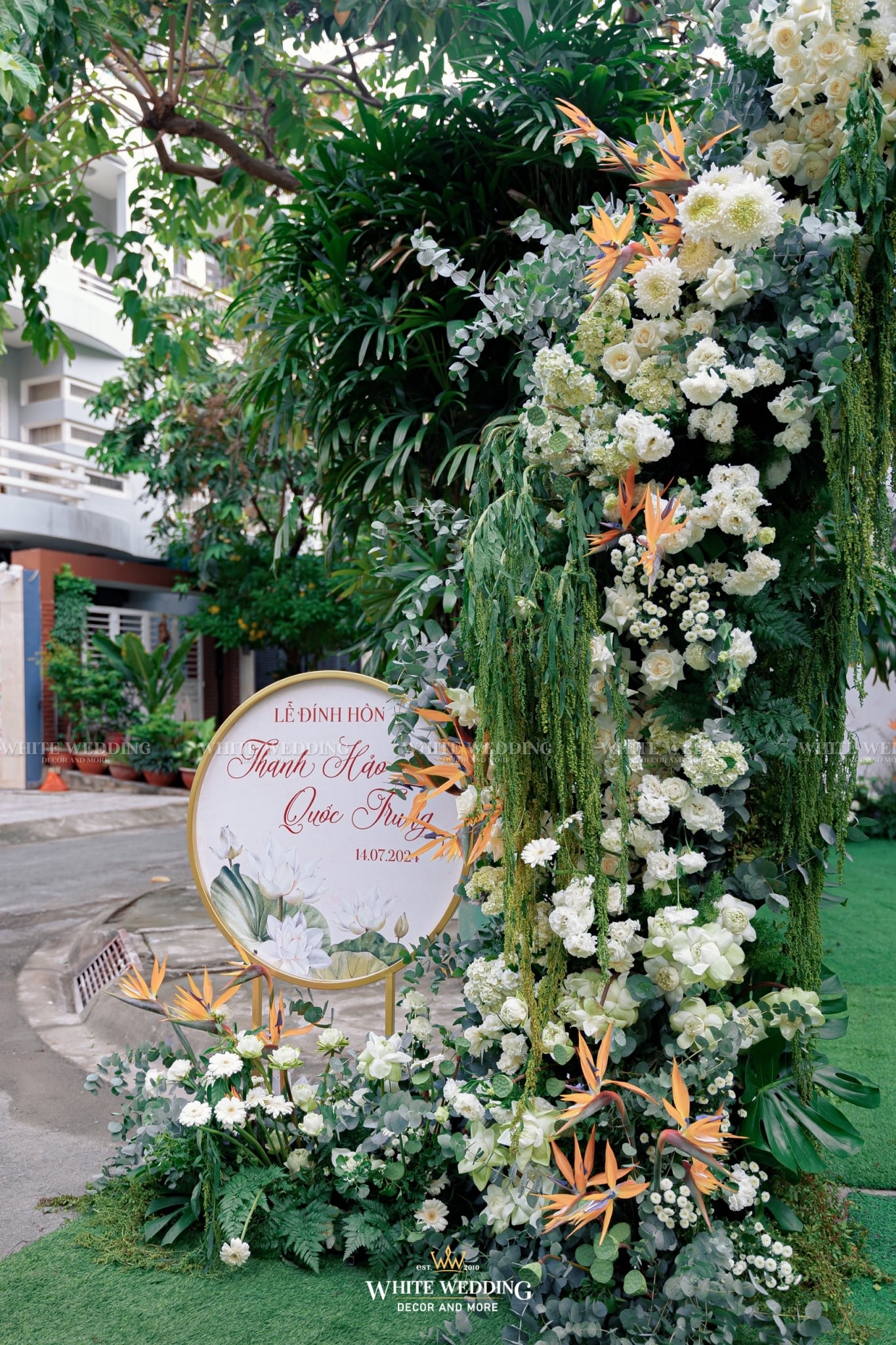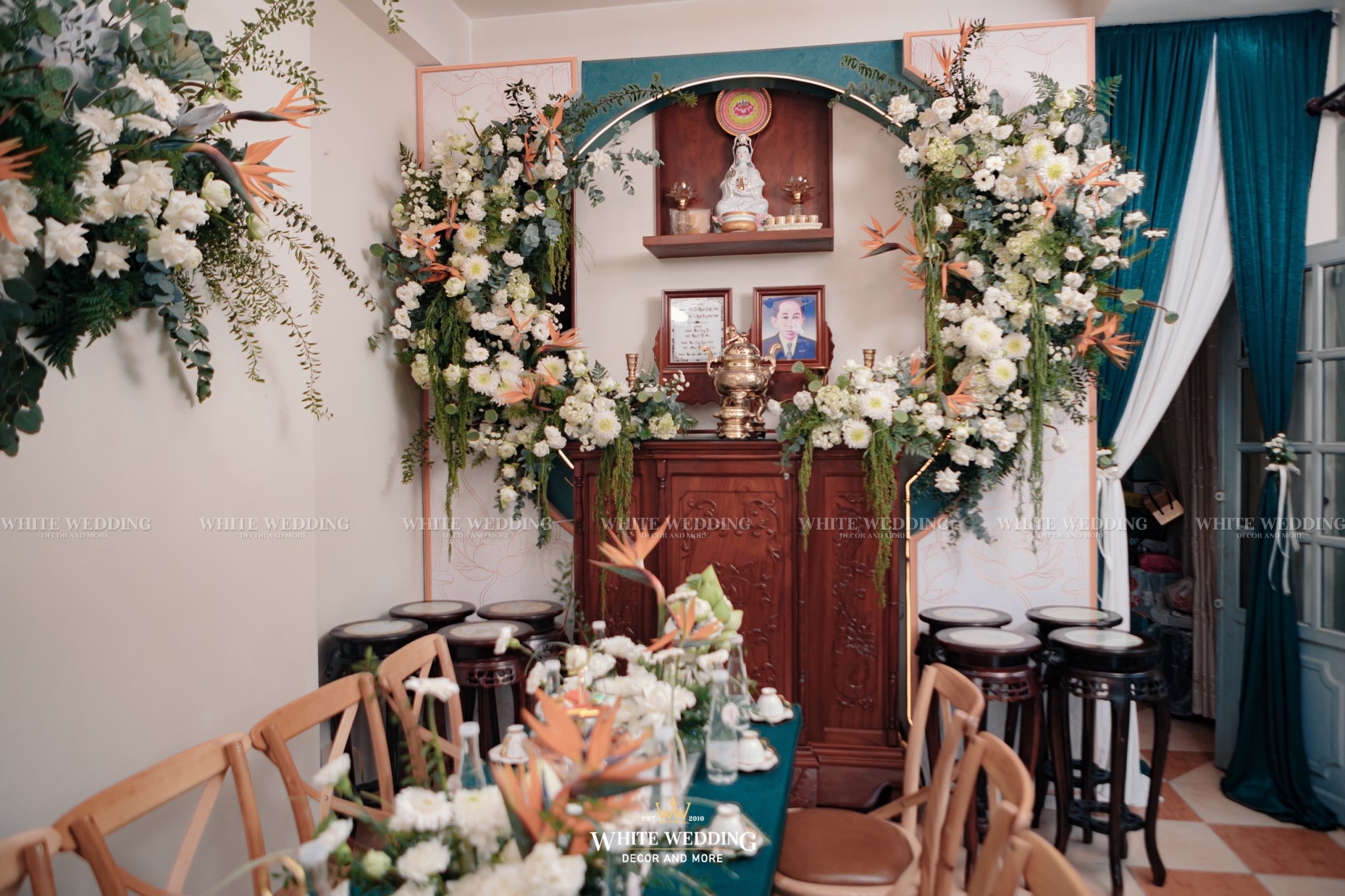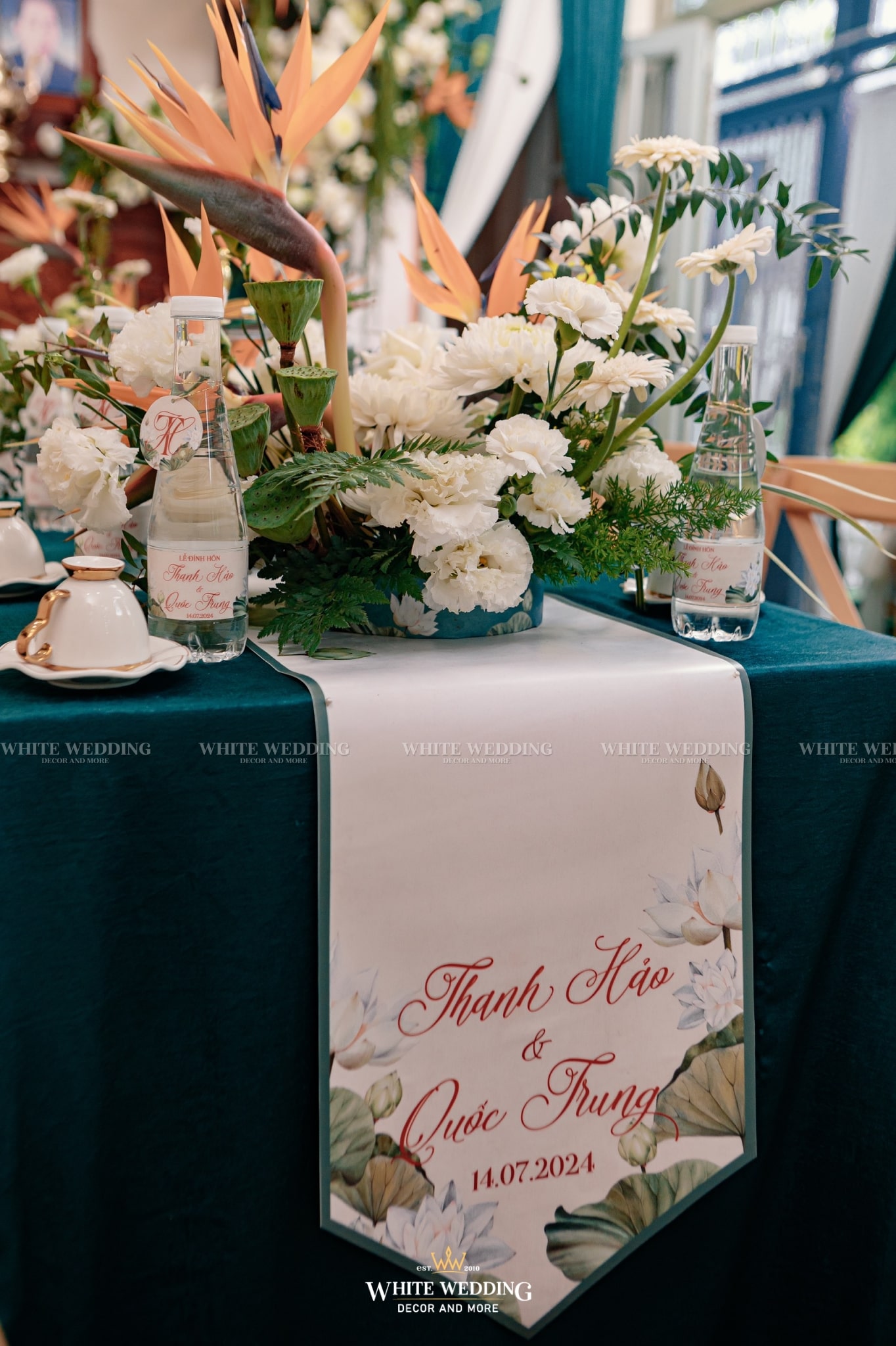 Concept trang trí của tiệc cưới lần này được thiết kế riêng biệt, lấy cảm hứng từ chính kiến trúc căn nhà của Hảo & Trung – nơi lưu giữ những yêu thương, và cũng là nơi đánh dấu bước khởi đầu cho hành trình mới.