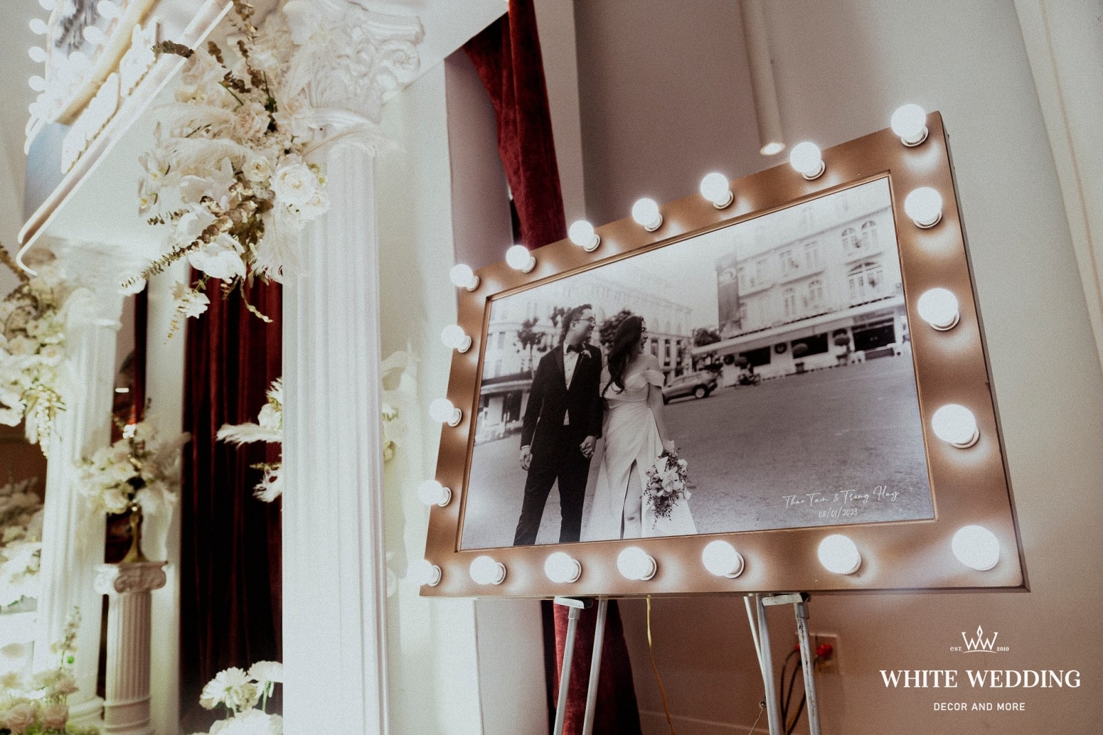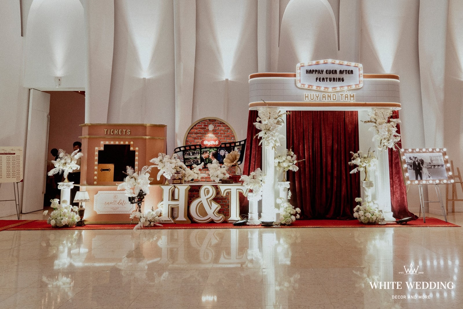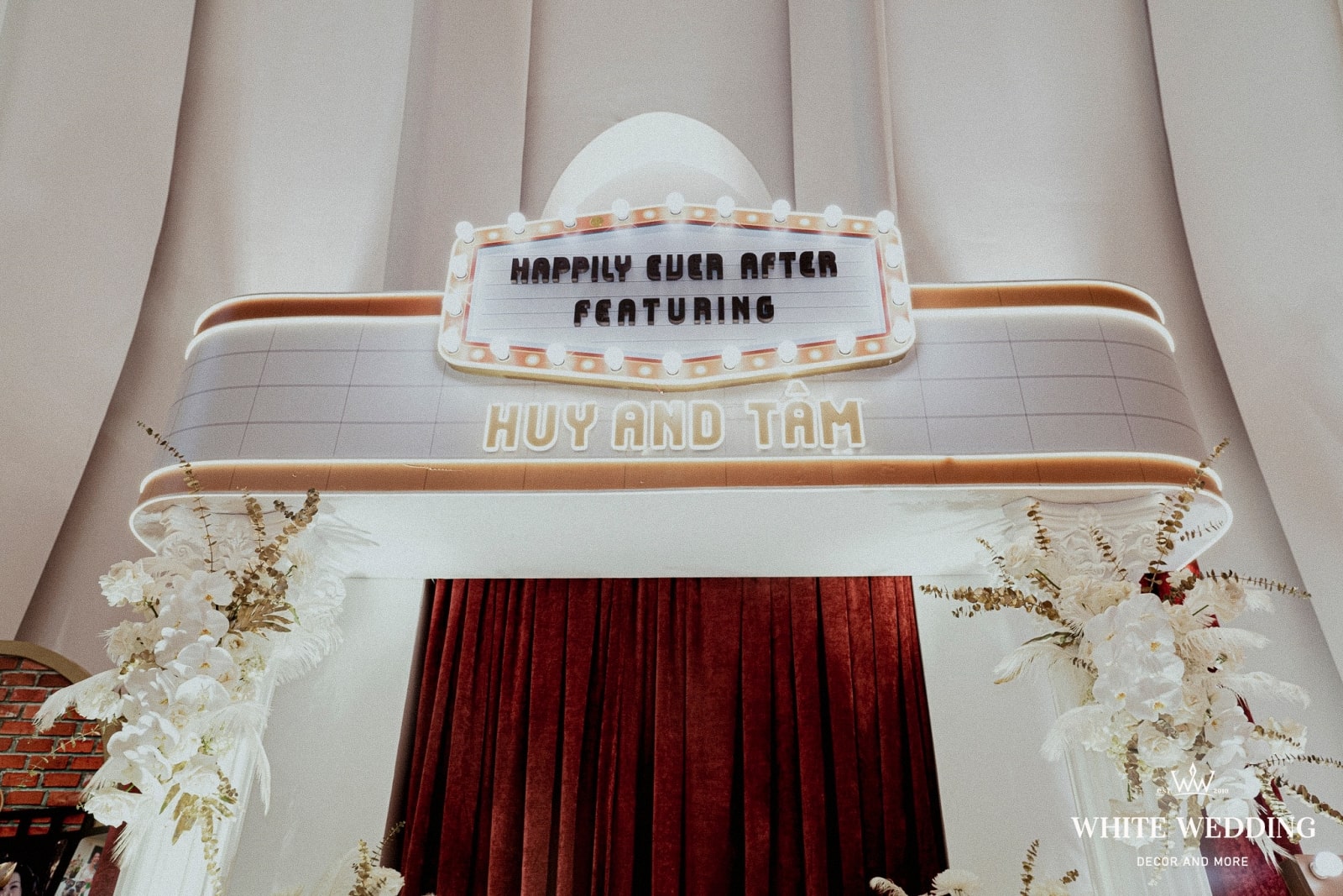 — 👉 Không chỉ là trang trí, White còn tư vấn tông màu sắc, chất liệu vật trang trí, phong cách nghệ thuật phù hợp với đám cưới của bạn.