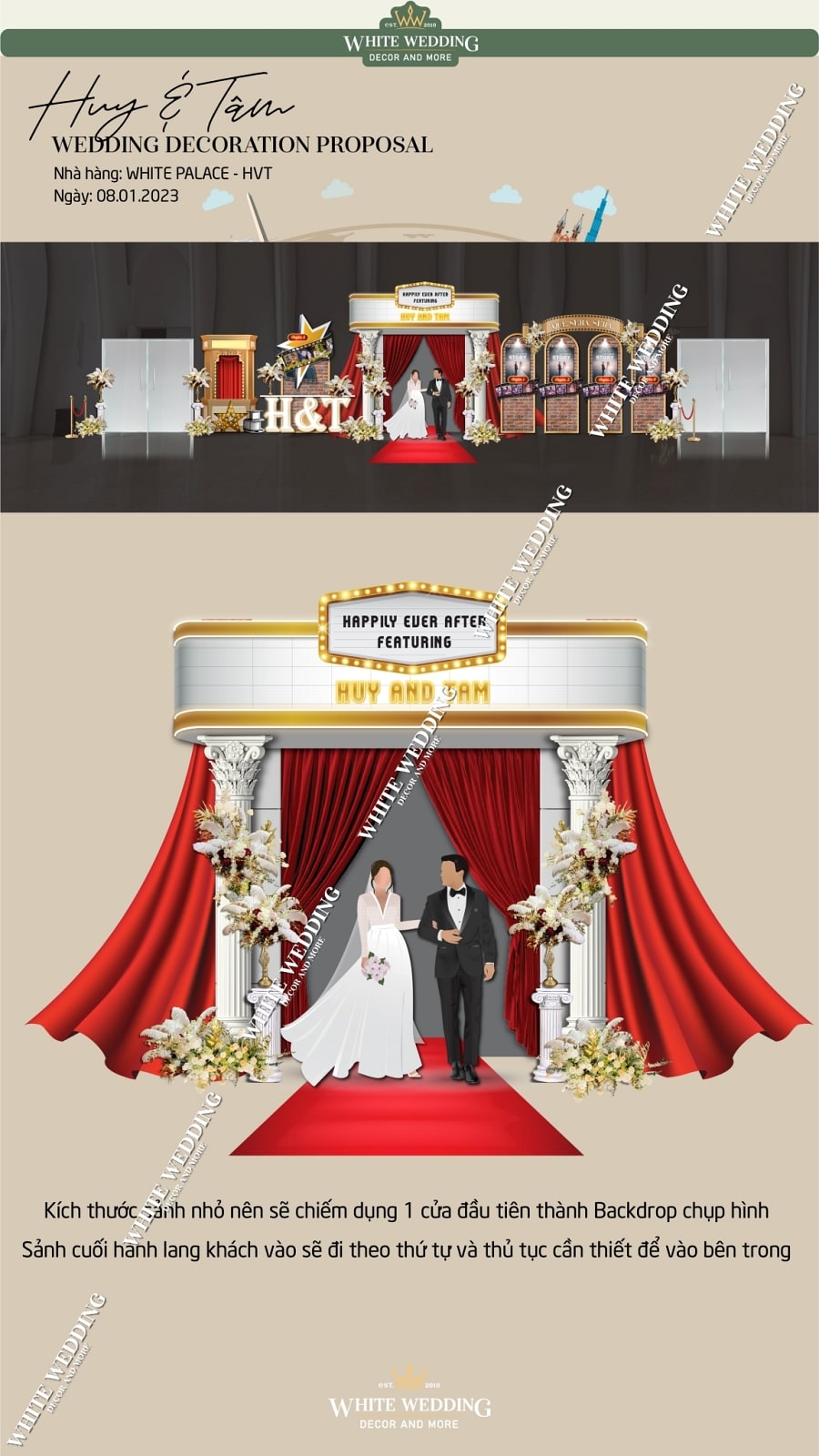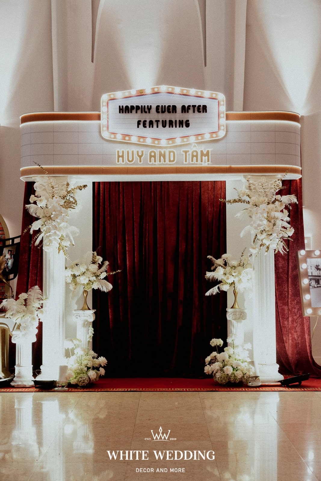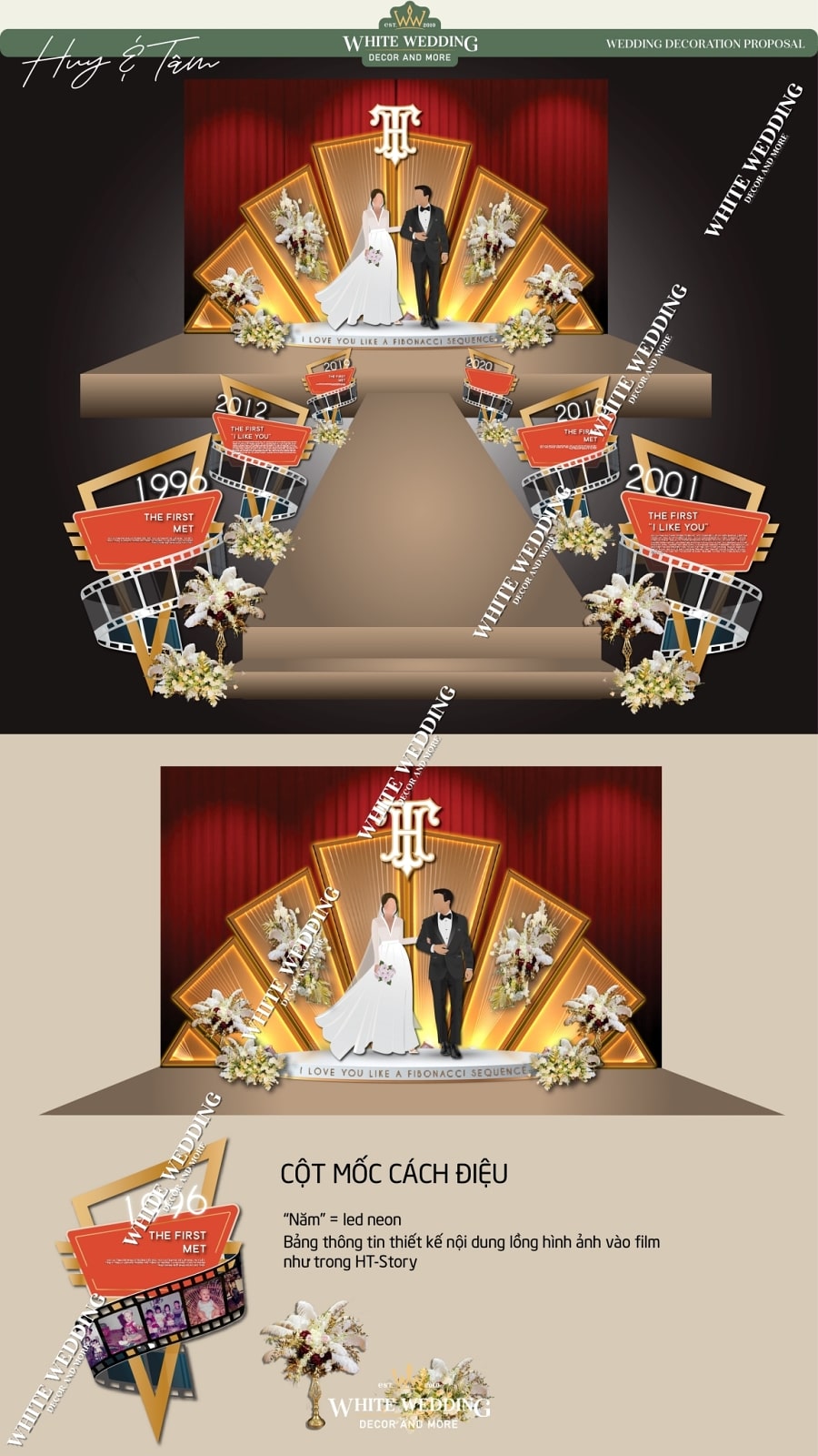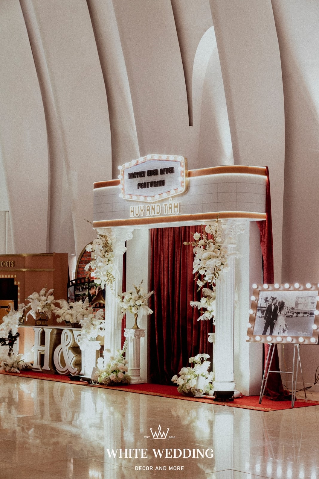 — 👉 Không chỉ là trang trí, White còn tư vấn tông màu sắc, chất liệu vật trang trí, phong cách nghệ thuật phù hợp với đám cưới của bạn.