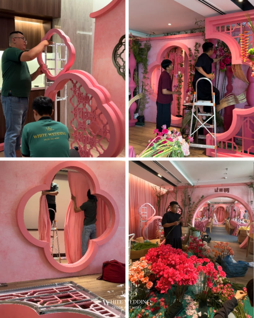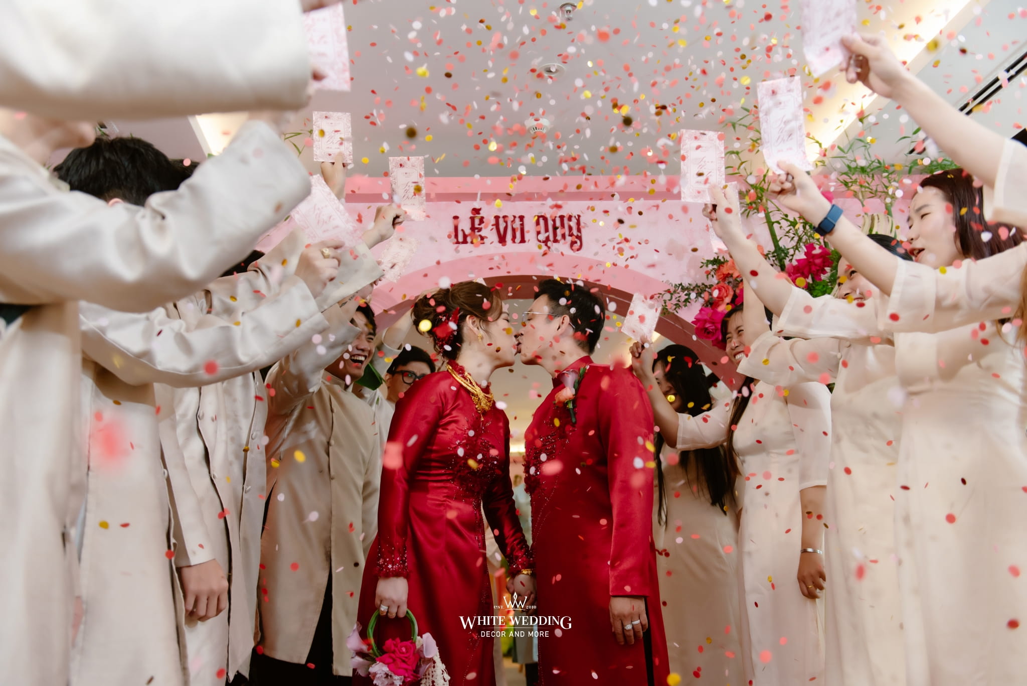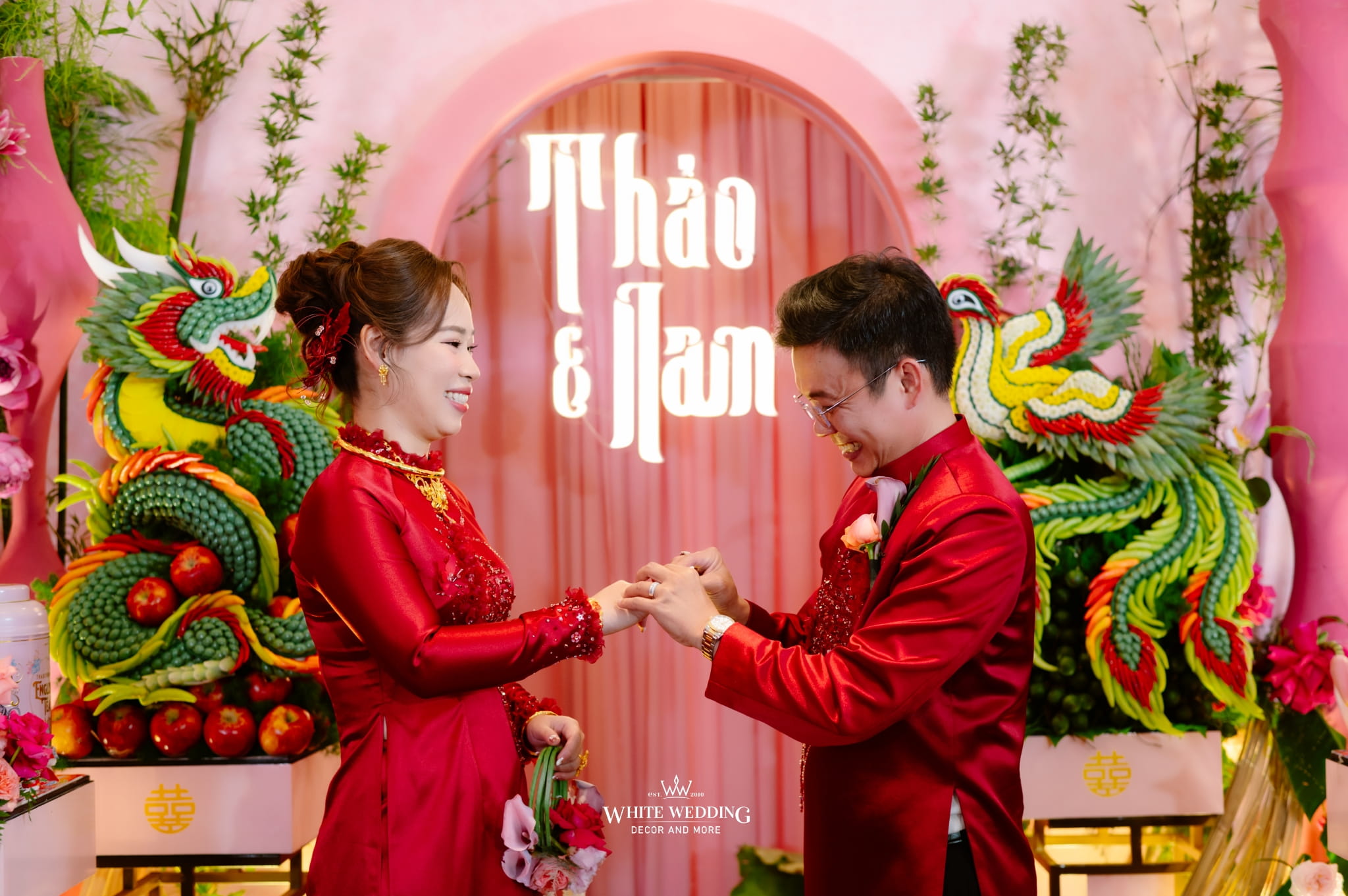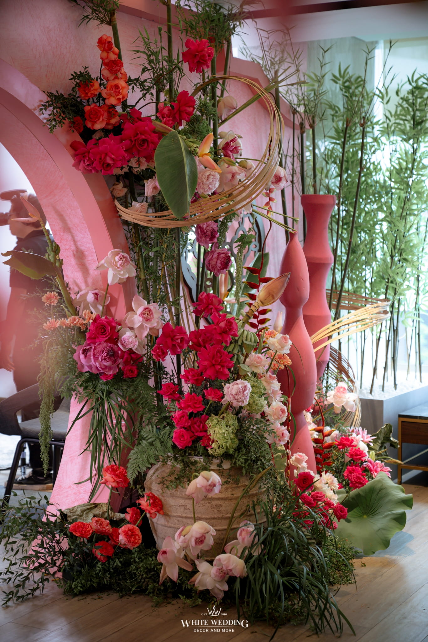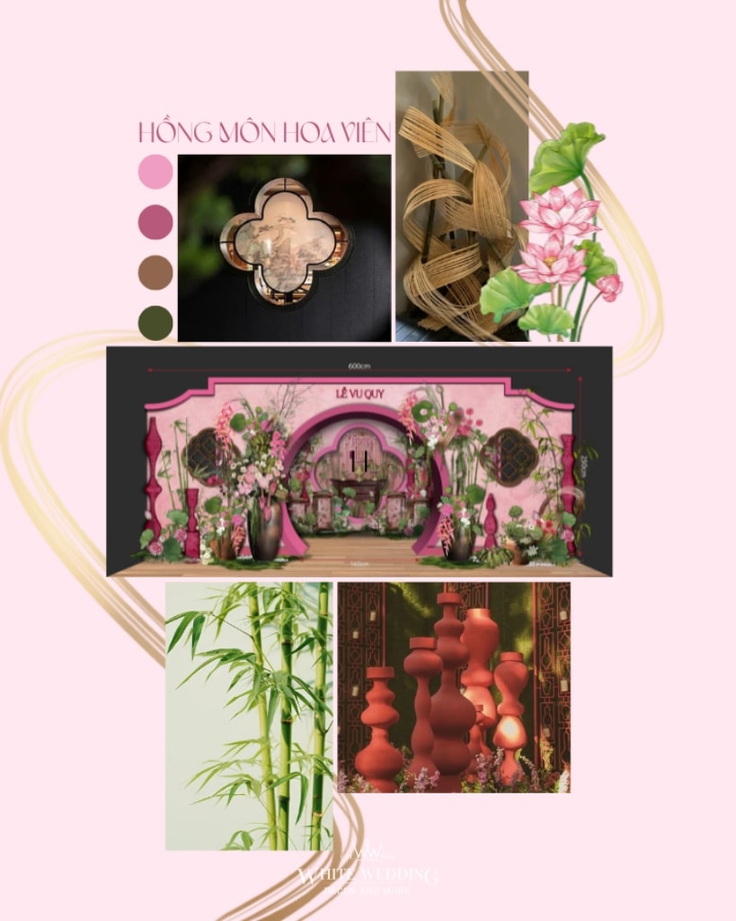 Kế thừa mỹ học phương Đông và mong muốn về một lễ gia tiên rực rỡ sắc hồng của cô dâu Bích Thảo, White Wedding mang làn gió mới vào phong cách Á Đông khi đưa gam hồng raspberry hiện đại vào không gian lễ, biến nhà cộng đồng The Peak thành một hoa viên ngập tràn hương sắc.