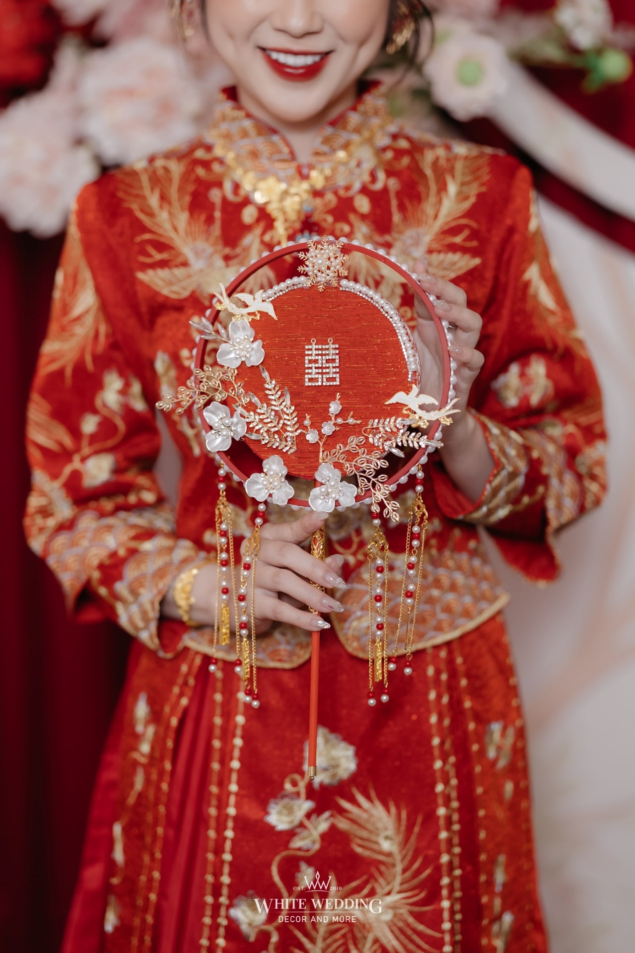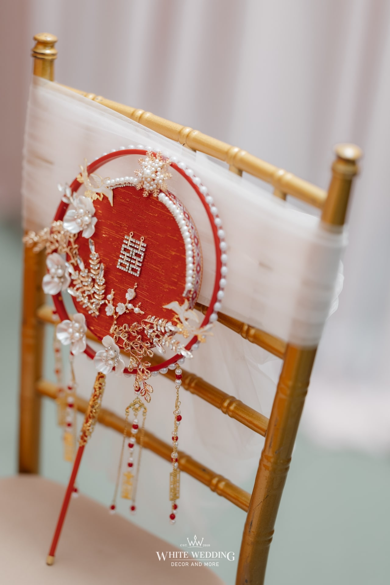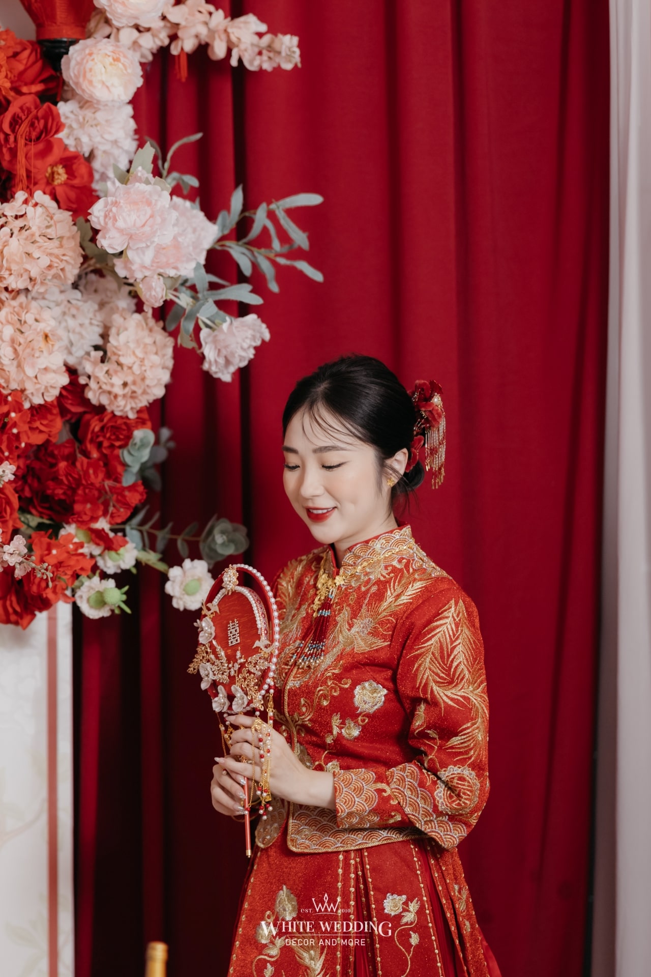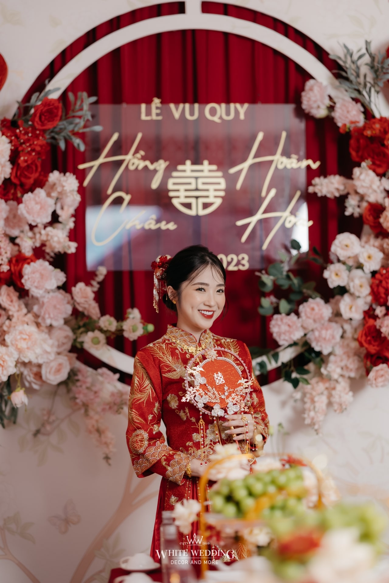 Không gian tiệc mang đậm màu sắc văn hóa người Hoa – nơi sắc đỏ tượng trưng cho may mắn, hỷ sự và viên mãn. Một layout sang trọng, chỉn chu và đầy ý nghĩa được sử dụng phổ biến cho những ngày trọng đại của người Hoa.