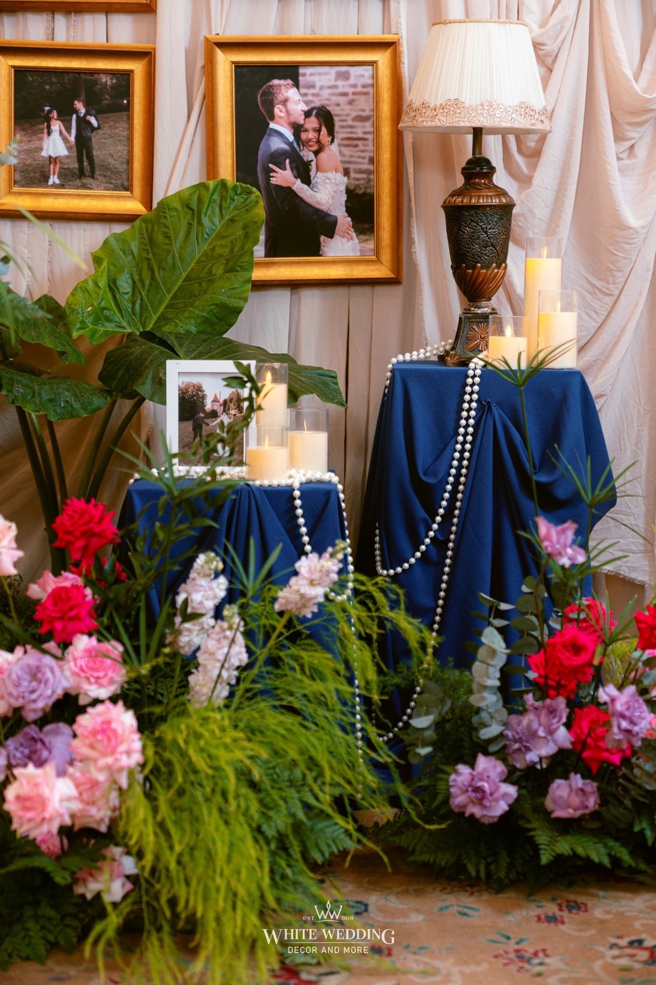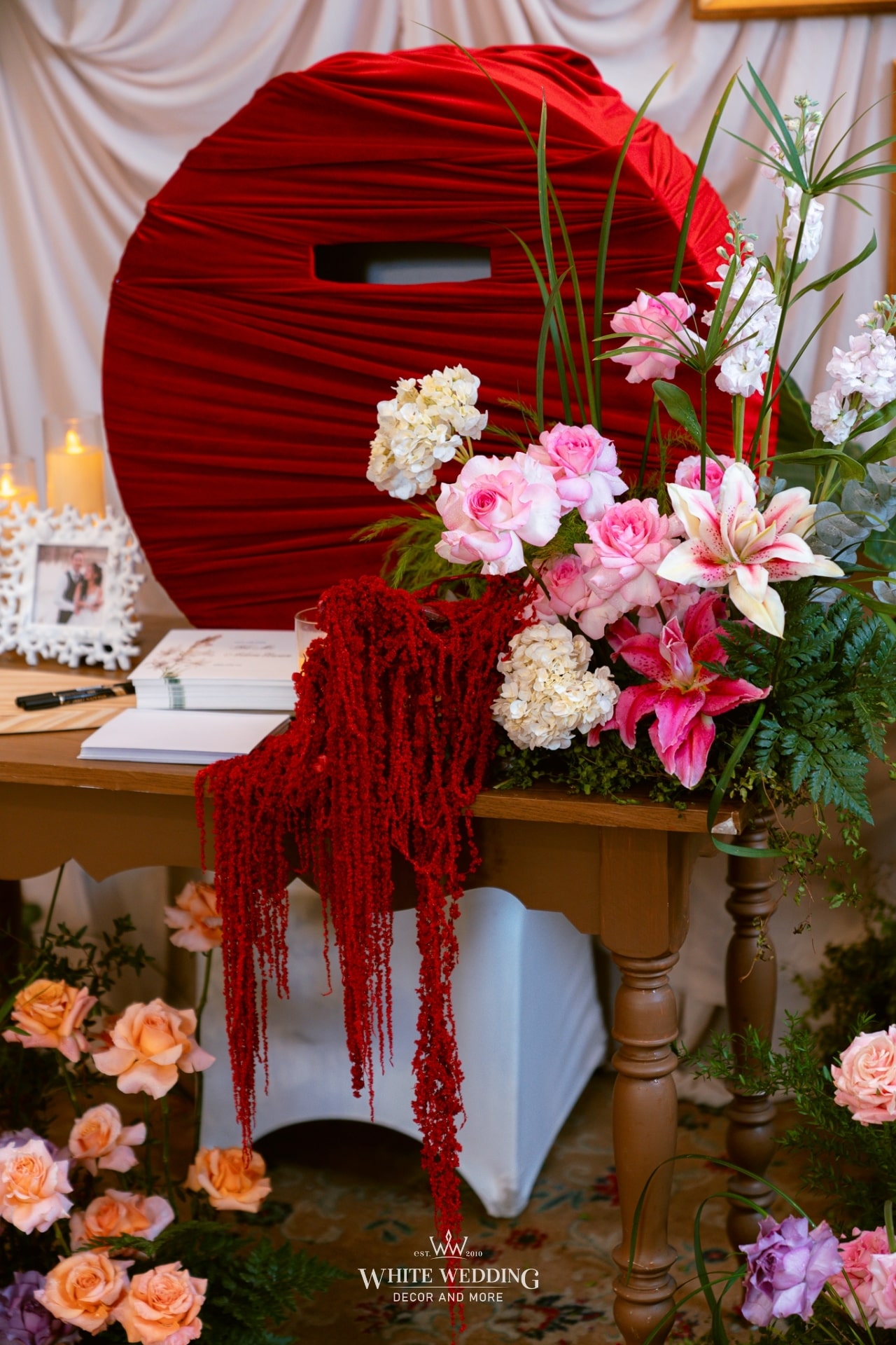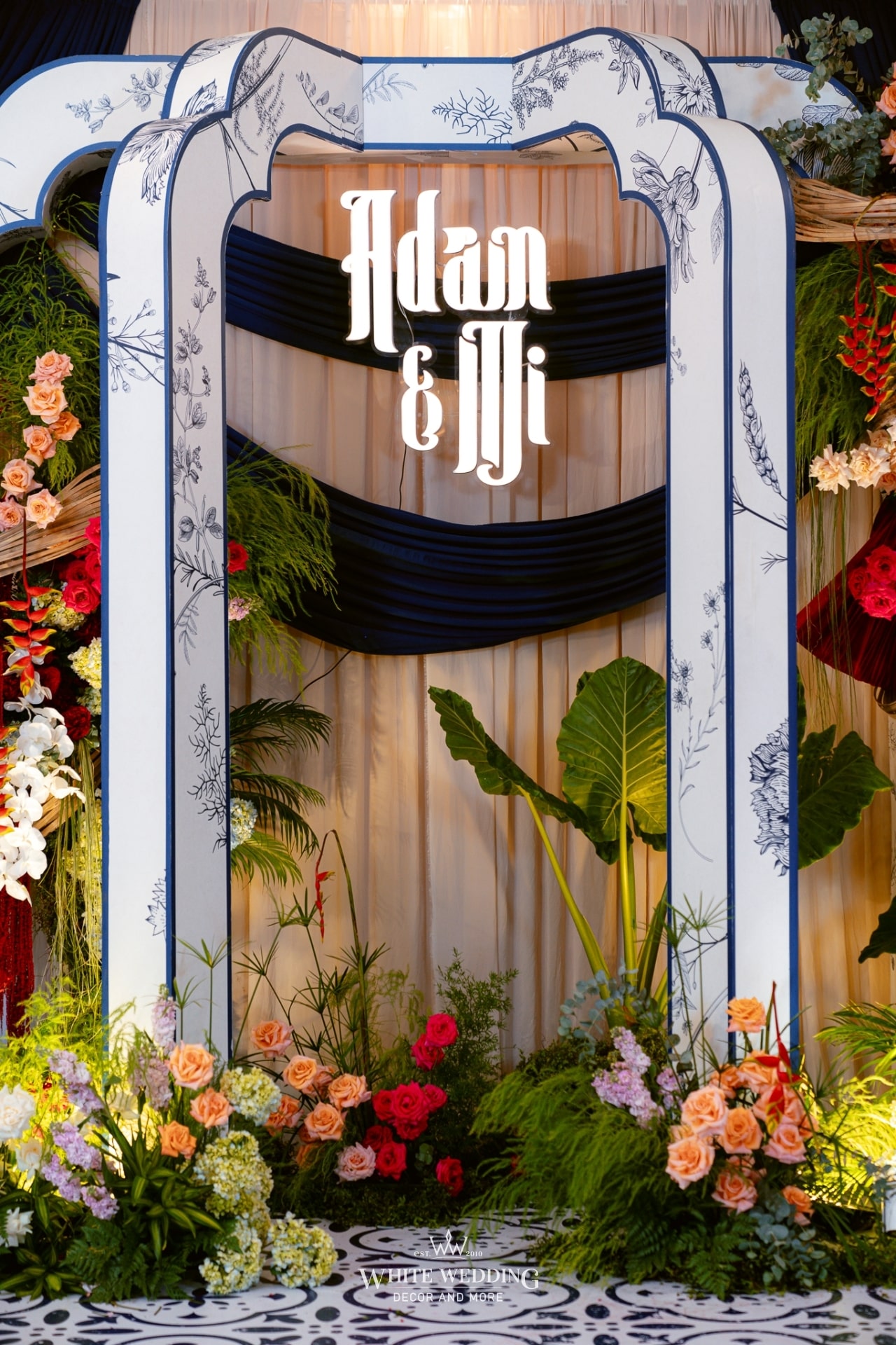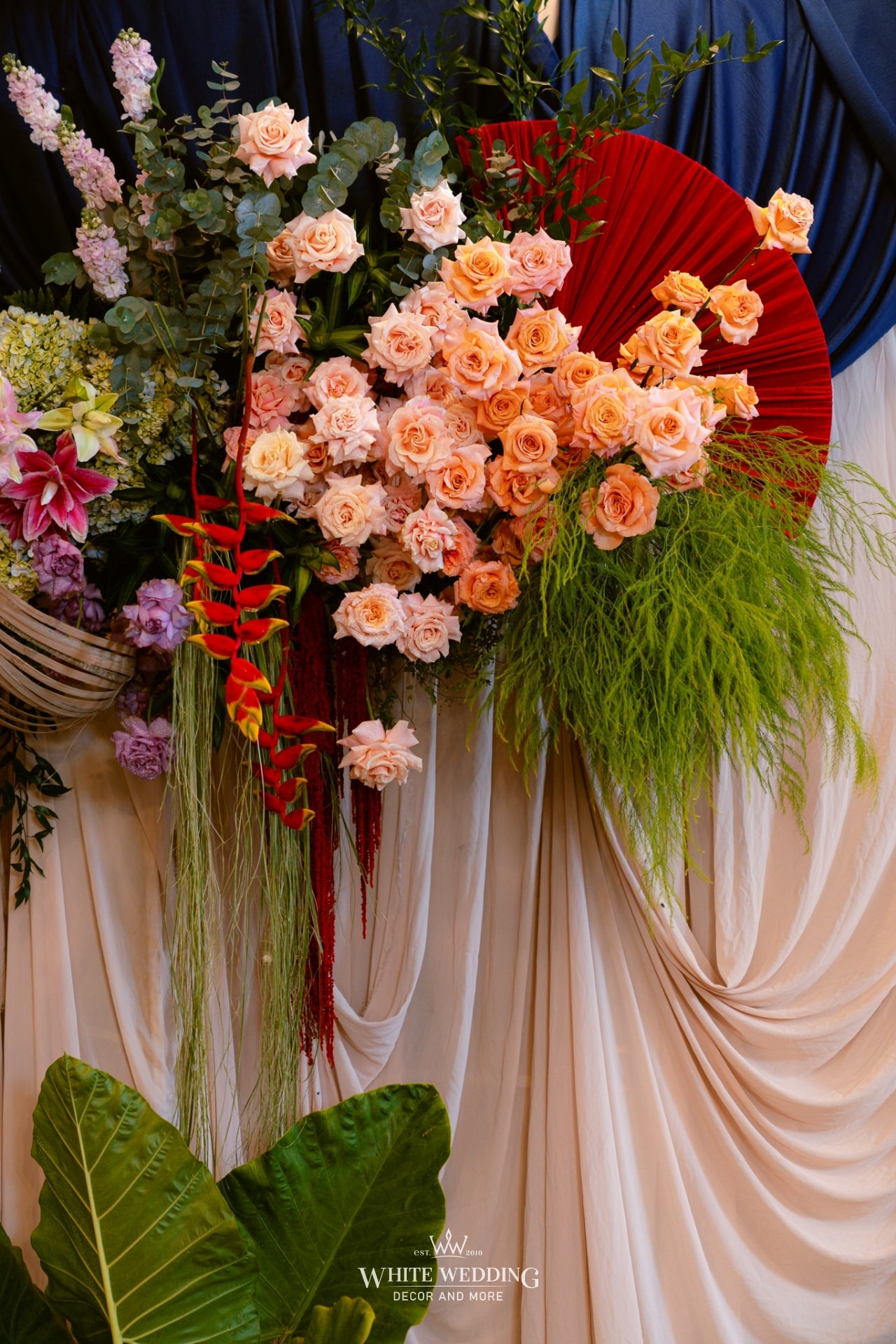Dựa trên mong muốn của & về một không gian cưới mang hơi thở Indochine hiện đại, White Wedding đã phát triển concept với tông màu chủ đạo là xanh navy kết hợp tương phản cùng sắc đỏ velvet.