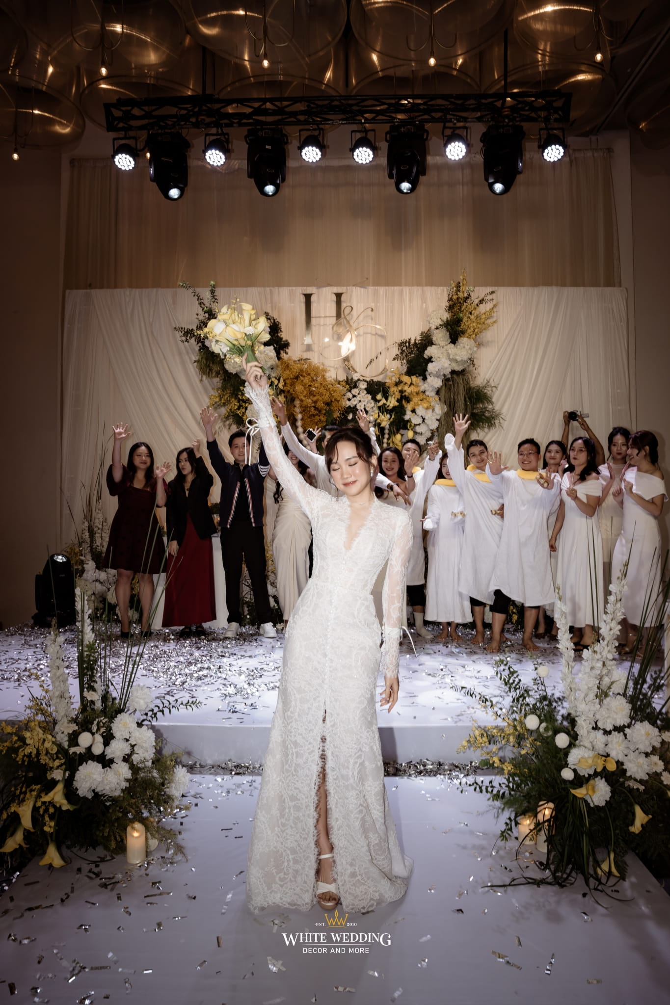 Dưới ánh sáng ấm áp được dàn dựng xuyên suốt, toàn bộ không gian hiện lên như một “lễ đường trong mơ” – nơi mọi ánh nhìn được dẫn dắt về trung tâm, và mọi cảm xúc được giữ lại một cách trọn vẹn.