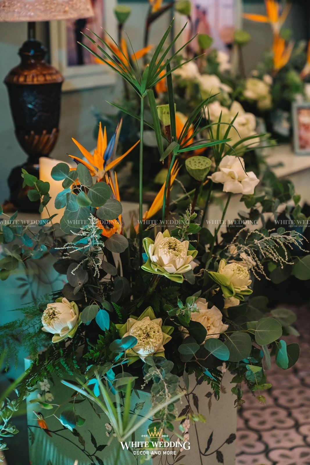 👉 Không chỉ là trang trí, White còn tư vấn tông màu sắc, chất liệu vật trang trí, phong cách nghệ thuật phù hợp với đám cưới của bạn.