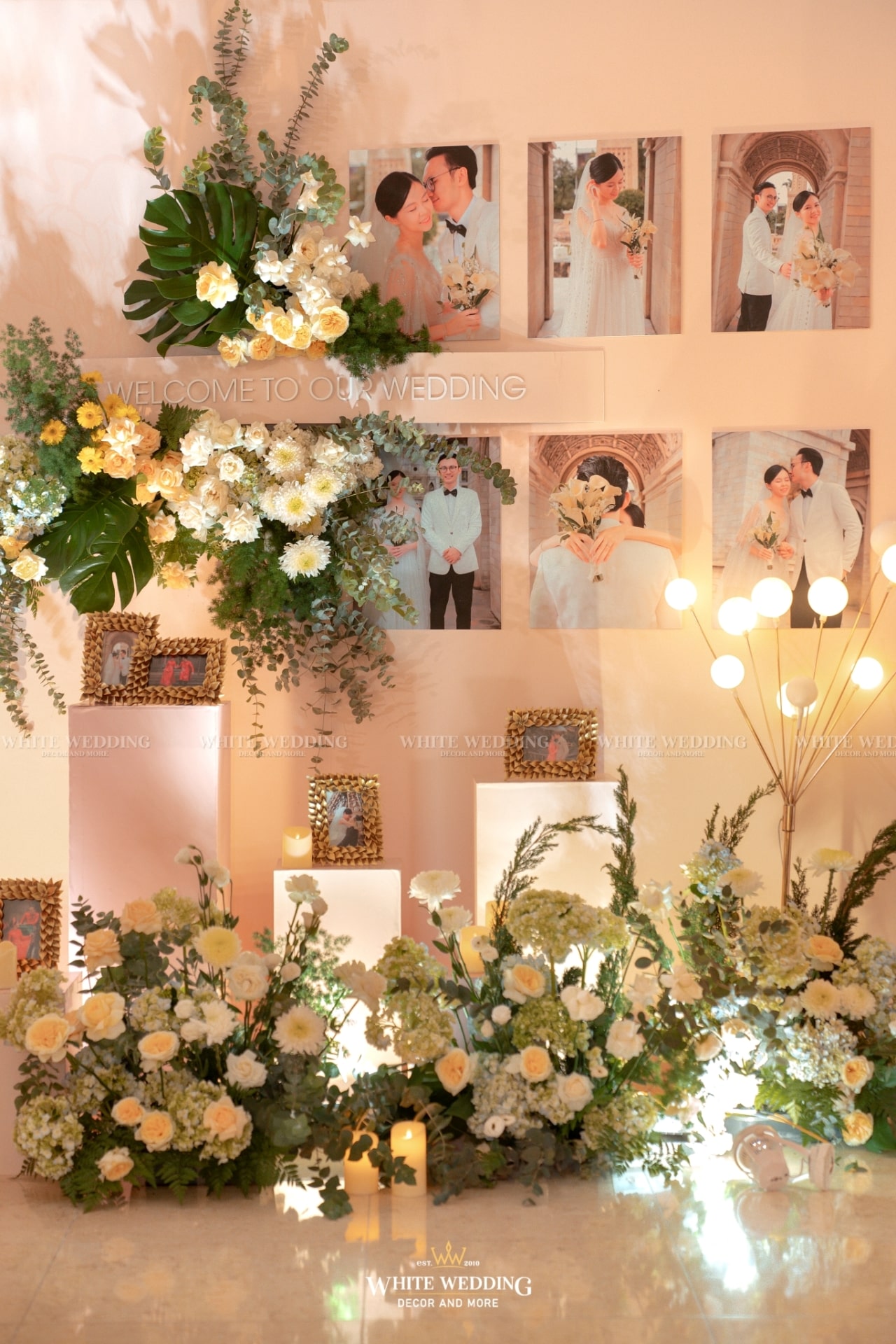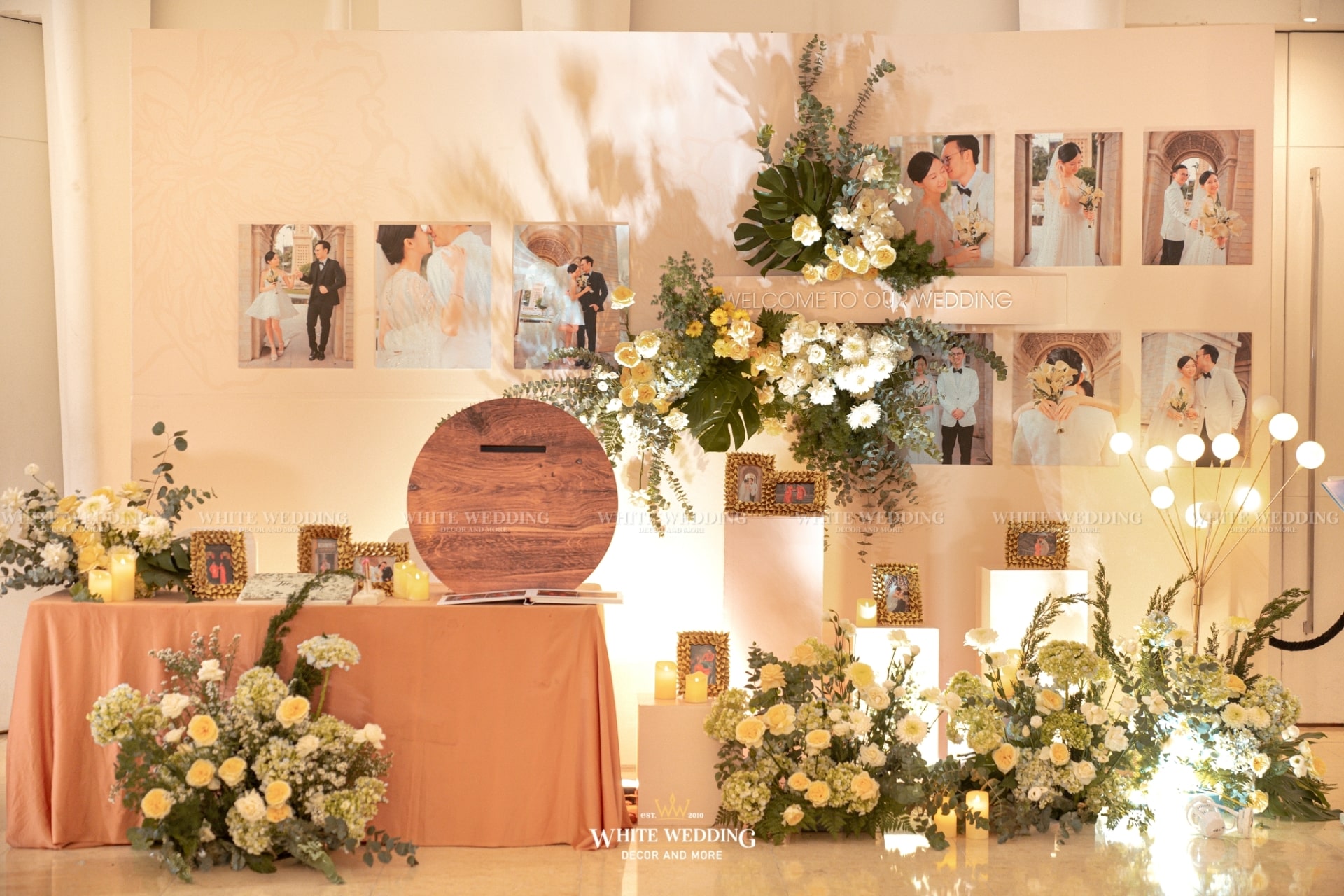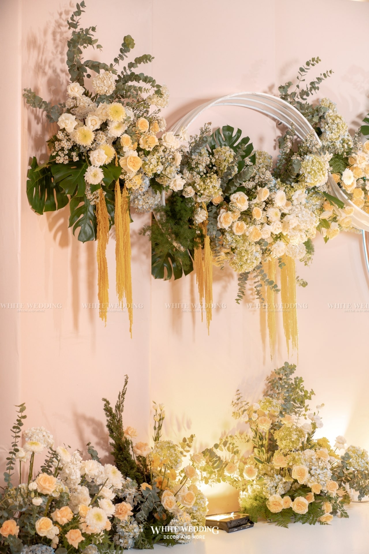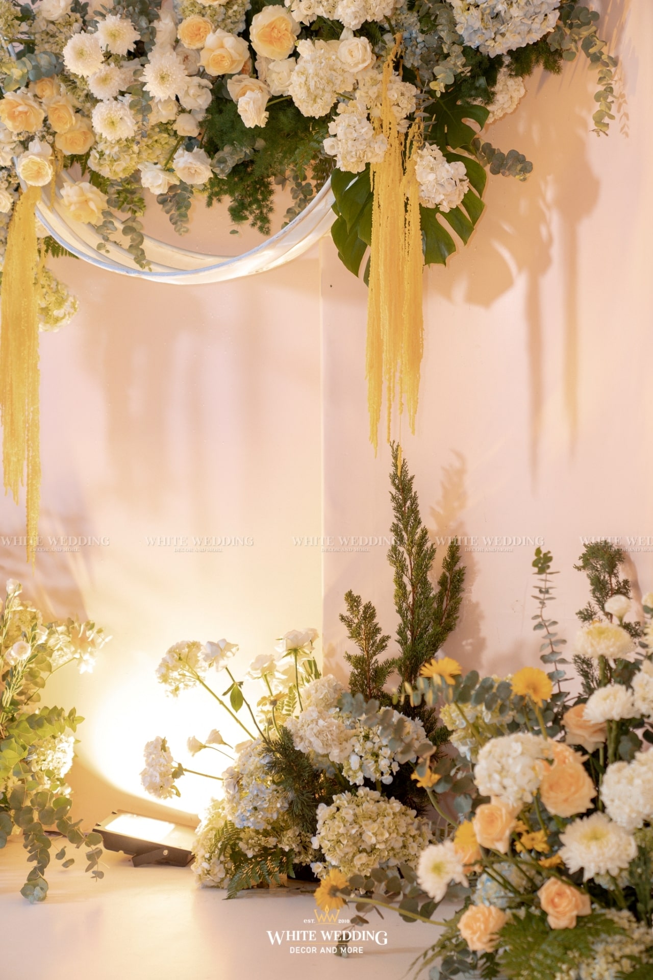 Moonlight mang vẻ đẹp huyền ảo với ánh sáng lung linh và sắc hoa dịu dàng. Khung tròn gỗ tượng trưng cho vầng trăng, kết hợp ánh bạc tạo nên không gian thơ mộng, thanh lịch. Lối đi rực rỡ dẫn lối đôi uyên ương bước vào khoảnh khắc đẹp nhất cuộc đời.