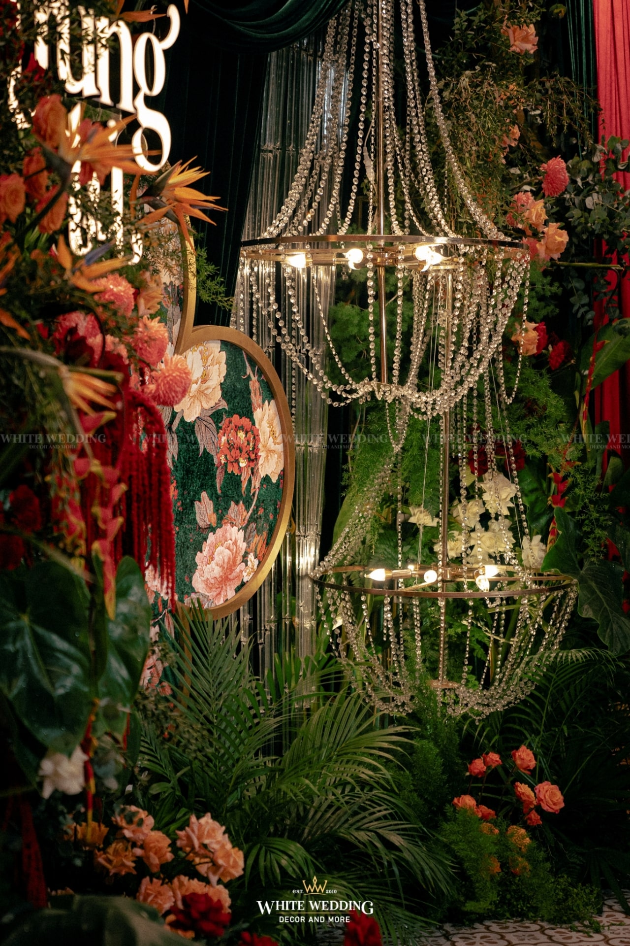 Indochine Crystal mang nét đẹp vương giả Á Đông, không gian Indochine nổi bật với họa tiết hoa cổ điển, sắc đỏ – xanh trầm ấm tương phản và đèn chùm pha lê sang trọng. Tất cả hòa quyện tạo nên một khung cảnh vừa hoài niệm, vừa đầy chất thơ và tinh tế.