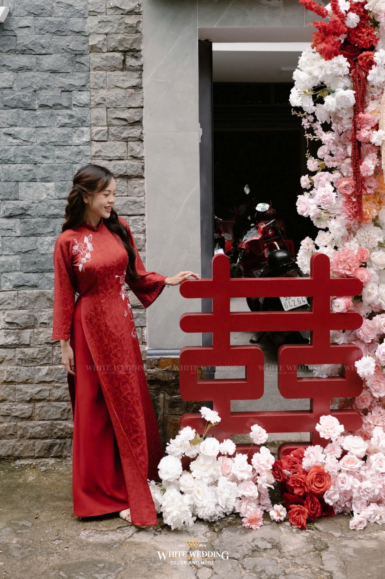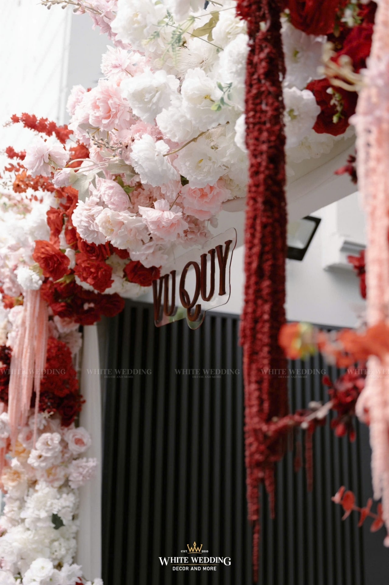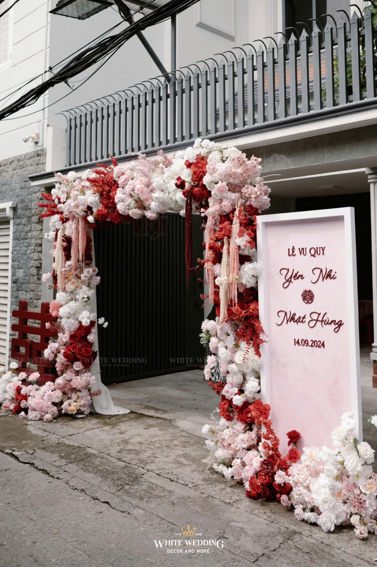 Red Rose – concept vu quy mang đậm sắc thái truyền thống, với điểm nhấn là hoa hồng đỏ rực phối cùng dền rủ buông nhẹ. Từ cổng cưới đến không gian bàn tiệc, mọi chi tiết đều được chăm chút để tôn vinh sự nồng nàn, trang trọng và đầy cảm xúc cho ngày về nhà chồng của Yến Nhi.