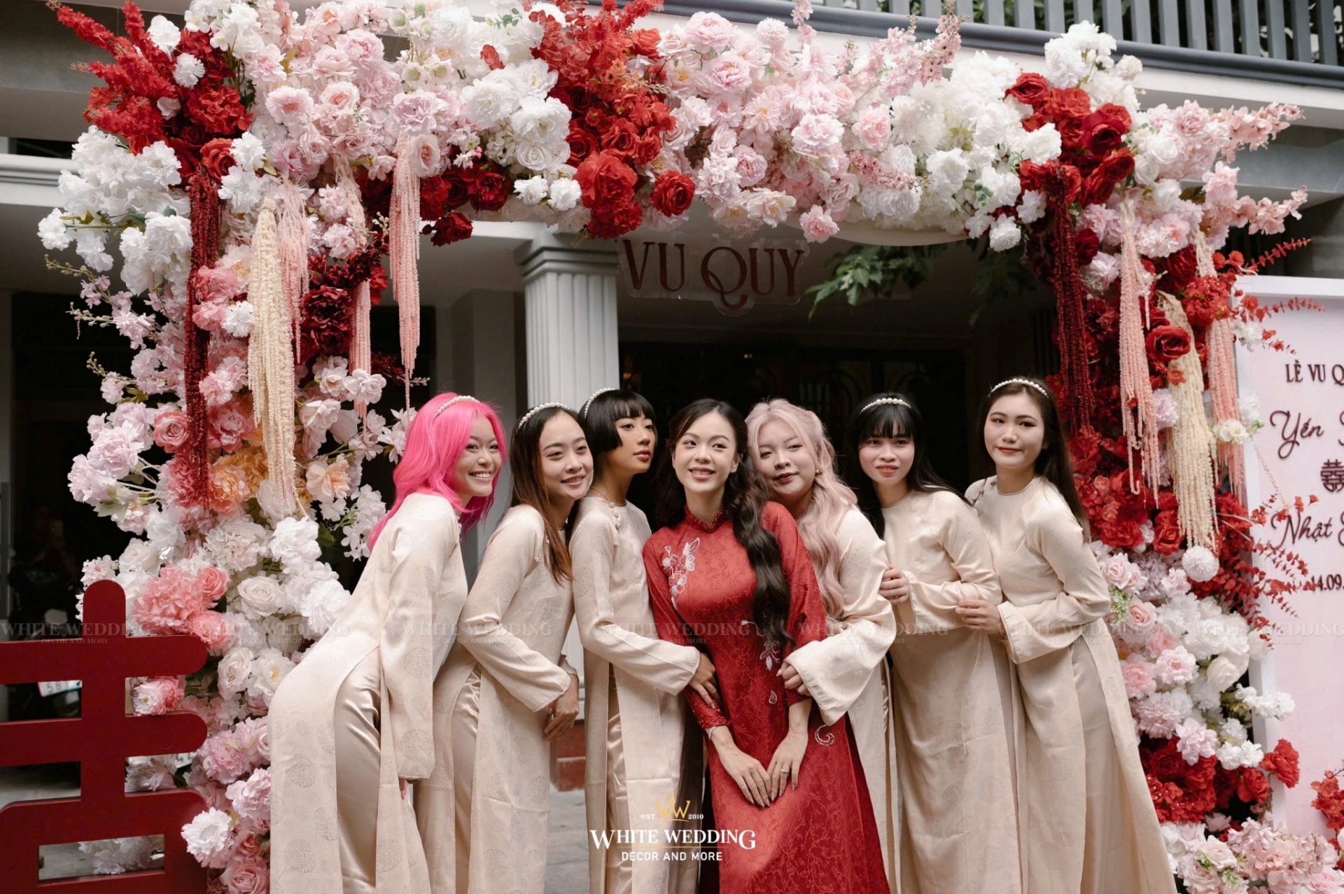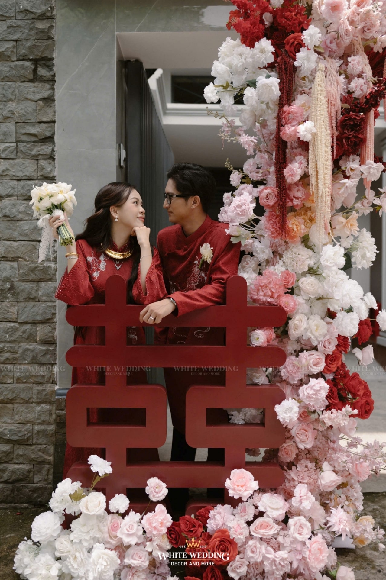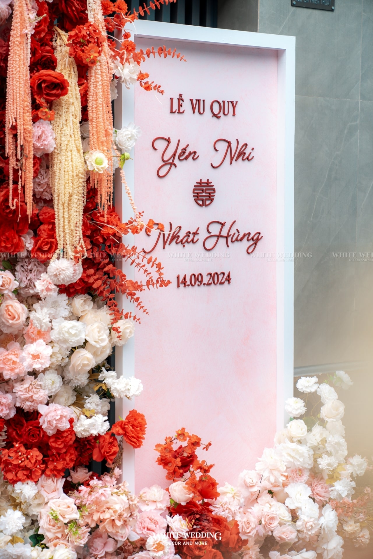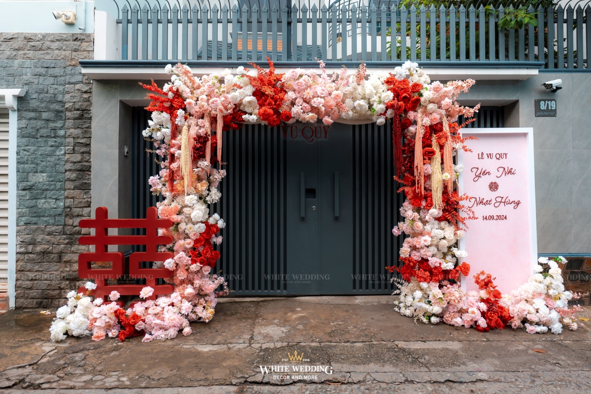 Red Rose – concept vu quy mang đậm sắc thái truyền thống, với điểm nhấn là hoa hồng đỏ rực phối cùng dền rủ buông nhẹ. Từ cổng cưới đến không gian bàn tiệc, mọi chi tiết đều được chăm chút để tôn vinh sự nồng nàn, trang trọng và đầy cảm xúc cho ngày về nhà chồng của Yến Nhi.