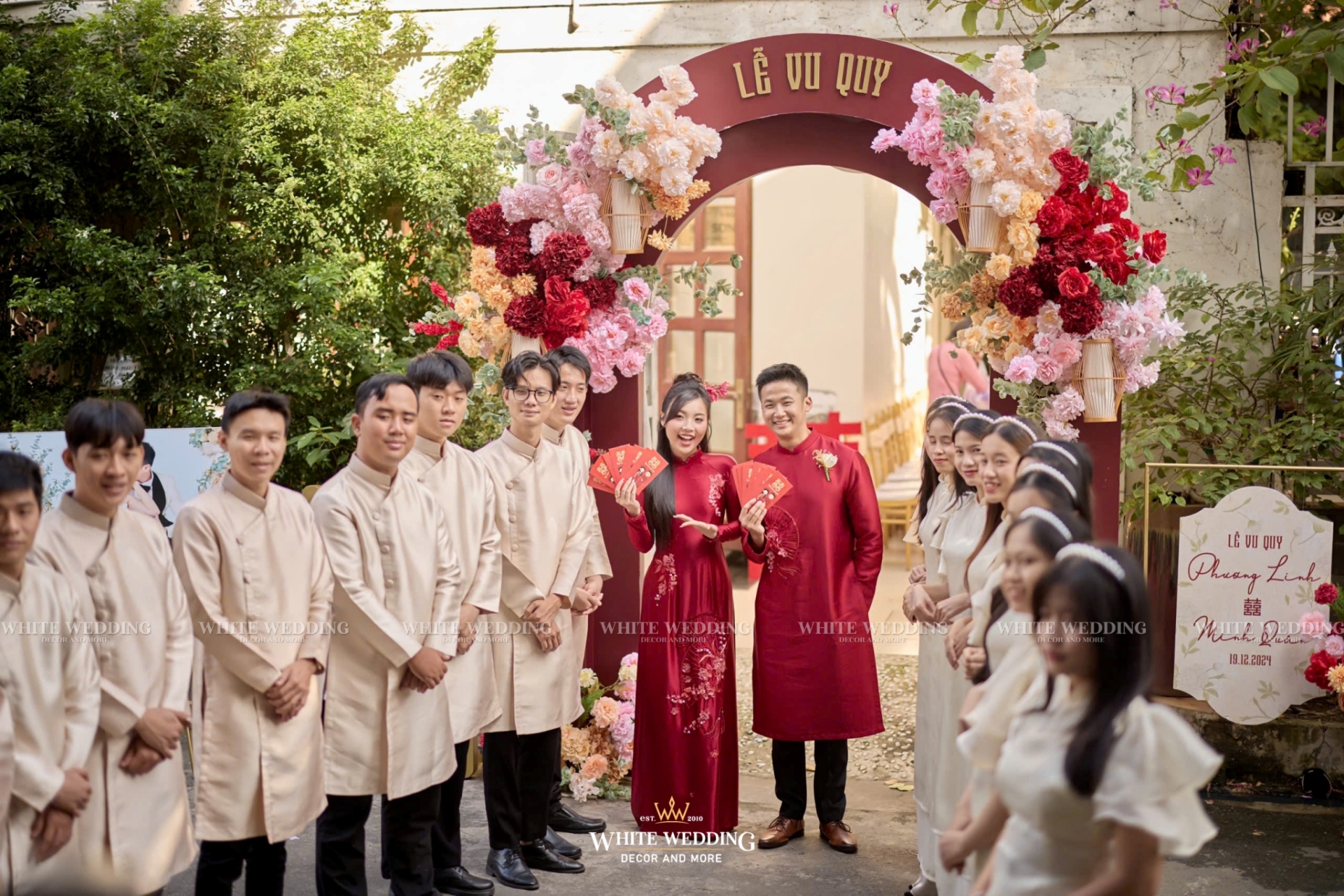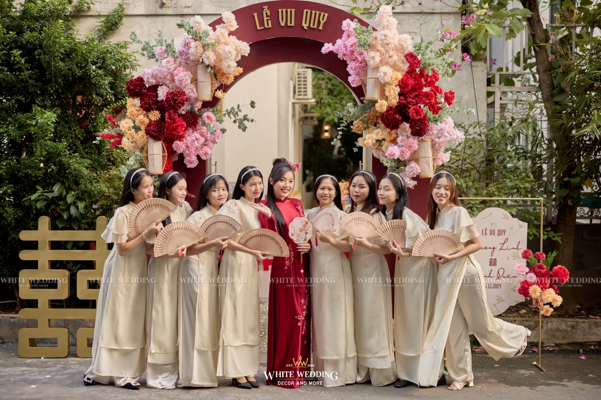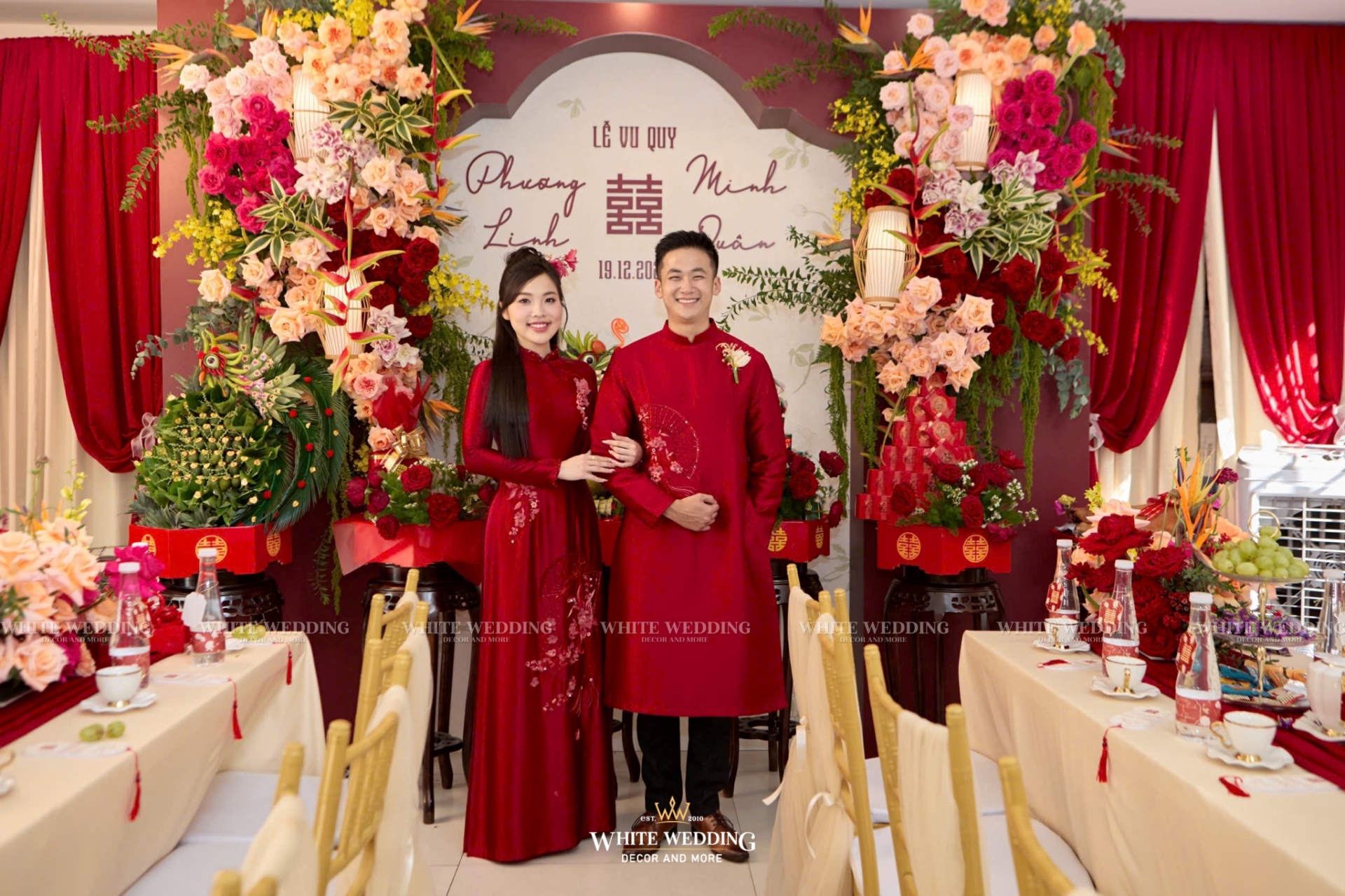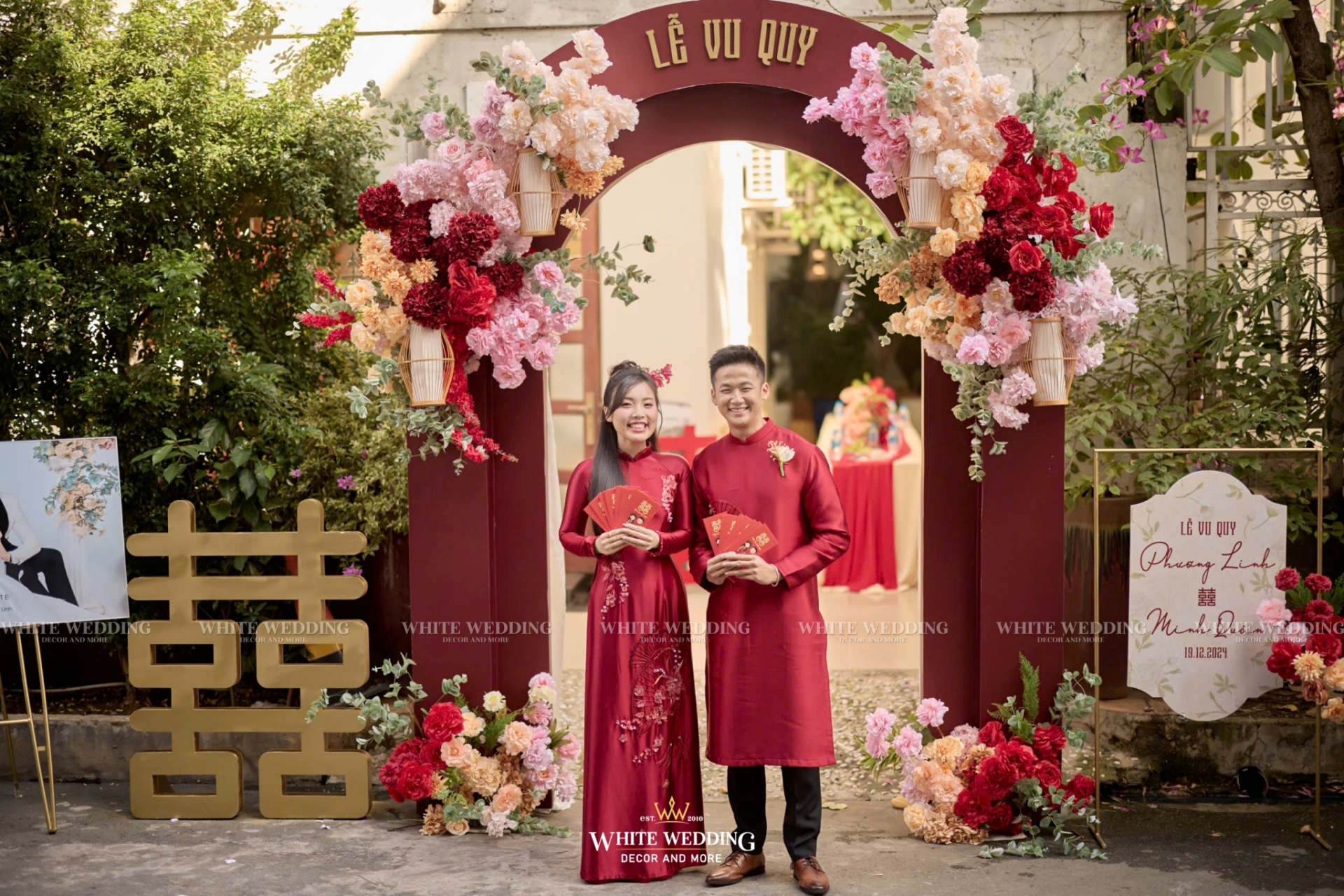 Lễ cưới của Linh & Quân mang đậm dấu ấn cá nhân với concept Son Sắc Giai Nhân – nơi tôn vinh vẻ đẹp của nàng dâu rạng rỡ, kiêu sa như một giai nhân bước ra từ trang sách cổ tích.