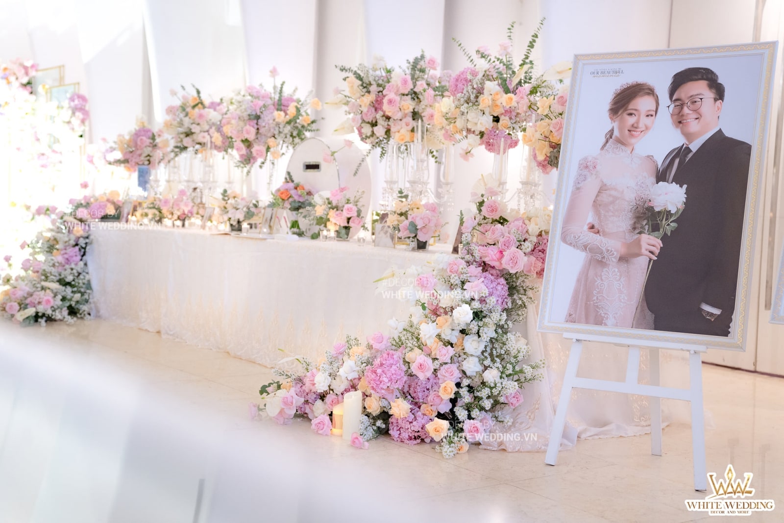 — 👉 Không chỉ là trang trí, White còn tư vấn tông màu sắc, chất liệu vật trang trí, phong cách nghệ thuật phù hợp với đám cưới của bạn.