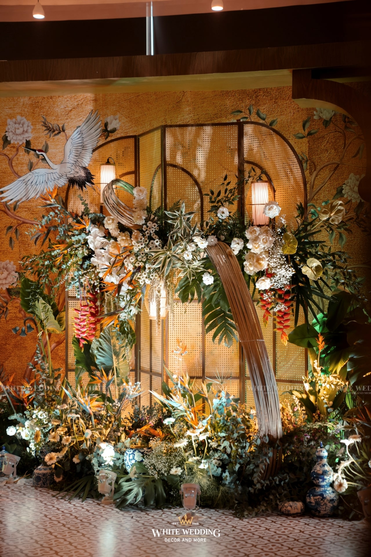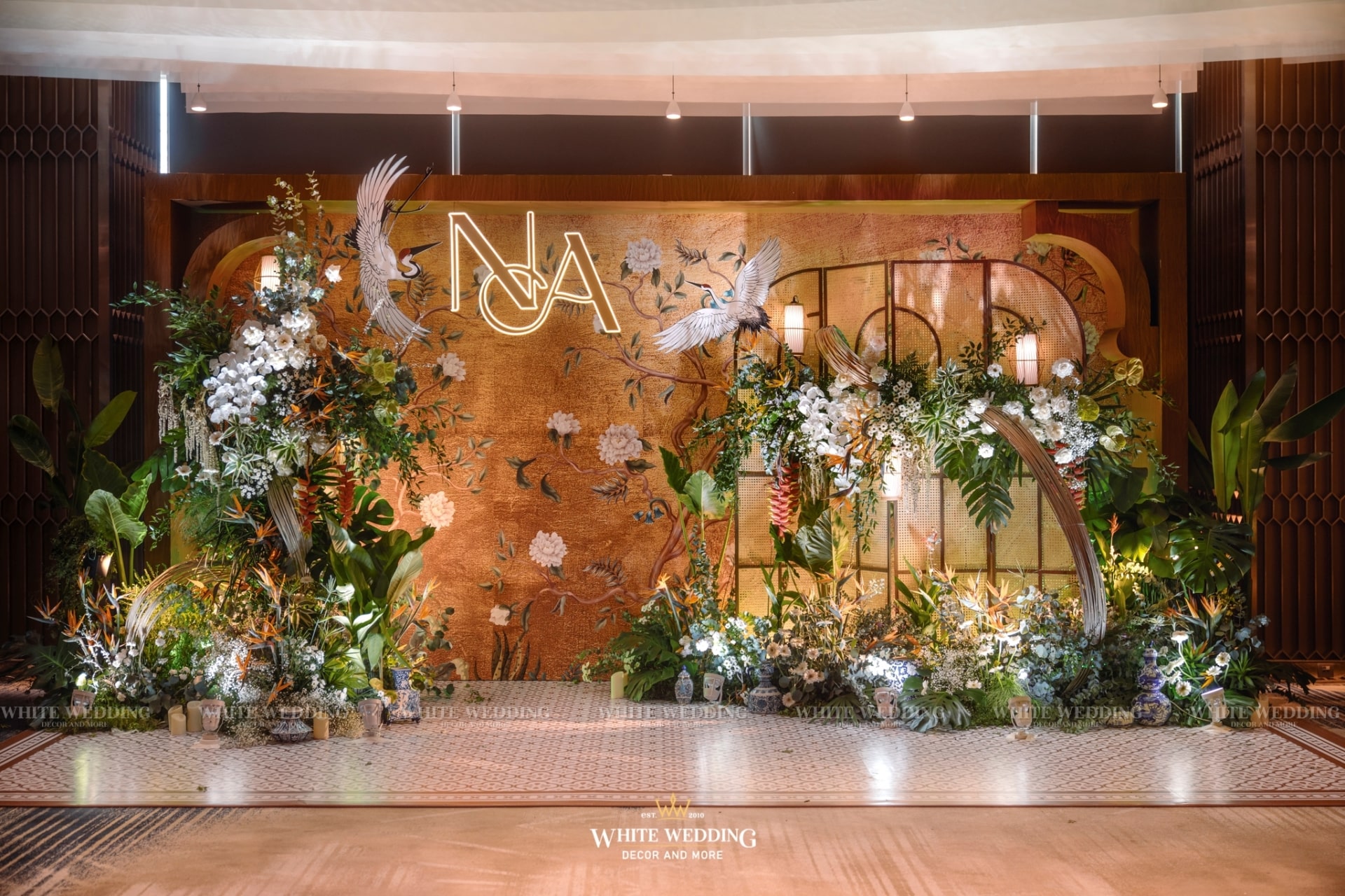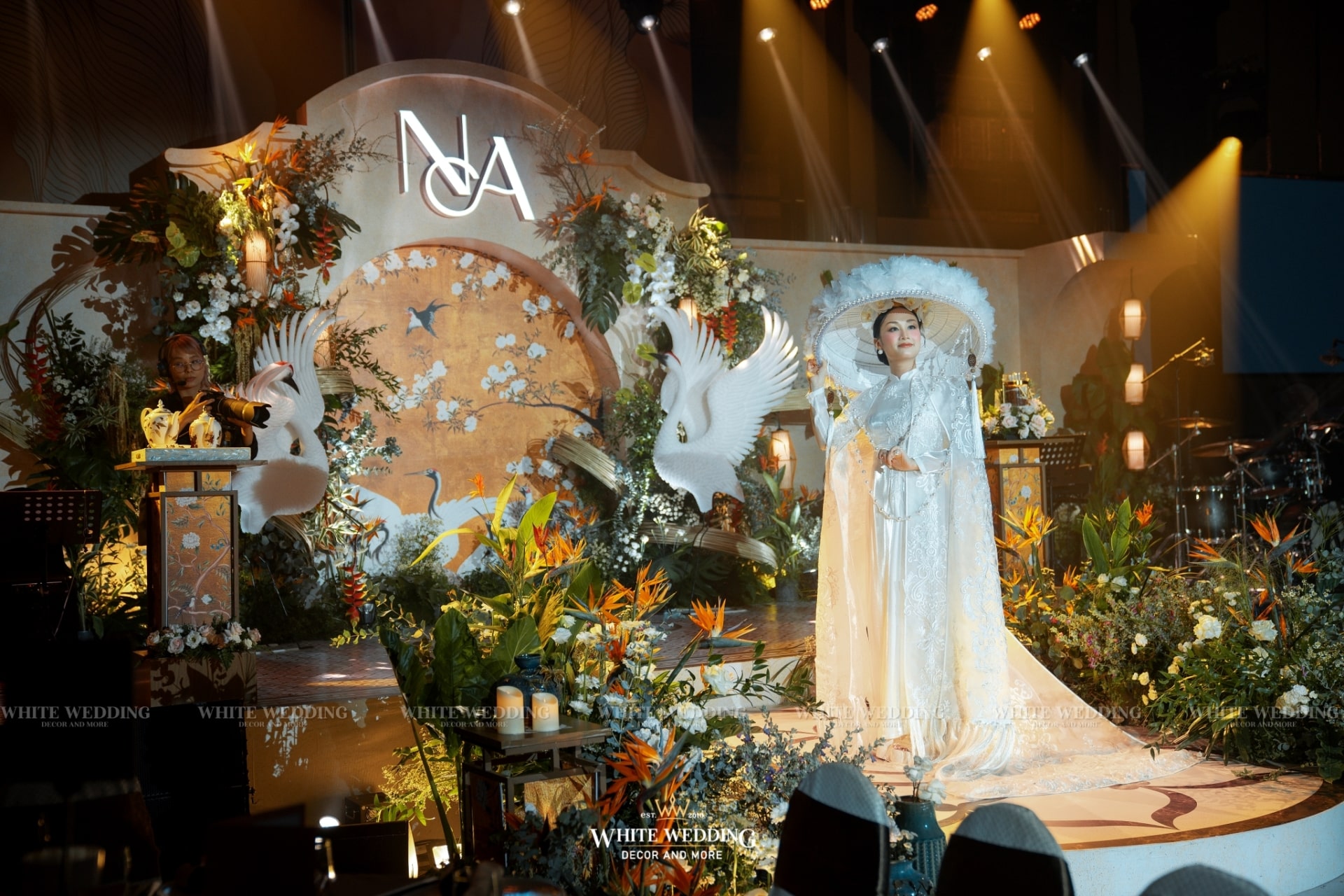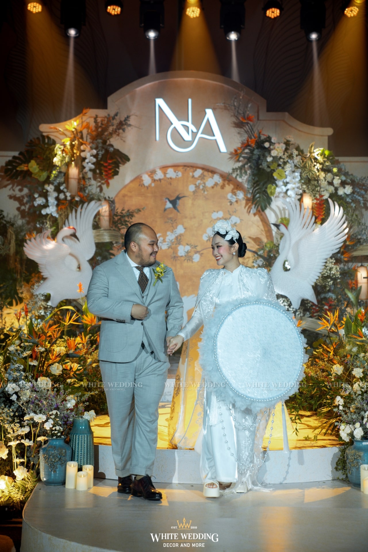 Tiệc cưới của Phương Anh và Trí Nhân đã diễn ra trong một ngày thật đẹp tại khách sạn InterContinental Saigon – Không gian sang trọng đẳng cấp bậc nhất TP.HCM. Cả 2 mong muốn buổi lễ mang phong cách Á Đông lộng lẫy và lạ mắt, vì vậy White Wedding đã tạo dựng một concept Indochine vương giả quý tộc với gam màu vàng là chủ đạo – màu sắc yêu thích của cô dâu kết hợp với biểu tượng Sếu đầu đỏ. Hãy cùng xem những hình ảnh buổi tiệc của cặp đôi với sự góp mặt của dàn sao nổi tiếng cùng nhiều tiết mục đặc sắc nhé!