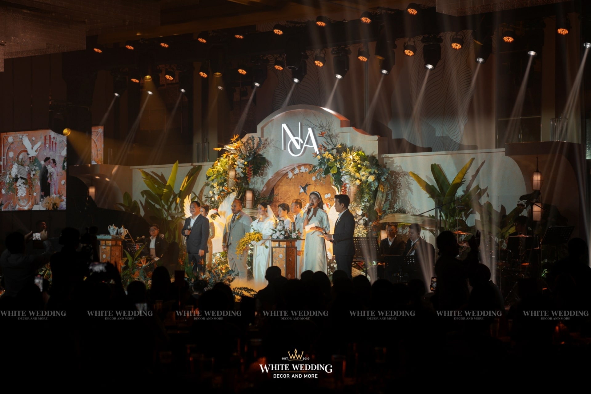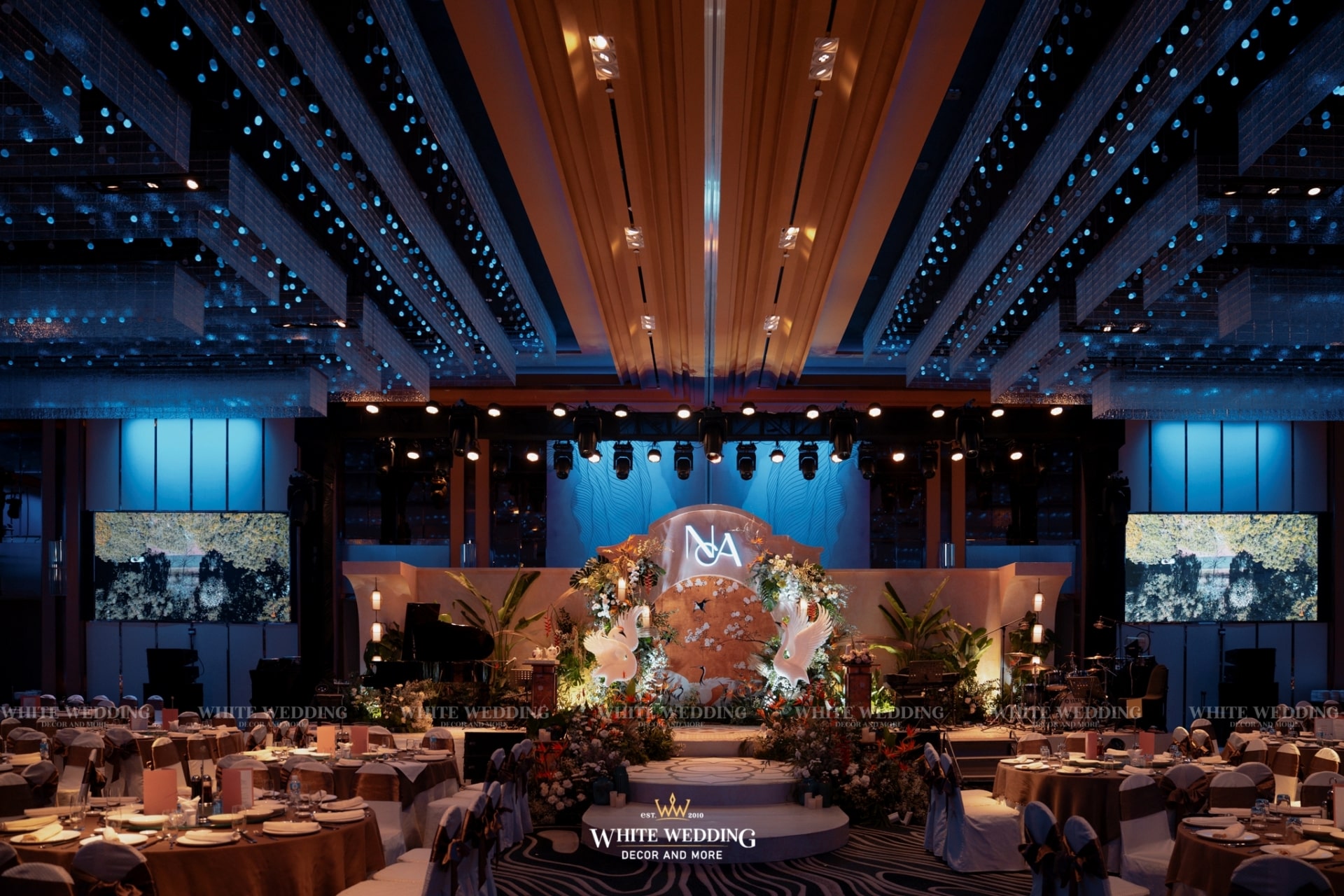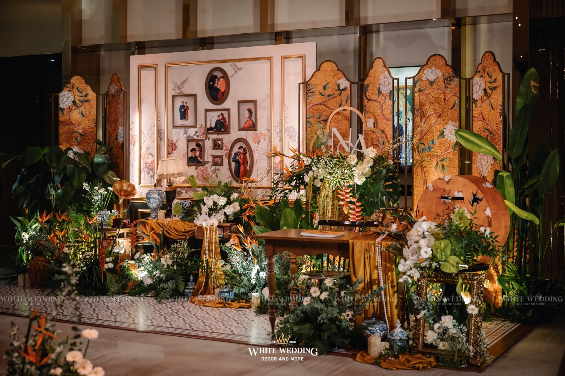 Tiệc cưới của Phương Anh và Trí Nhân đã diễn ra trong một ngày thật đẹp tại khách sạn InterContinental Saigon – Không gian sang trọng đẳng cấp bậc nhất TP.HCM. Cả 2 mong muốn buổi lễ mang phong cách Á Đông lộng lẫy và lạ mắt, vì vậy White Wedding đã tạo dựng một concept Indochine vương giả quý tộc với gam màu vàng là chủ đạo – màu sắc yêu thích của cô dâu kết hợp với biểu tượng Sếu đầu đỏ. Hãy cùng xem những hình ảnh buổi tiệc của cặp đôi với sự góp mặt của dàn sao nổi tiếng cùng nhiều tiết mục đặc sắc nhé!