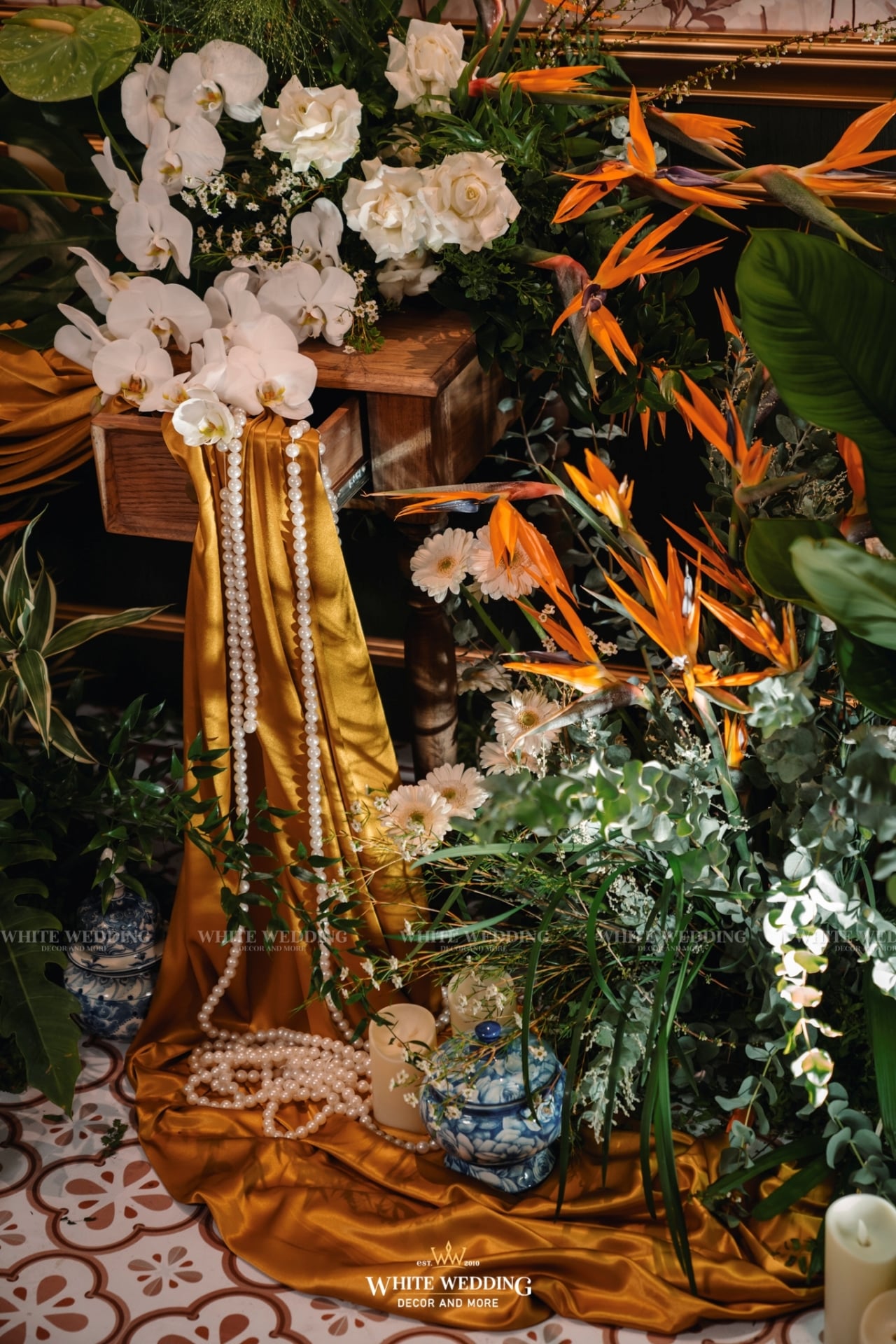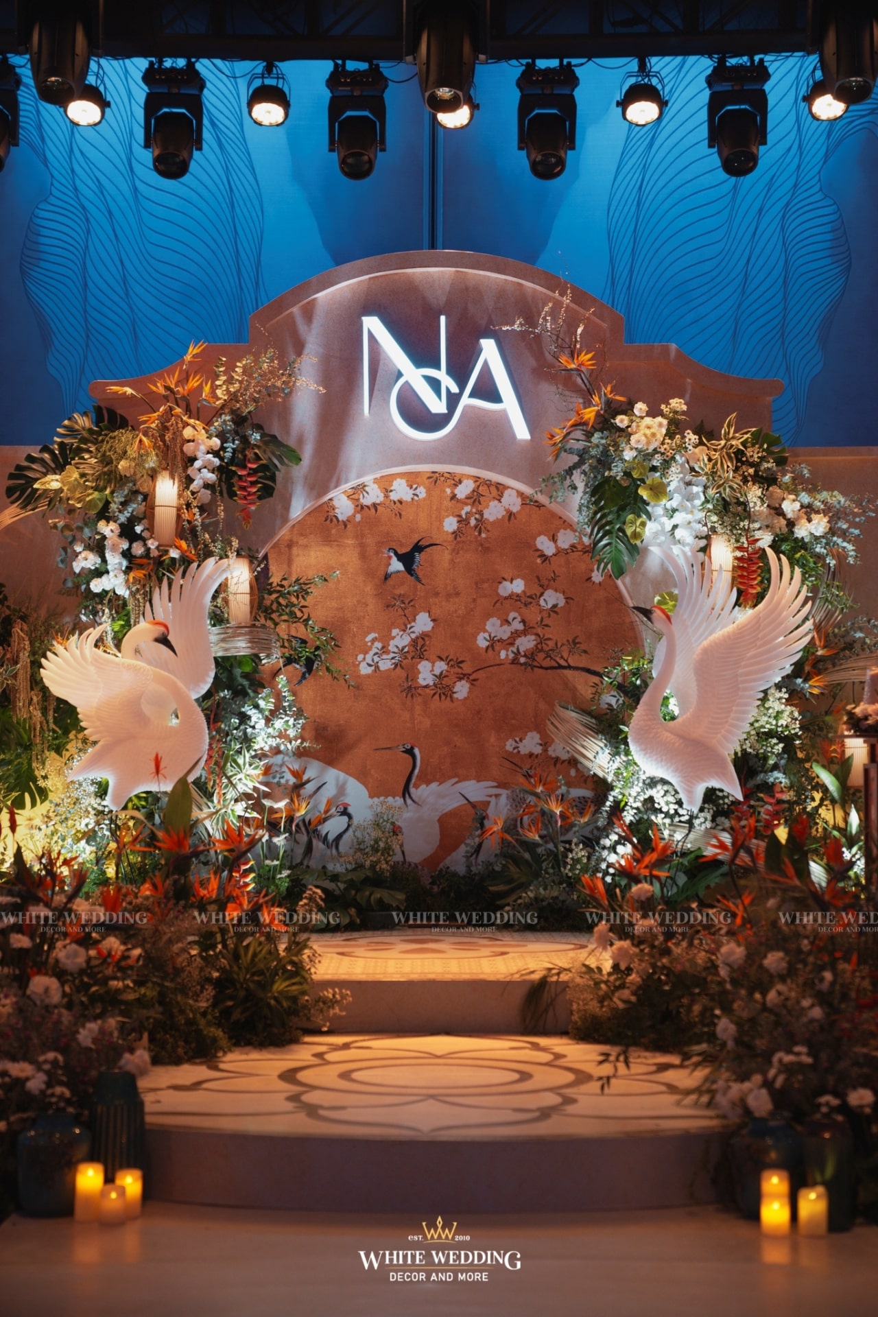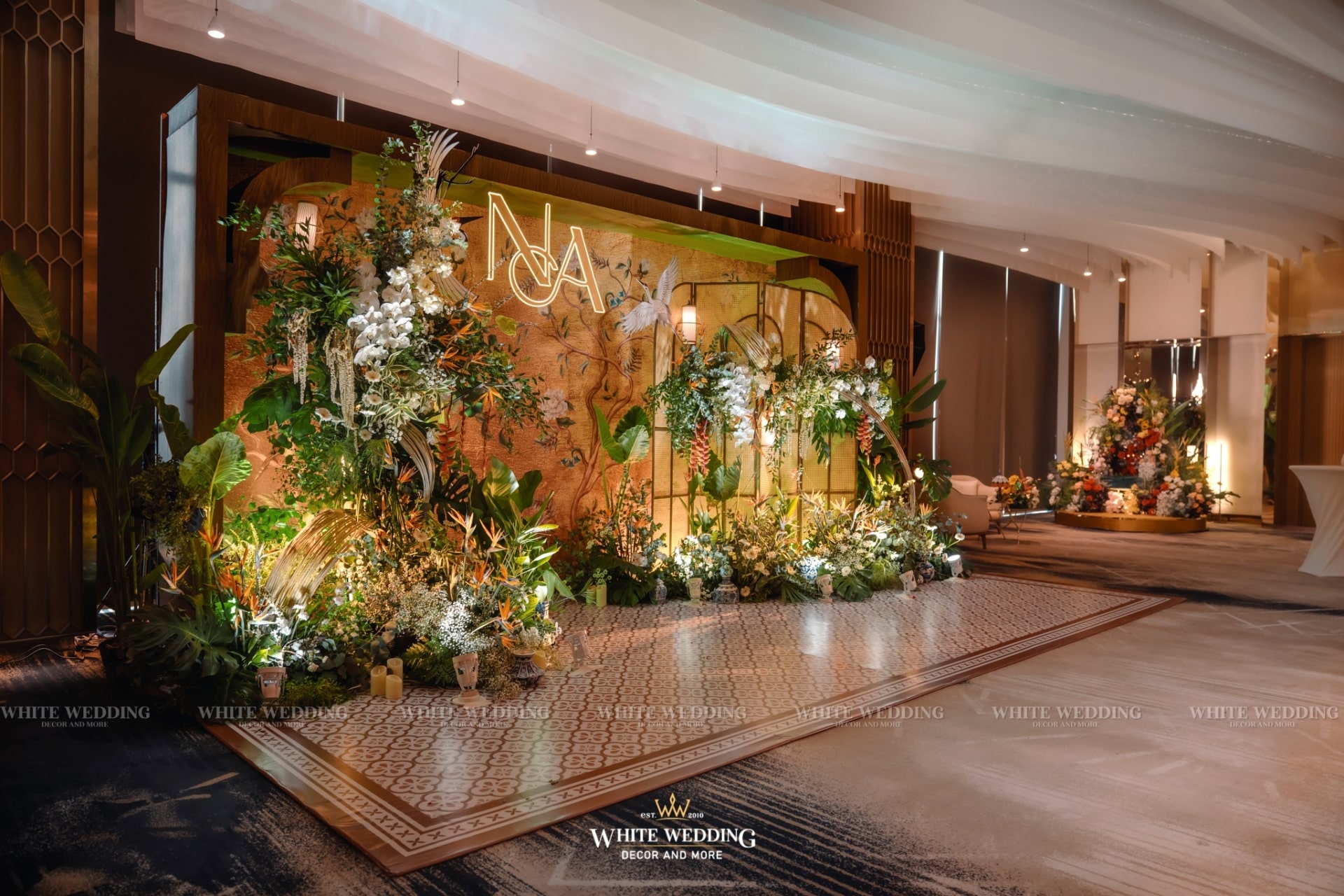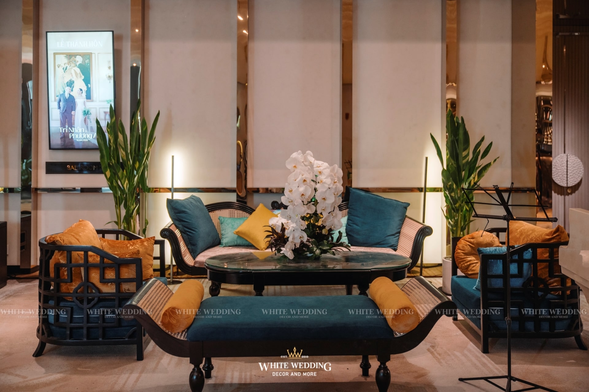 Tiệc cưới của Phương Anh và Trí Nhân đã diễn ra trong một ngày thật đẹp tại khách sạn InterContinental Saigon – Không gian sang trọng đẳng cấp bậc nhất TP.HCM. Cả 2 mong muốn buổi lễ mang phong cách Á Đông lộng lẫy và lạ mắt, vì vậy White Wedding đã tạo dựng một concept Indochine vương giả quý tộc với gam màu vàng là chủ đạo – màu sắc yêu thích của cô dâu kết hợp với biểu tượng Sếu đầu đỏ. Hãy cùng xem những hình ảnh buổi tiệc của cặp đôi với sự góp mặt của dàn sao nổi tiếng cùng nhiều tiết mục đặc sắc nhé!
