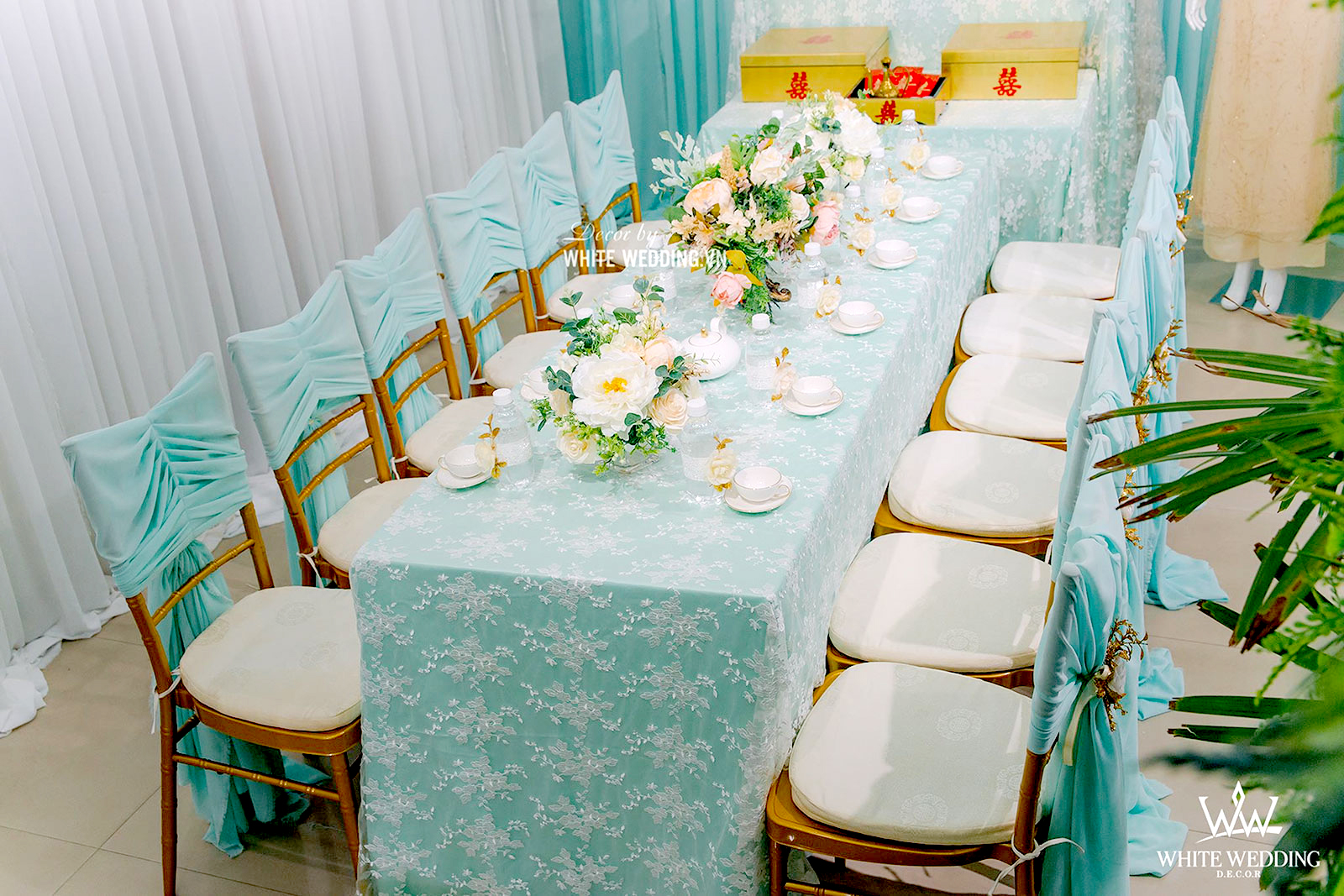 Xanh Mint một trong những màu sắc tươi mát, chưa bao giờ lỗi thời và rất được lòng Cô Dâu – Chú Rể đón nhận trong ngày trọng đại của mình. Sắc màu nhẹ nhàng không mới mẻ cũng như phá cách nhưng vẫn thể hiện sự sang trọng đầy tinh tế của buổi lễ.