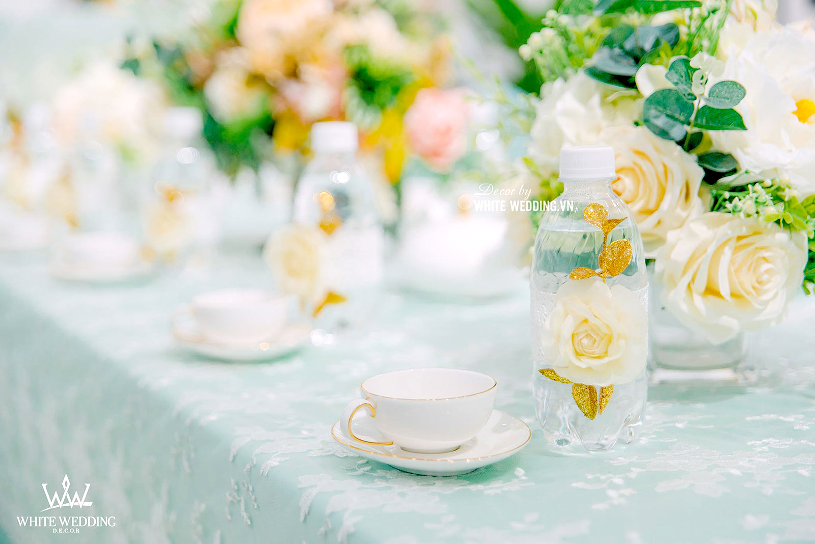• Tặng 12 chai nước suối thiết kế đính hoa lụa