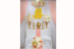 Backdrop gia tiên đơn giản với phông voan trắng điểm nhấn voan màu và chử hỷ. Bàn hai họ trang trọng phủ voan hoa hồng mang đến không gian ngày cưới sang trọng. Lưu ý: • White Wedding sẽ tới nhà quý khách khảo sát trước khi trang trí set up. Thông thường set up hoàn thiện trước ngày lễ 1 ngày • Miễn phí phí vận chuyển và lắp đặt trang trí nhà trong vòng bán kính 5km (tính từ công ty)