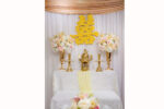 TIFFANY MYSTERY - LẤY CẢM HỨNG TỪ SỰ TỐI GIẢN NHƯNG TINH TẾ Trang trí lễ gia tiên - Được lấy cảm hứng từ sắc đỏ truyền thống, chấm phá thêm sắc cam rực rỡ, sử dụng thêm sắc hồng nhẹ nhàng tạo nên một không gian lễ gia tiên tươi mới, ngọt ngào. Backdrop được sử dụng tone vàng đồng sang trọng với những đường cắt tinh tế làm tôn lên trọn vẹn sắc màu của chữ hỷ và các line hoa. Lưu ý: • White Wedding sẽ tới nhà quý khách khảo sát trước khi trang trí set up. Thông thường set up hoàn thiện trước ngày lễ 1 ngày • Miễn phí phí vận chuyển và lắp đặt trang trí nhà trong vòng bán kính 5km (tính từ công ty)