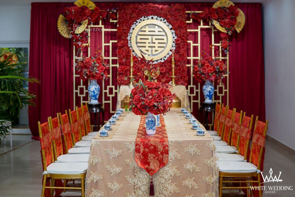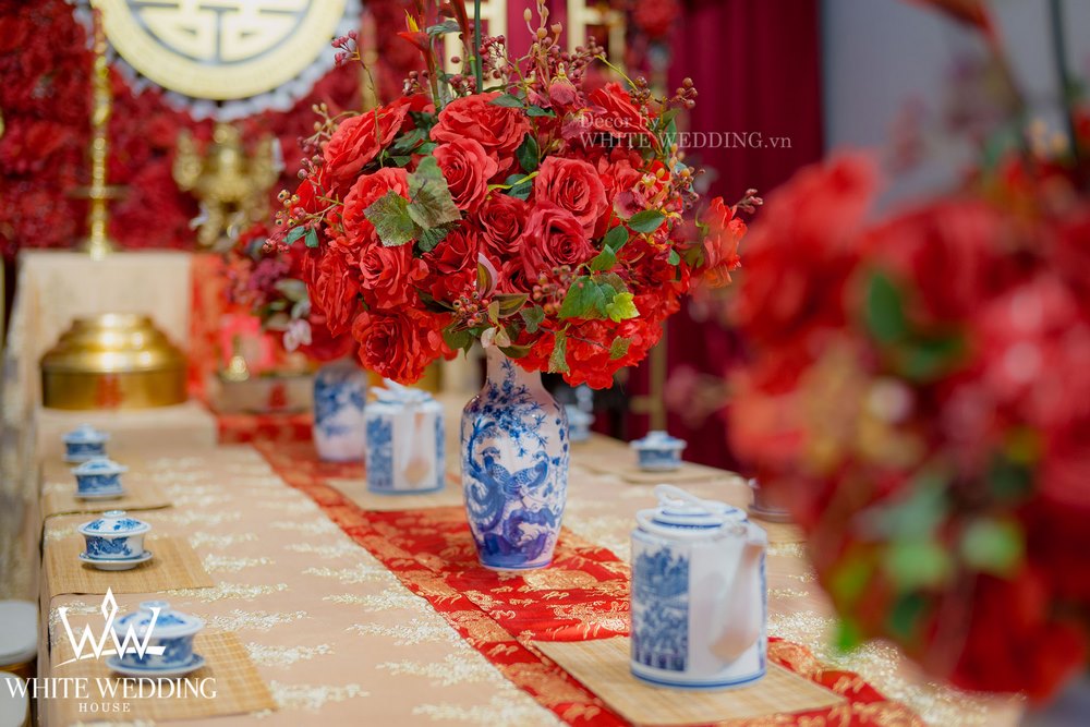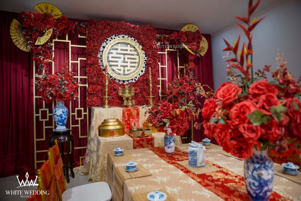 Chắc chắn một lễ cưới với tone màu chủ đạo là đỏ sẽ tràn ngập những hình trái tim và những đoá hồng rực rỡ.