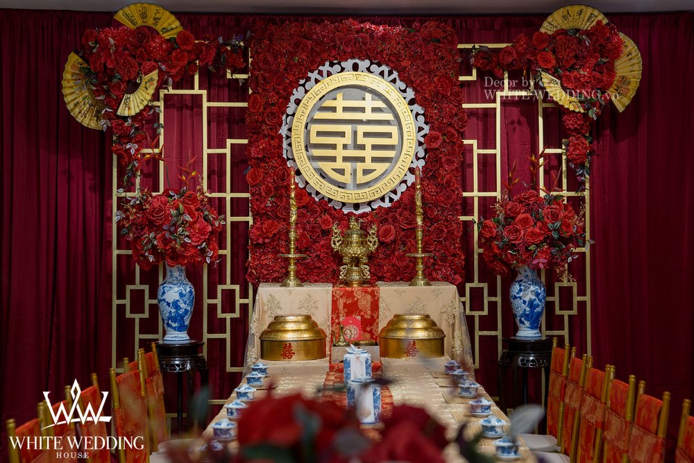 Sự kết hợp tinh tế giữa sắc đỏ lãng mạn cùng với màu gold và những hoạ tiết trang trí đi kèm để tạo nên một phong cách trang trí cổ điển và đầy quyến rũ – sang trọng đó là từ khi nói đến gói trang trí gia tiên CLASSIC