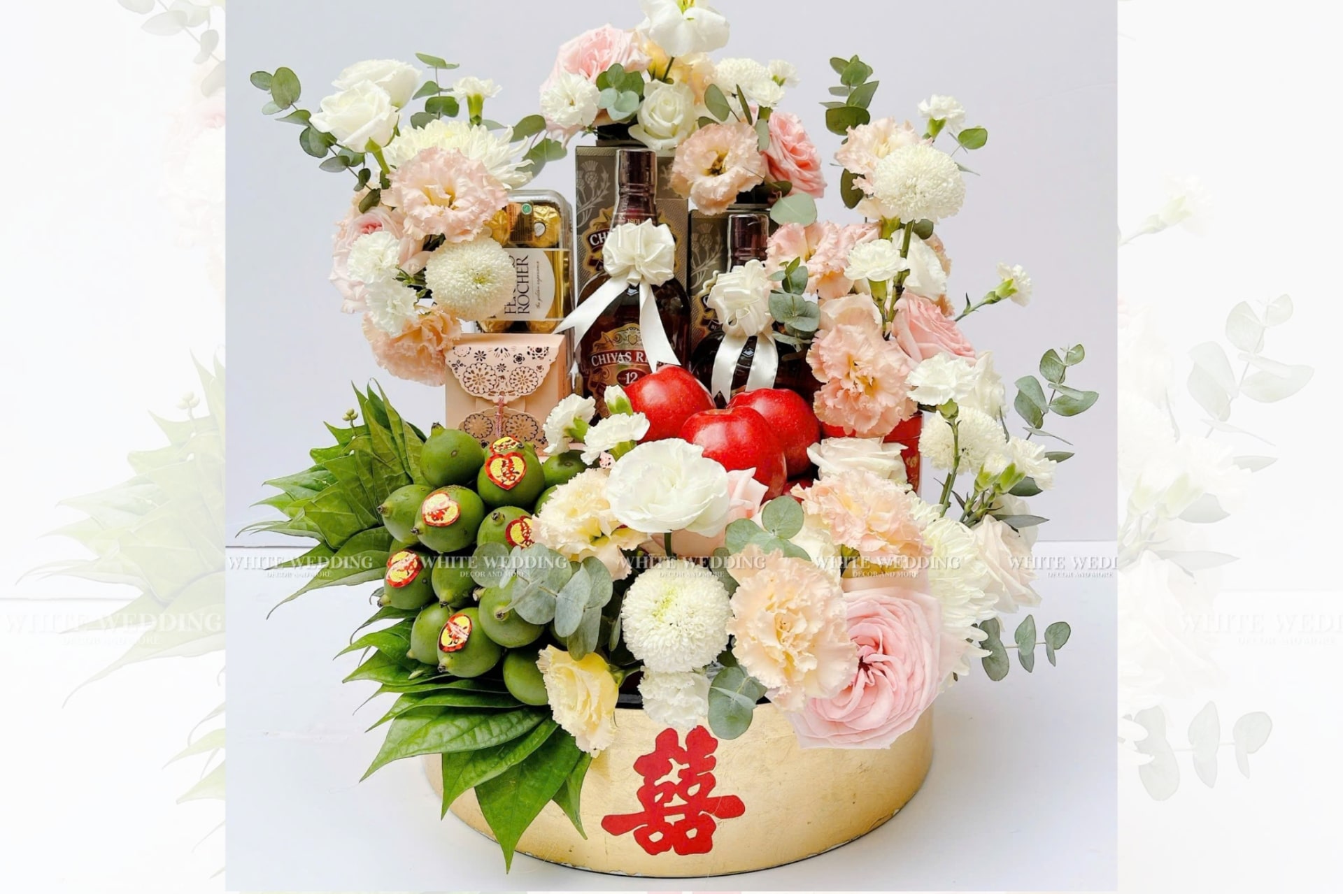 10 năm kinh nghiệm trong lĩnh vực cưới hỏi, chúng tôi thấu hiểu được tầm quan trọng của chất lượng An toàn – Vệ sinh Thực phẩm trong mỗi thành phần làm nên Mâm quả, nhất là với sự hoang mang về vệ sinh an toàn thực phẩm hiện nay trên thị trường cung ứng. Bởi vậy tại WHITE WEDDING, chúng tôi kiểm soát nghiêm chỉnh từ chất lượng đầu vào cũng như bảo quản sản phẩm khi tới tay khách hàng.