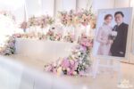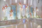 THE LEGEND OF THE BLUE SEA – Không gian tiệc trở nên thật ấn tượng với những tone màu nhã nhặn như vân đá xanh dương pastel, hồng pastel điểm xuyến trên những vật trang trí golden sang trọng và tinh tế. Cụm hoa với tone màu nhẹ nhàng mang theo hương thơm thoang thoảng trải khắp gian phòng.