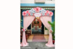 ✔ Cổng hoa giấy handmade ✔ Bảng vu quy (hoặc tân hôn) ✔ Bàn để mâm quả phủ voan hoa hồng cao cấp ✔ Bàn 2 họ: 02 bàn 70×120 phủ voan hoa hồng |