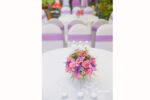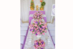 – 12 ghế nệm bọc voan hoa hồng ✔ 02 bộ ấm tách thắt nơ (2 ấm, 12 tách, 14 đĩa) ✔ Bảng tên CD-CR thiết kế • Tặng 12 chai nước suối thiết kế tên CD- CR |