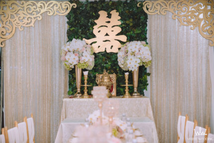 ENTERNAL LOVE (Hoa Tươi) – CONCEPT VÀNG GOLD SANG TRỌNG Trang trí lễ gia tiên - Sắc màu hiện đại và sang trọng được sử dụng tạo điểm nhấn trên phông nền trắng họa văn cách điệu kết hợp với chữ hỷ truyền thống và bạn hai họ. Tạo nên không gian lễ cưới gần gũi và sang trọng. Lưu ý: • White Wedding sẽ tới nhà quý khách khảo sát trước khi trang trí set up. Thông thường set up hoàn thiện trước ngày lễ 1 ngày • Miễn phí phí vận chuyển và lắp đặt trang trí nhà trong vòng bán kính 5km (tính từ công ty)