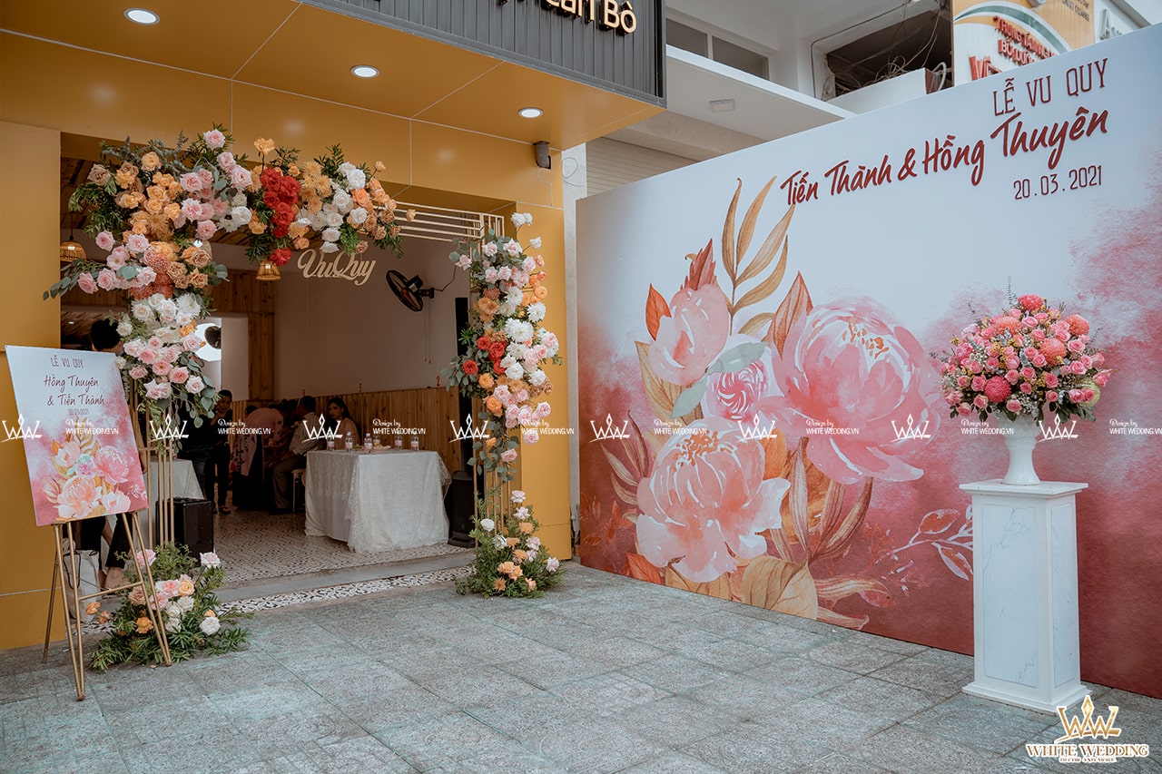 FLORINE – GIA TIÊN SANG TRỌNG VỚI PHONG CÁCH TỐI GIẢN Trang trí lễ gia tiên - Sự kết hợp tinh tế giữa sắc màu pastel hoa hồng - cẩm tủ cầu điểm nhấn cho họa tiết vàng gold sang trọng chữ Hỷ và backdrop hoa văn. Lưu ý: • White Wedding sẽ tới nhà quý khách khảo sát trước khi trang trí set up. Thông thường set up hoàn thiện trước ngày lễ 1 ngày • Miễn phí phí vận chuyển và lắp đặt trang trí nhà trong vòng bán kính 5km (tính từ công ty)