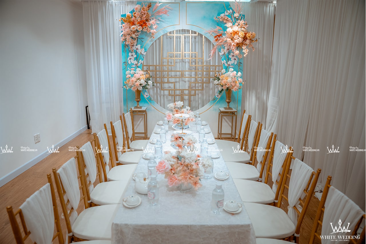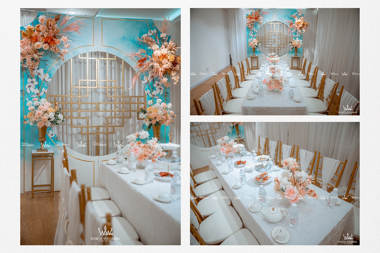 BLUE DREAM - SẮC XANH TƯƠI MÁT TRÀN ĐẦY SỨC SỐNG Trang trí lễ gia tiên - Được lấy cảm hứng từ màu của trời và biển bao la, rộng lớn mang lại cảm giác sâu thẳm, vững vàng và xanh dương còn là gam màu mang đến sự yên bình. Trong tình yêu, màu xanh dương biểu trưng cho một tình cảm gắn kết bền lâu, trong sáng và tinh khiết, ẩn chứa lời chúc phúc trăm năm yên bình mãi bên nhau. Lưu ý: • White Wedding sẽ tới nhà quý khách khảo sát trước khi trang trí set up. Thông thường set up hoàn thiện trước ngày lễ 1 ngày • Miễn phí phí vận chuyển và lắp đặt trang trí nhà trong vòng bán kính 5km (tính từ công ty)