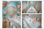 Trang trí lễ gia tiên – Sử dụng backdrop hình dáng như một bức bình phong với họa tiết trang trí kỷ hà, bộ tứ quý cũng xuất hiện nhiều bởi nó mang nhiều ý nghĩa cầu chúc may mắn, thể hiện ước vọng của gia chủ.