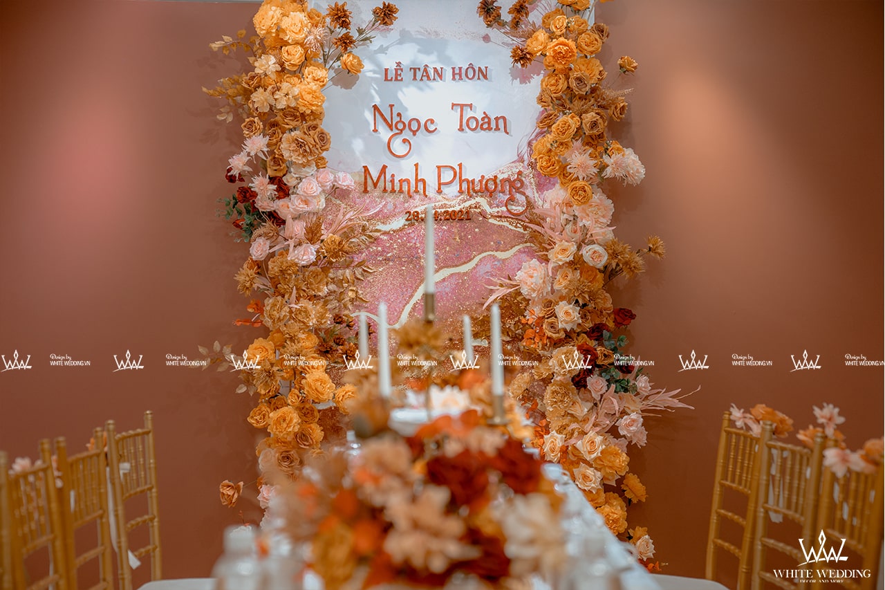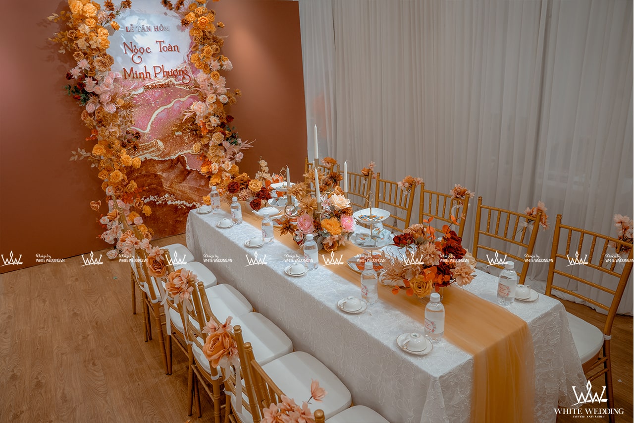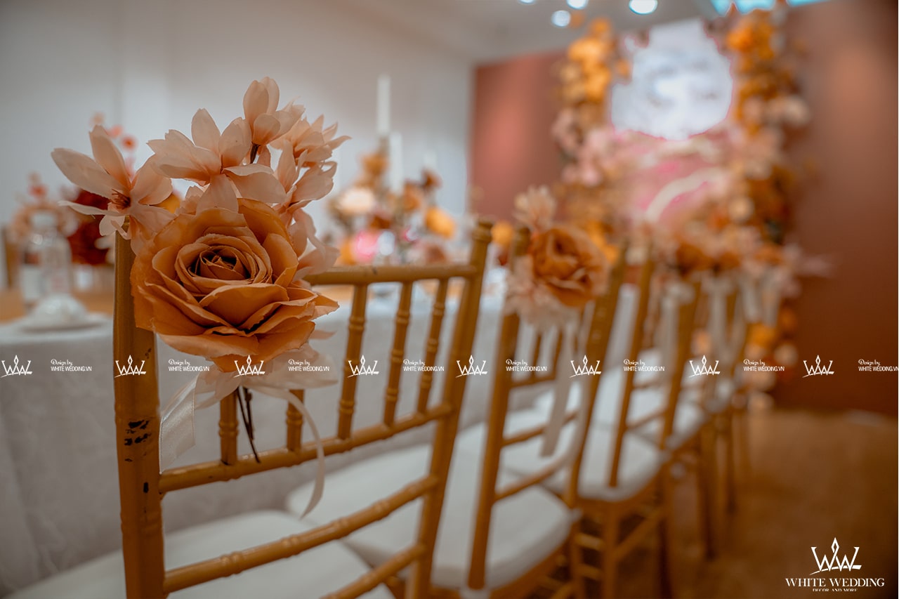 TIFFANY MYSTERY - LẤY CẢM HỨNG TỪ SỰ TỐI GIẢN NHƯNG TINH TẾ Trang trí lễ gia tiên - Được lấy cảm hứng từ sắc đỏ truyền thống, chấm phá thêm sắc cam rực rỡ, sử dụng thêm sắc hồng nhẹ nhàng tạo nên một không gian lễ gia tiên tươi mới, ngọt ngào. Backdrop được sử dụng tone vàng đồng sang trọng với những đường cắt tinh tế làm tôn lên trọn vẹn sắc màu của chữ hỷ và các line hoa. Lưu ý: • White Wedding sẽ tới nhà quý khách khảo sát trước khi trang trí set up. Thông thường set up hoàn thiện trước ngày lễ 1 ngày • Miễn phí phí vận chuyển và lắp đặt trang trí nhà trong vòng bán kính 5km (tính từ công ty)